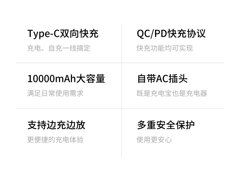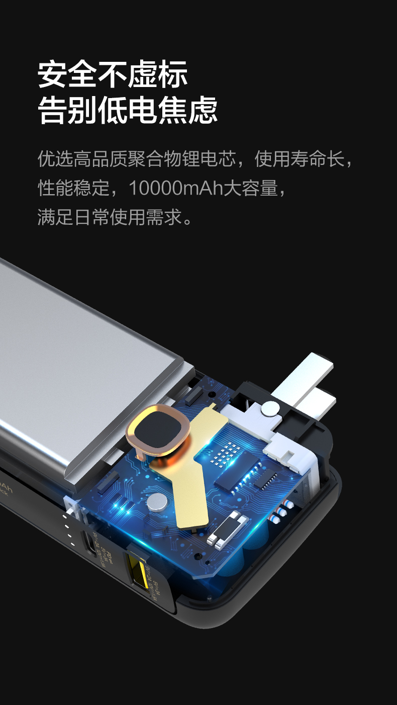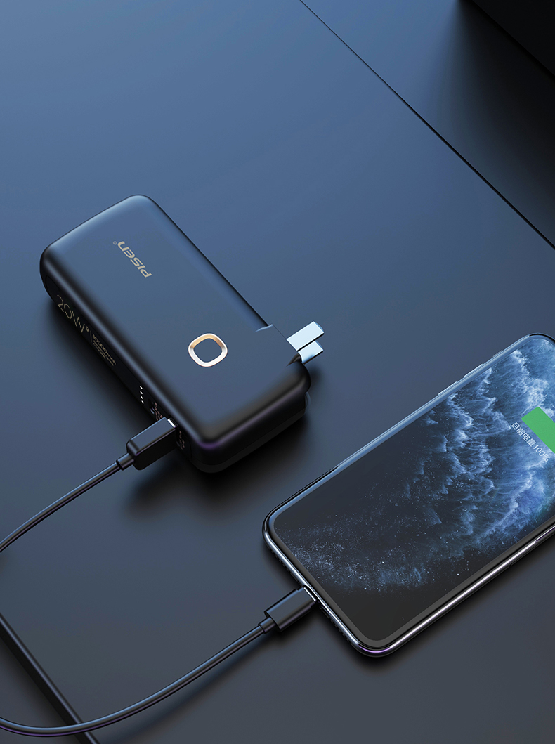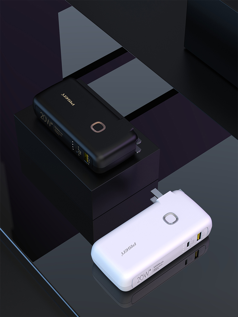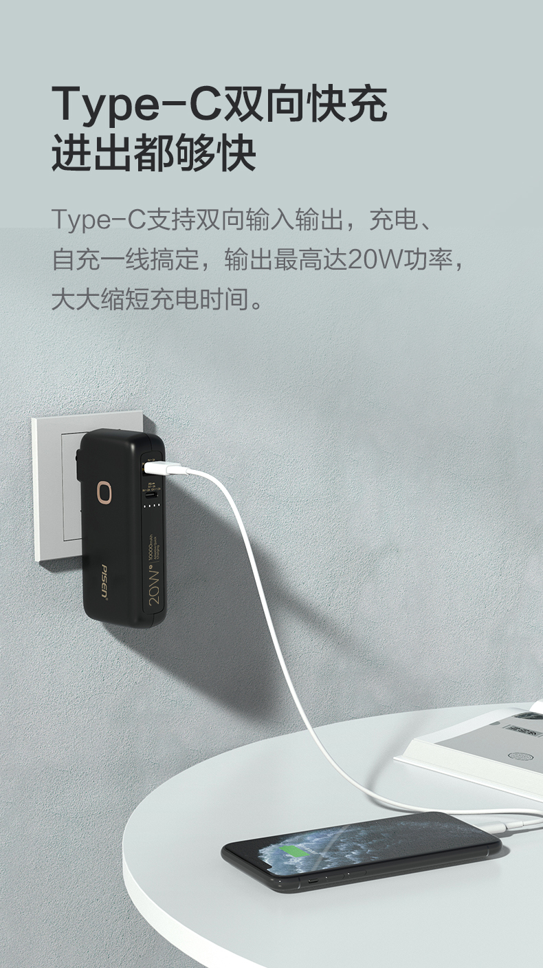 品胜 二合一快充电霸PD20W 移动电源10000毫安 支持苹果12/13闪充 自带折叠插头 双口输出充电宝