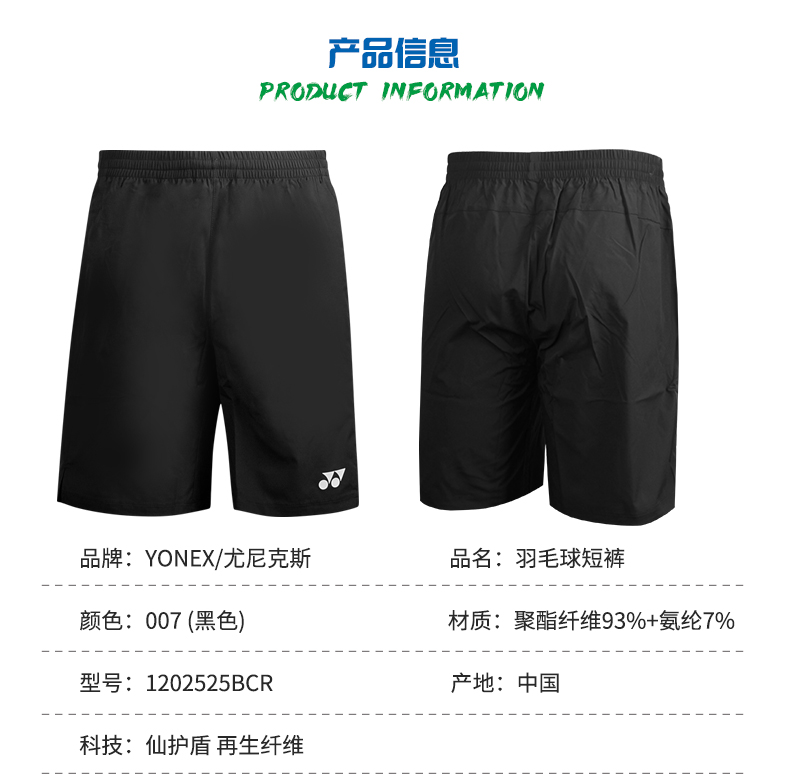 YONEX尤尼克斯羽毛球服男款短裤1202525BCR 速干透气吸汗