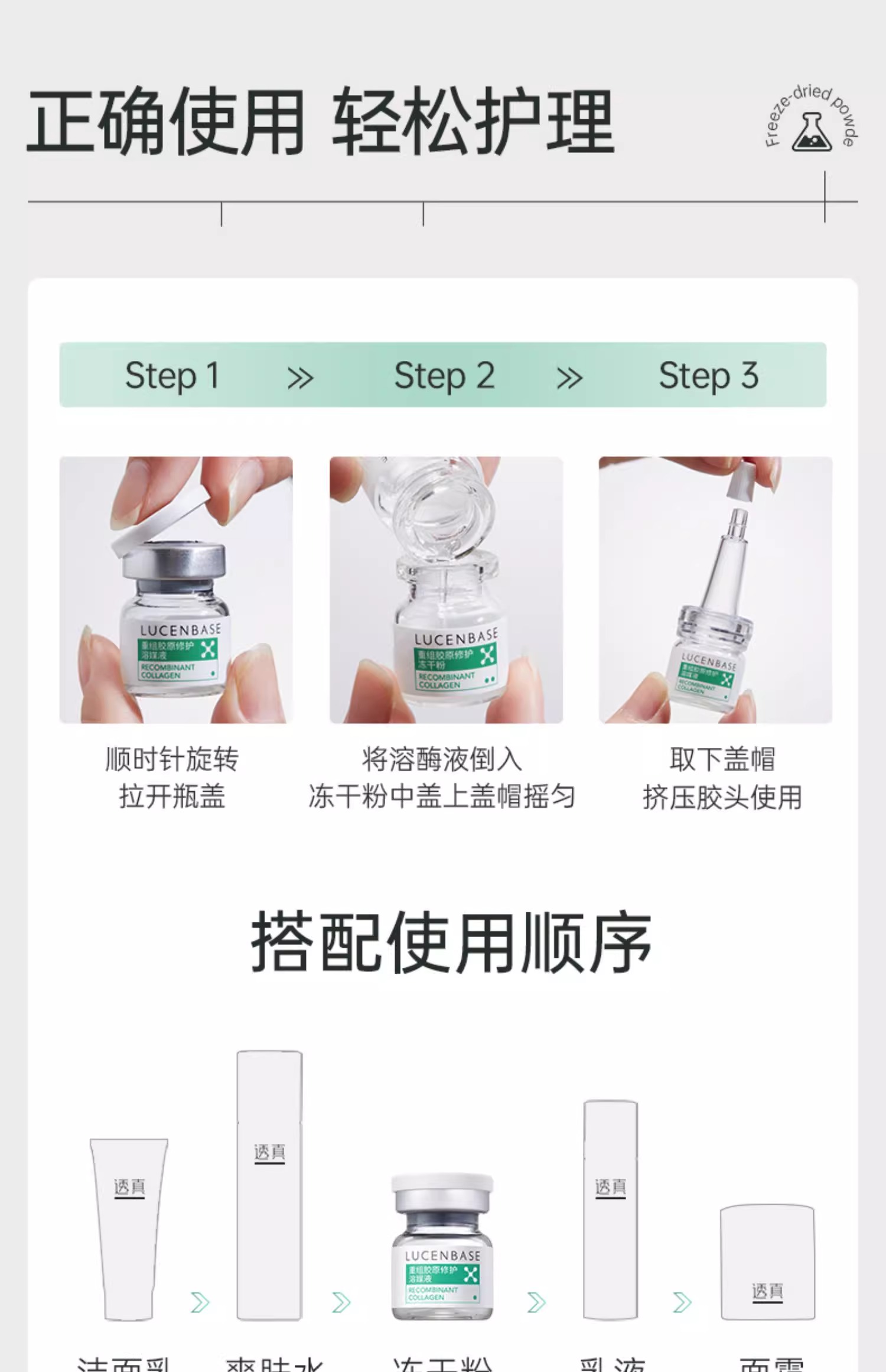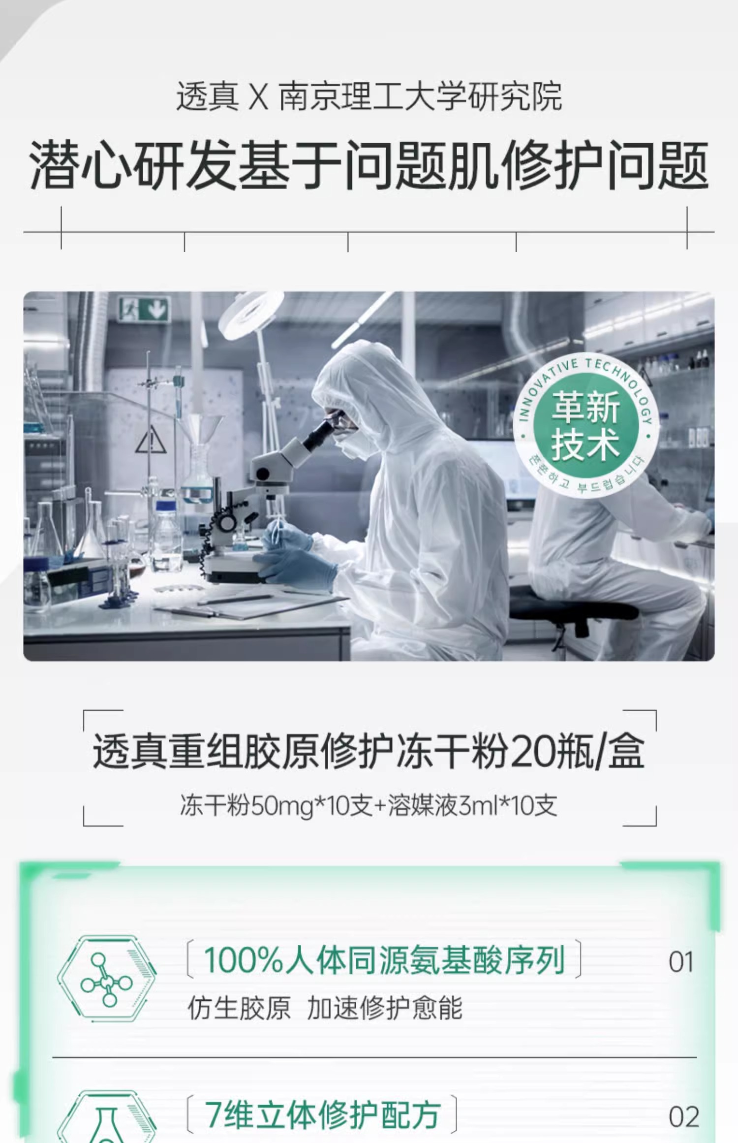 【捡漏福利 178任选2件】透真 重组胶原修护冻干粉50mg*10+修护溶媒液3ml*10