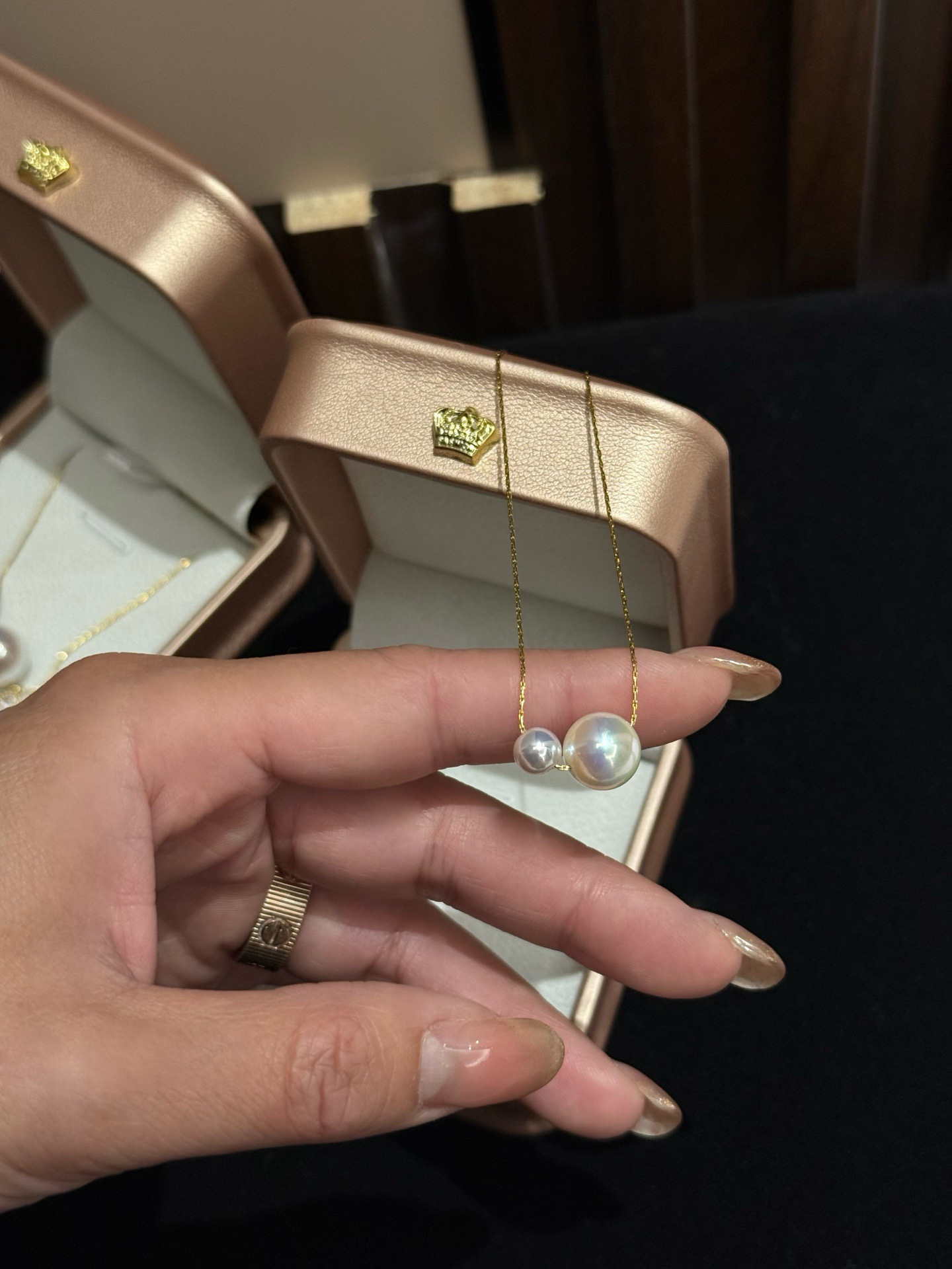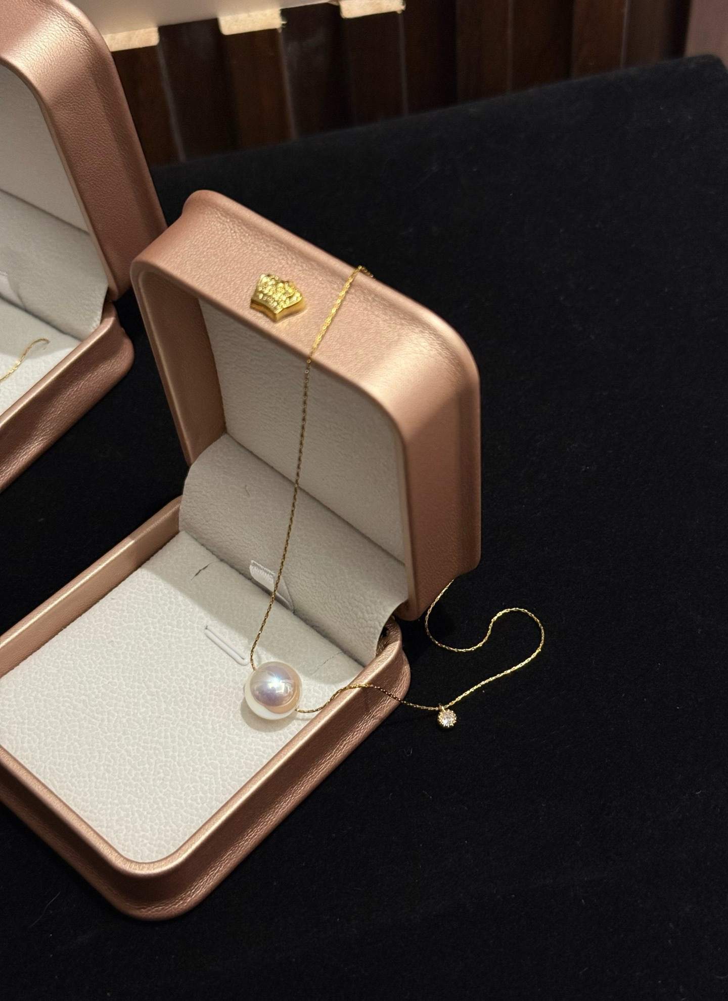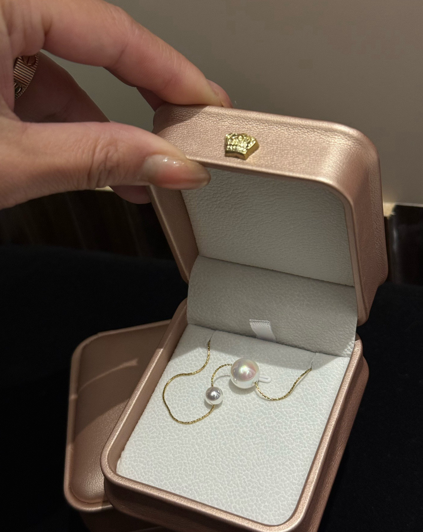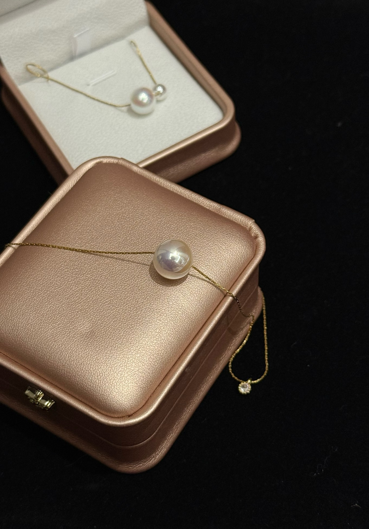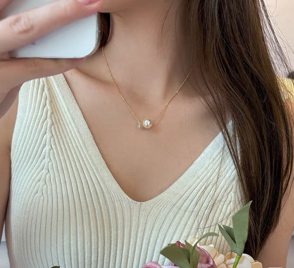 锆石路路通材质12mm天女马贝珠➕真钻➕钛钢18K镀金延长链(固色不易掉色)