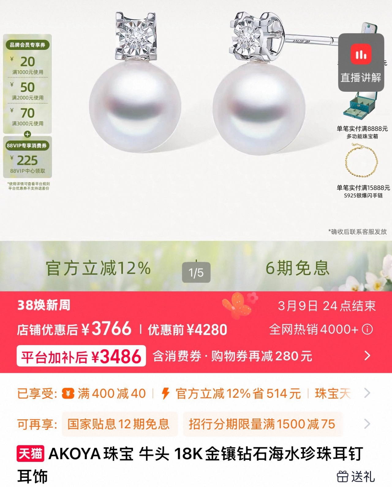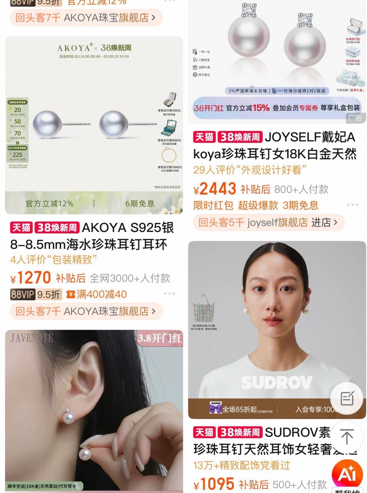 耳钉纯银底托,敏感耳可戴,光泽感吊打普通施家珠,肉眼可见高级,不用保养、不怕水、不掉皮。