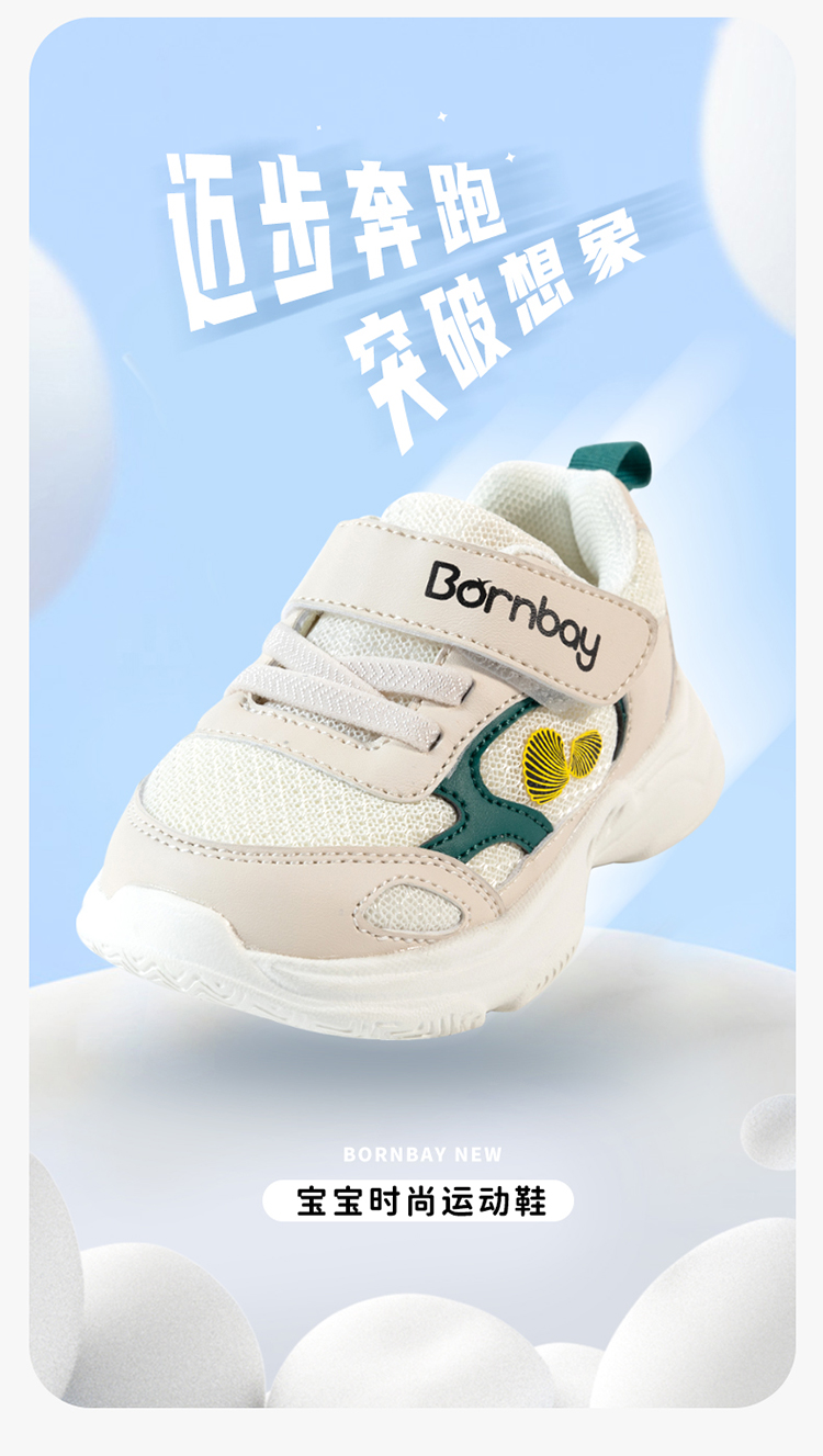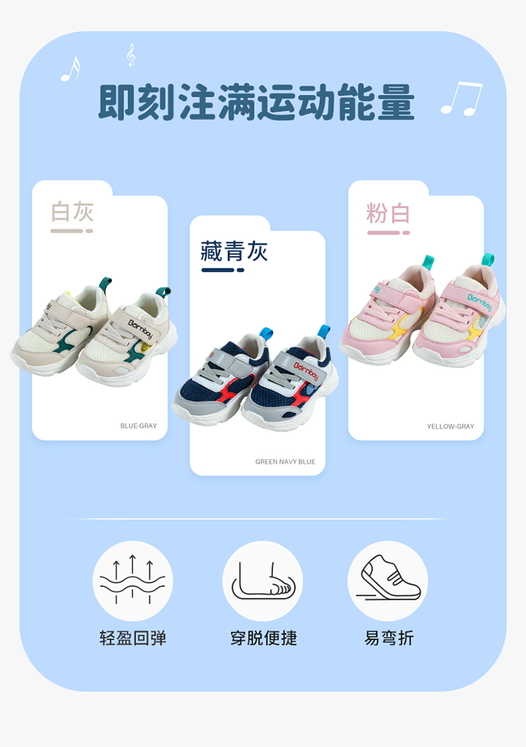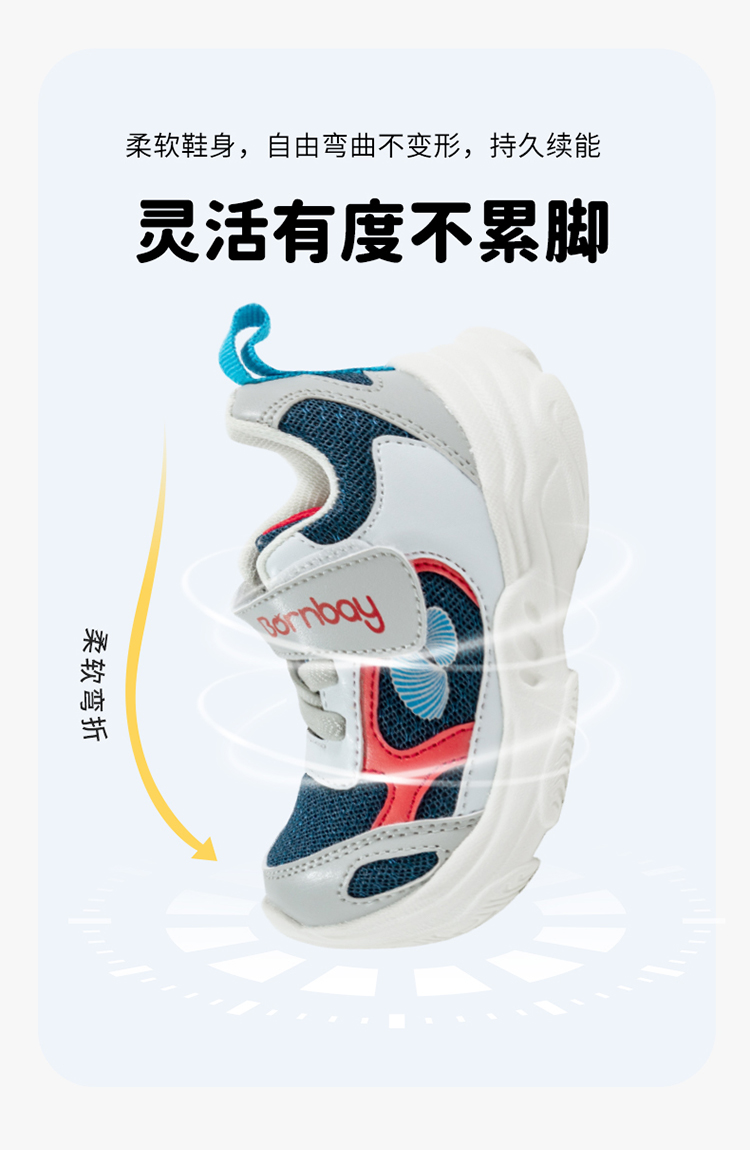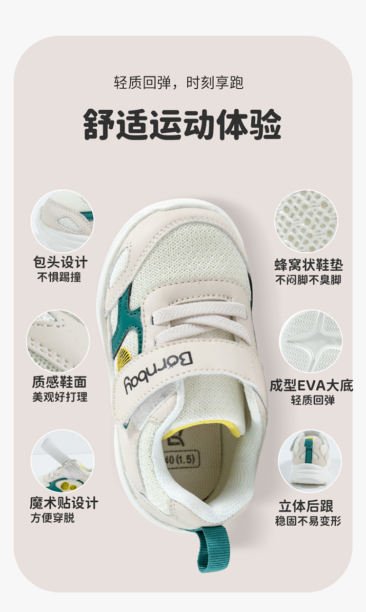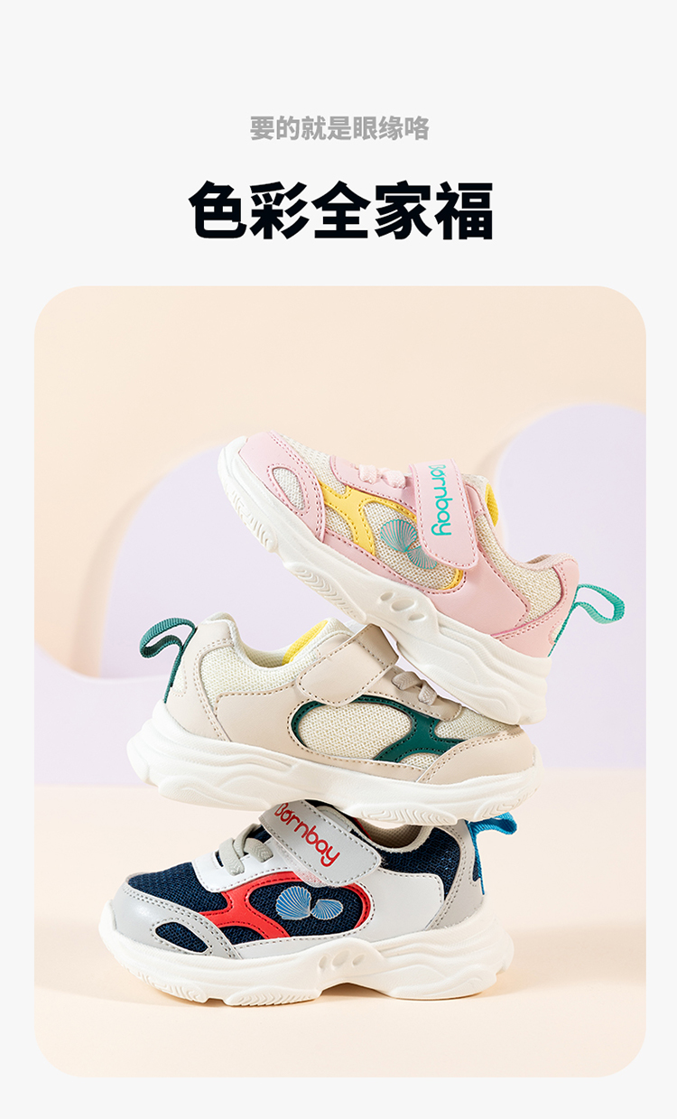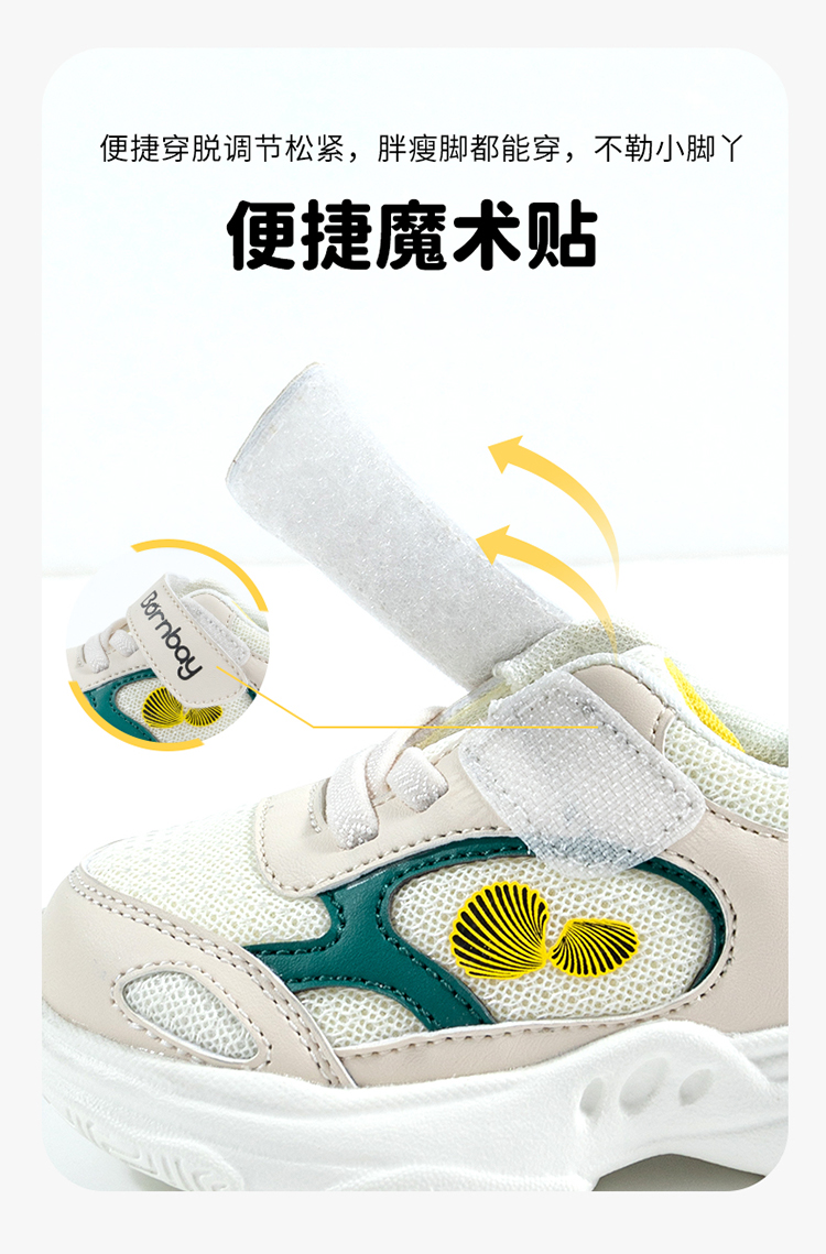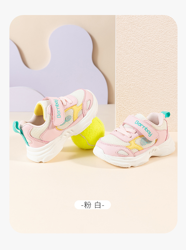 贝贝怡童鞋春秋男女童透气休闲鞋时尚撞色魔术贴宝宝鞋儿童运动鞋