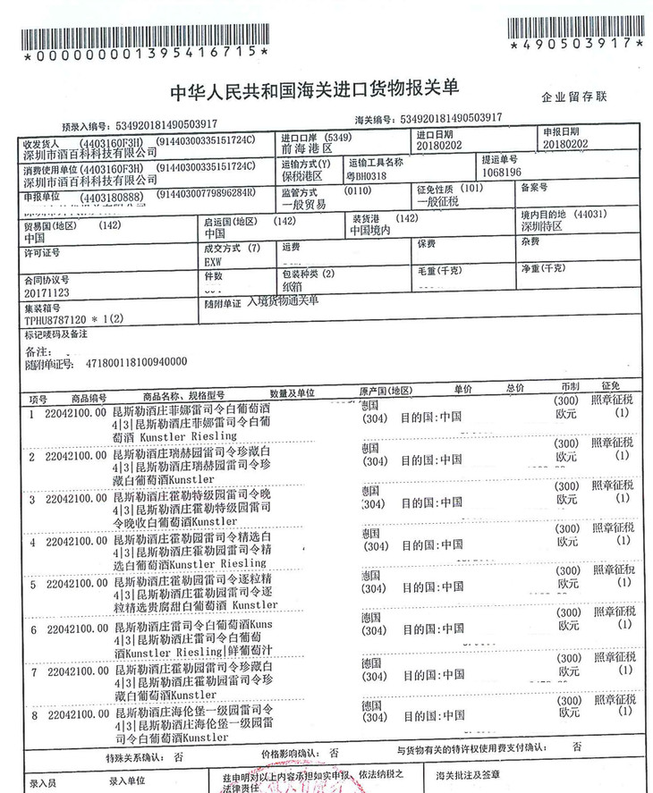 从最开始制定选酒目标,到签订直供合同,从海外发货到清关,从葡萄酒入仓到送到每位消费者手中,我们团队对每一个步骤都严谨细致。我们卖出的每一瓶葡萄酒报关单等齐全,完全可放心购买。