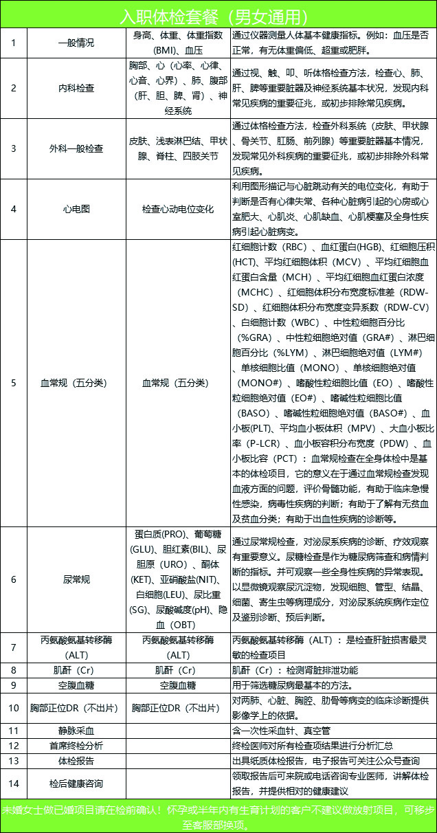 入职体检套餐(男女通用)