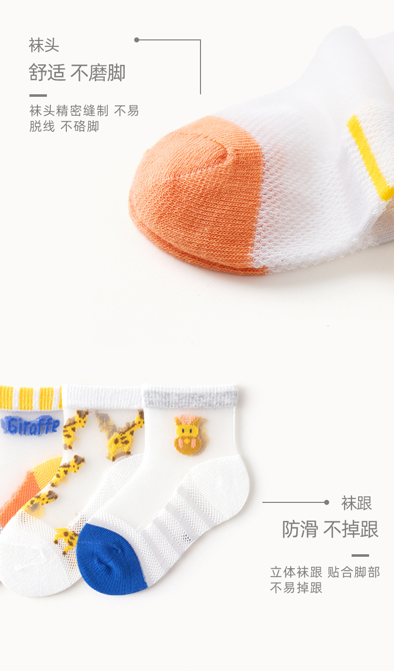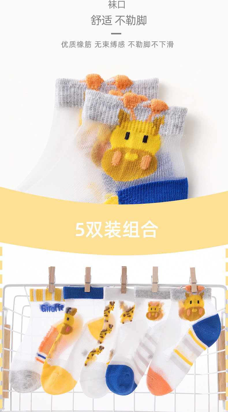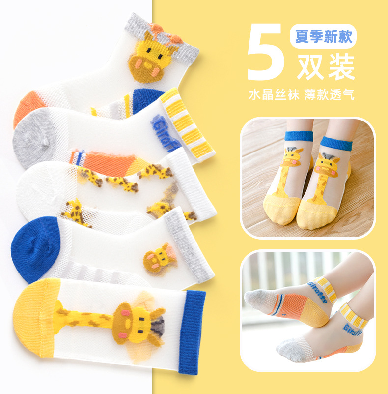 【5双装 轻薄透气不勾丝】儿童袜子春夏卡丝宝宝袜子玻璃丝男女童短袜薄袜子童袜1-12岁袜子