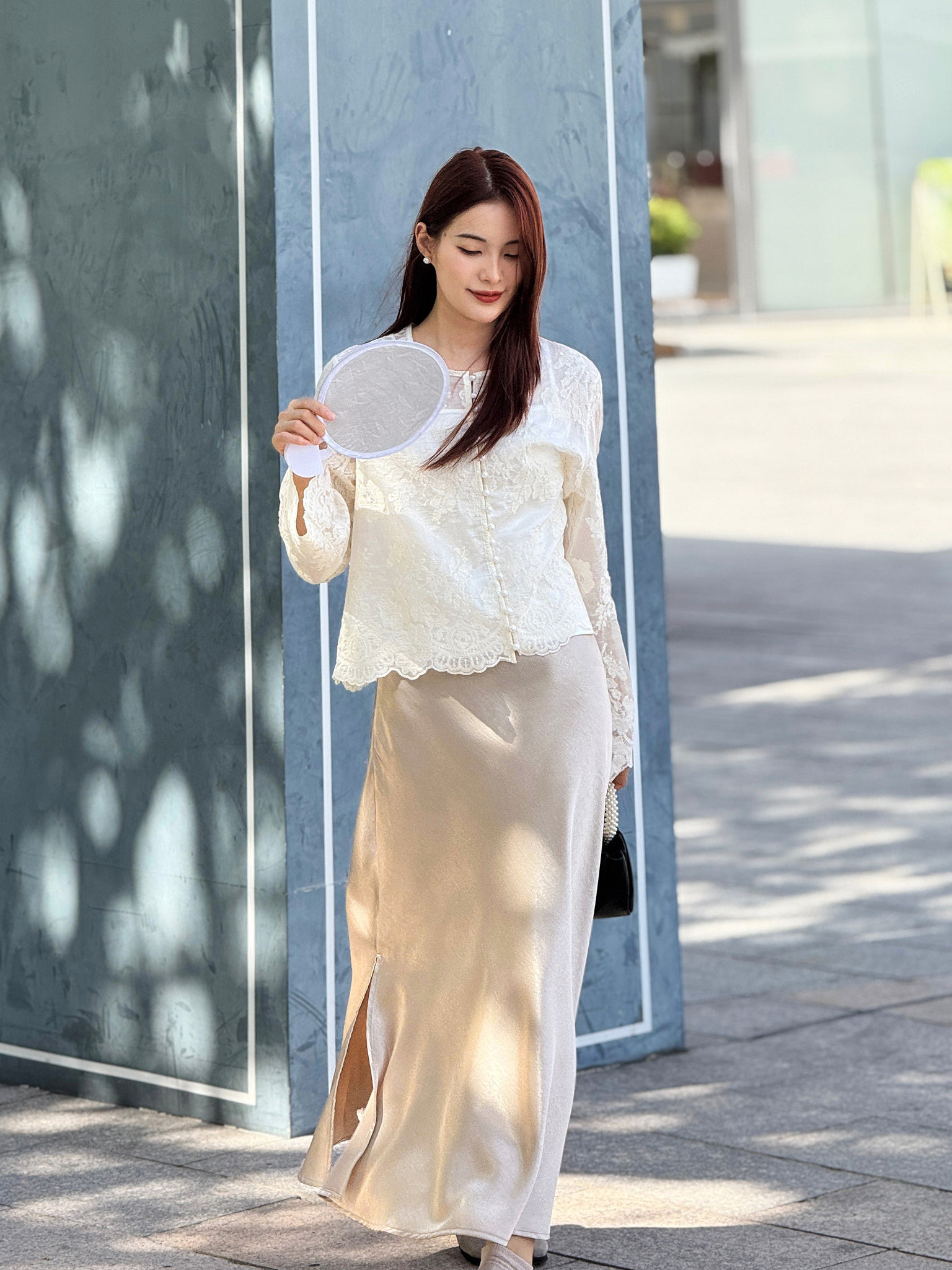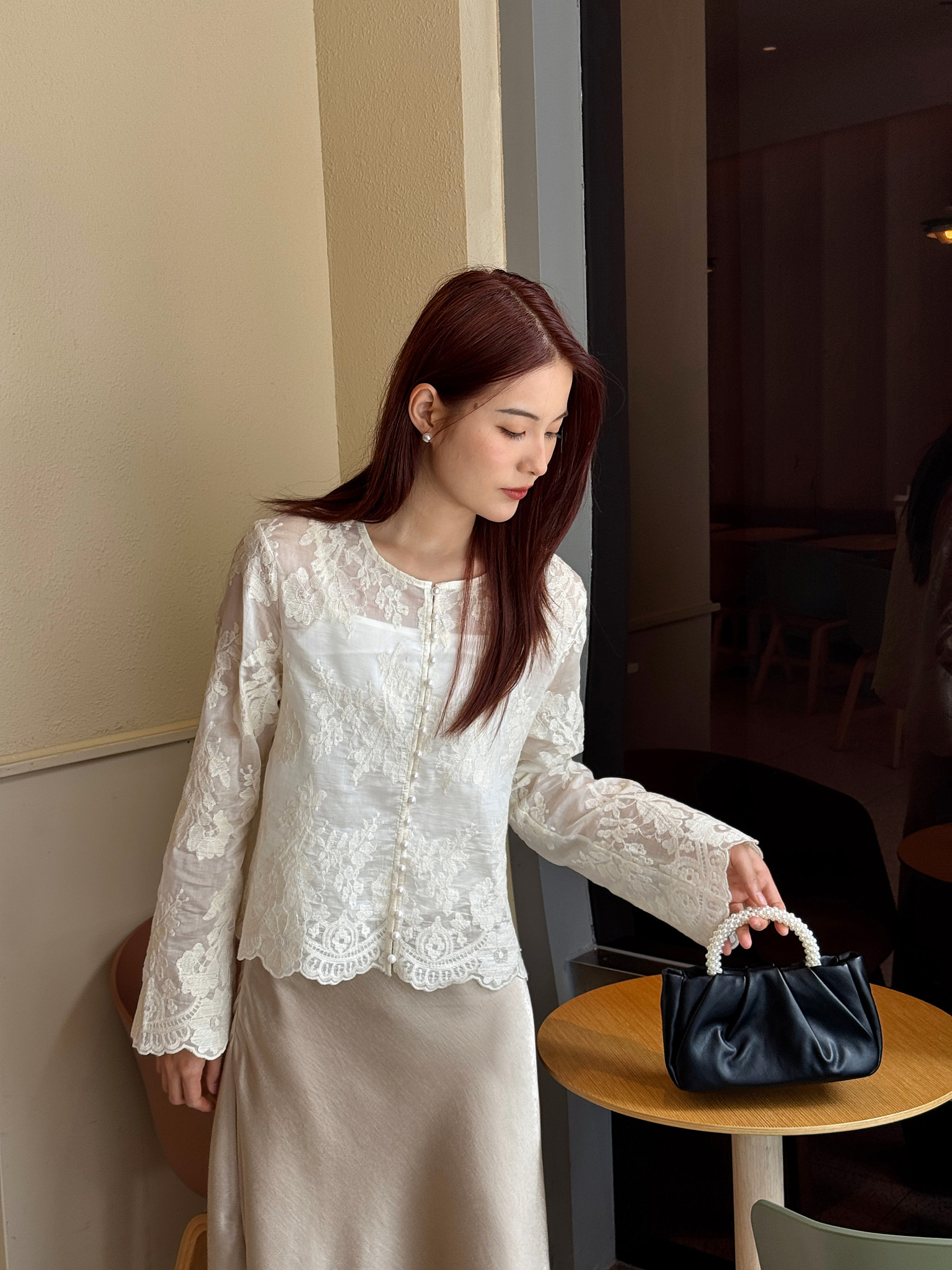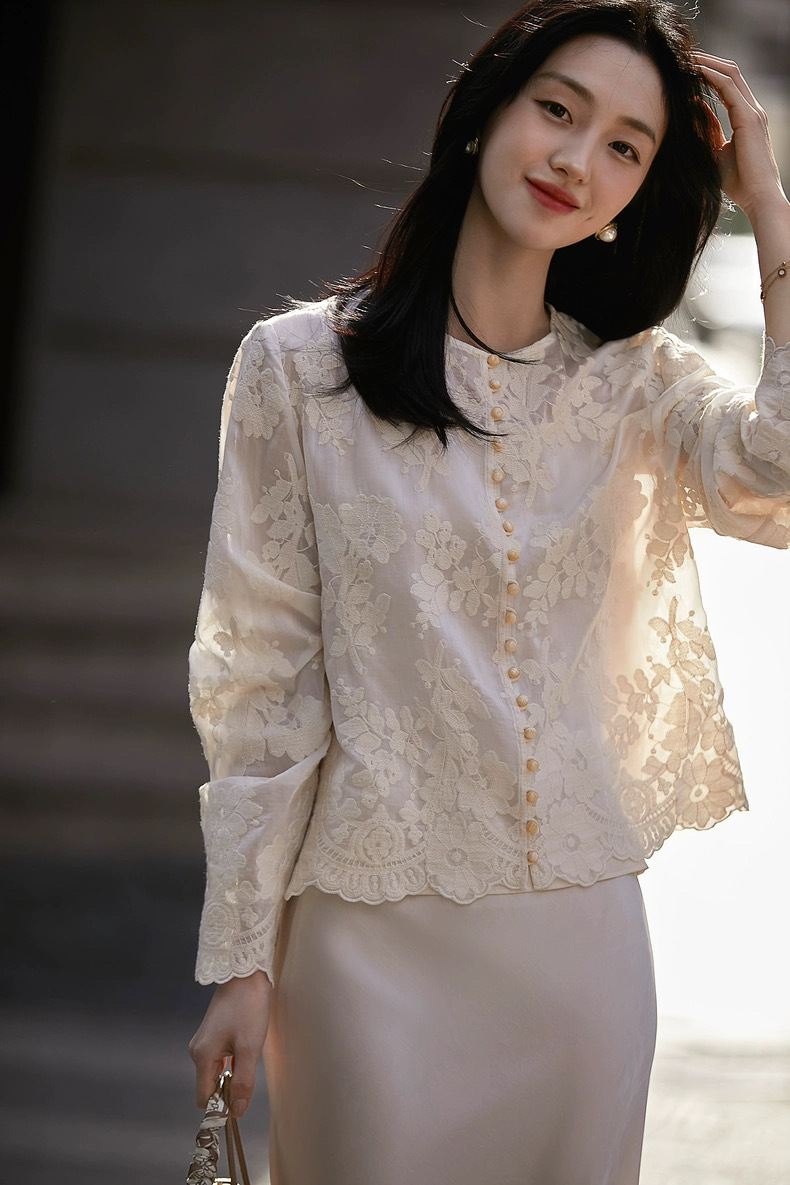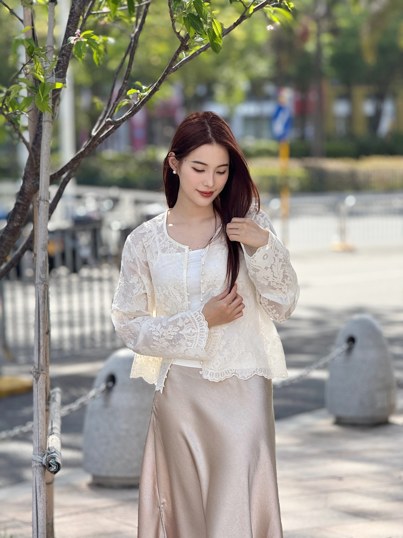 【超模君严选 ORIGNAL&CO 繁华刺绣天丝上衣三件套】下摆波浪设计 优选天丝面料 重工花朵刺绣