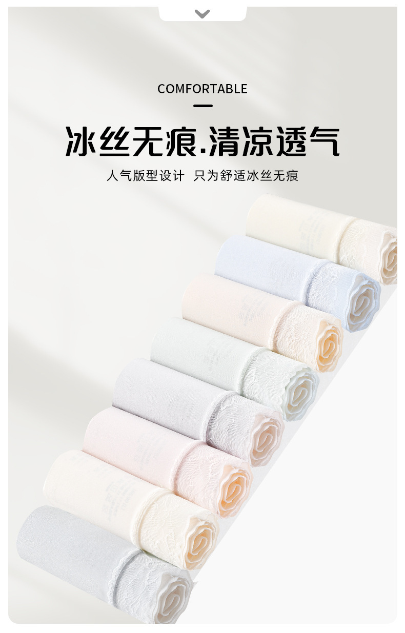 10A抑jun冰丝无痕女士内裤聚乳酸裆部山茶花超薄高弹透气三角裤女 商品图0