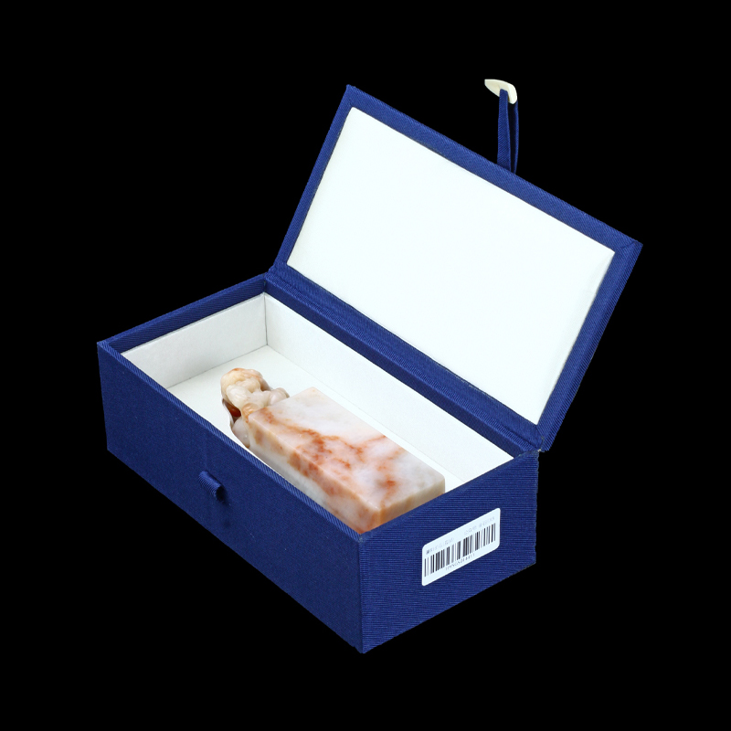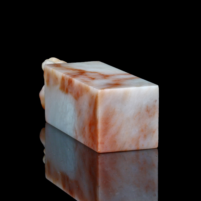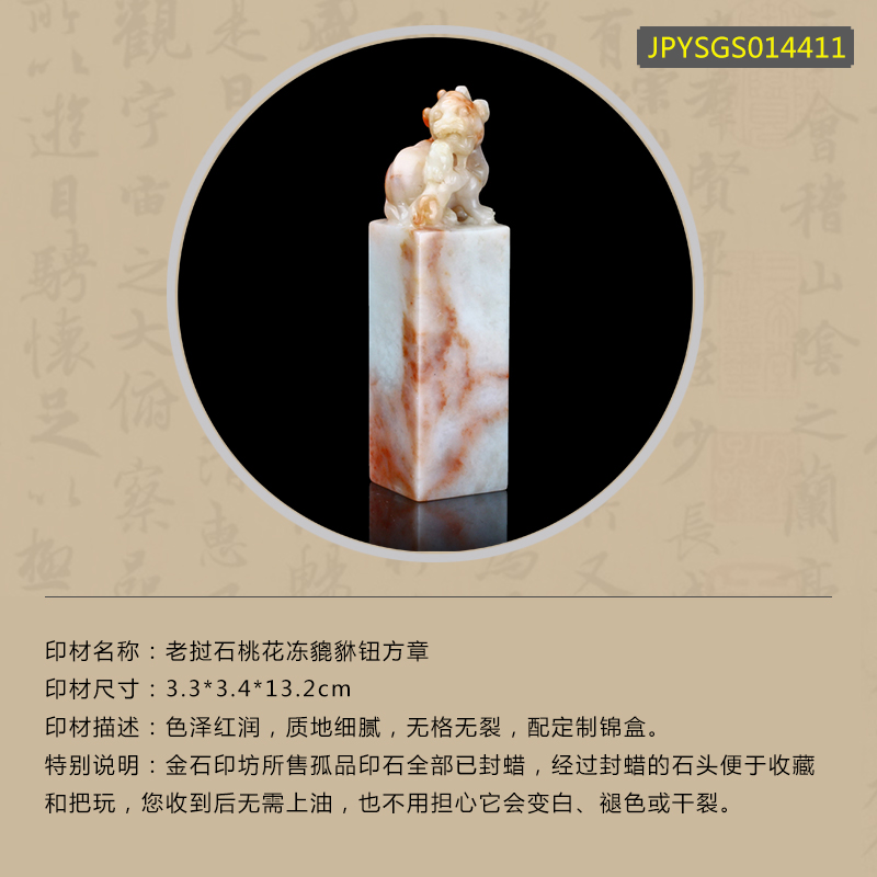 孤品014411:老挝石桃花冻貔貅钮方章-3.3*3.4*13.2cm