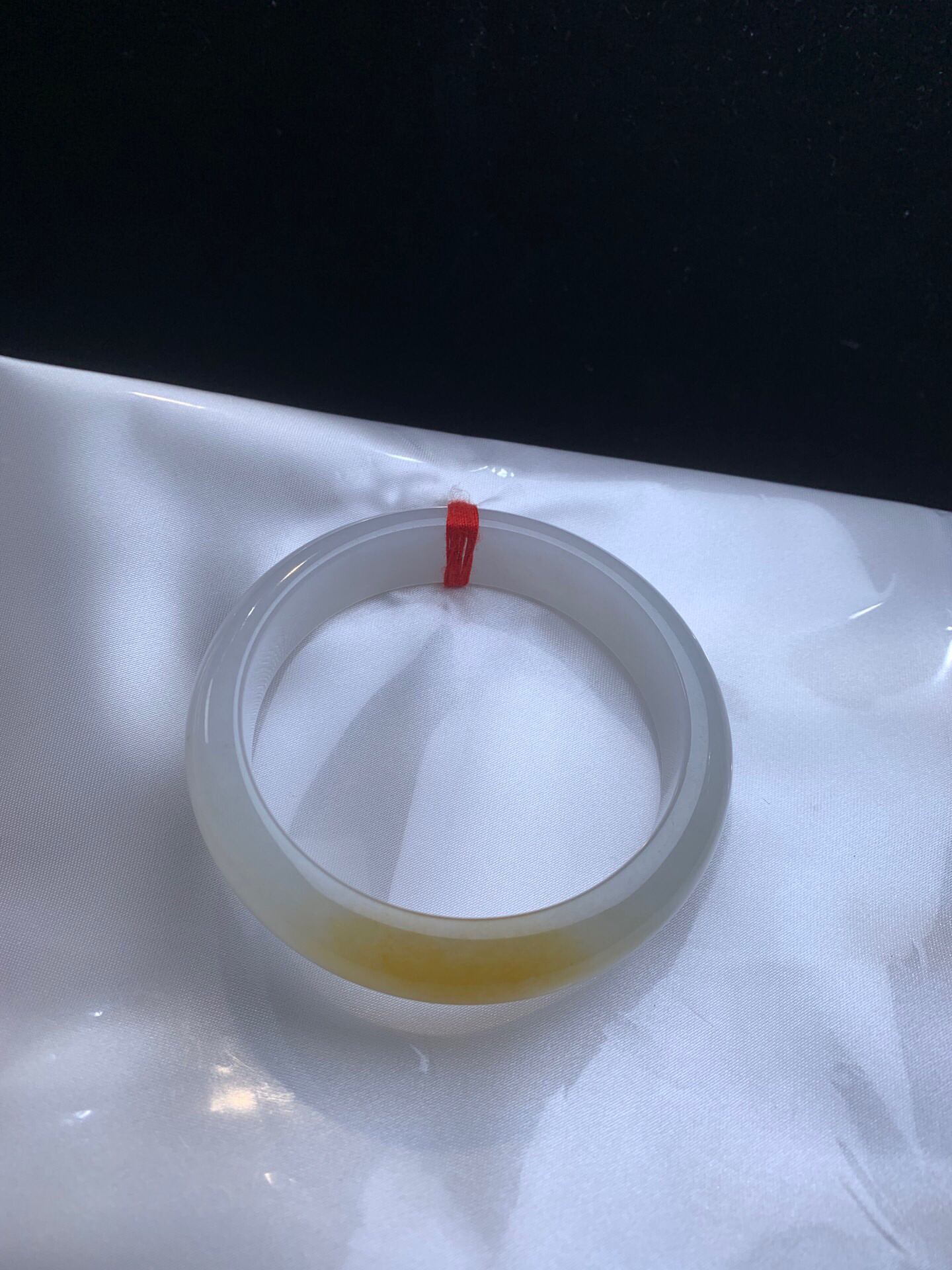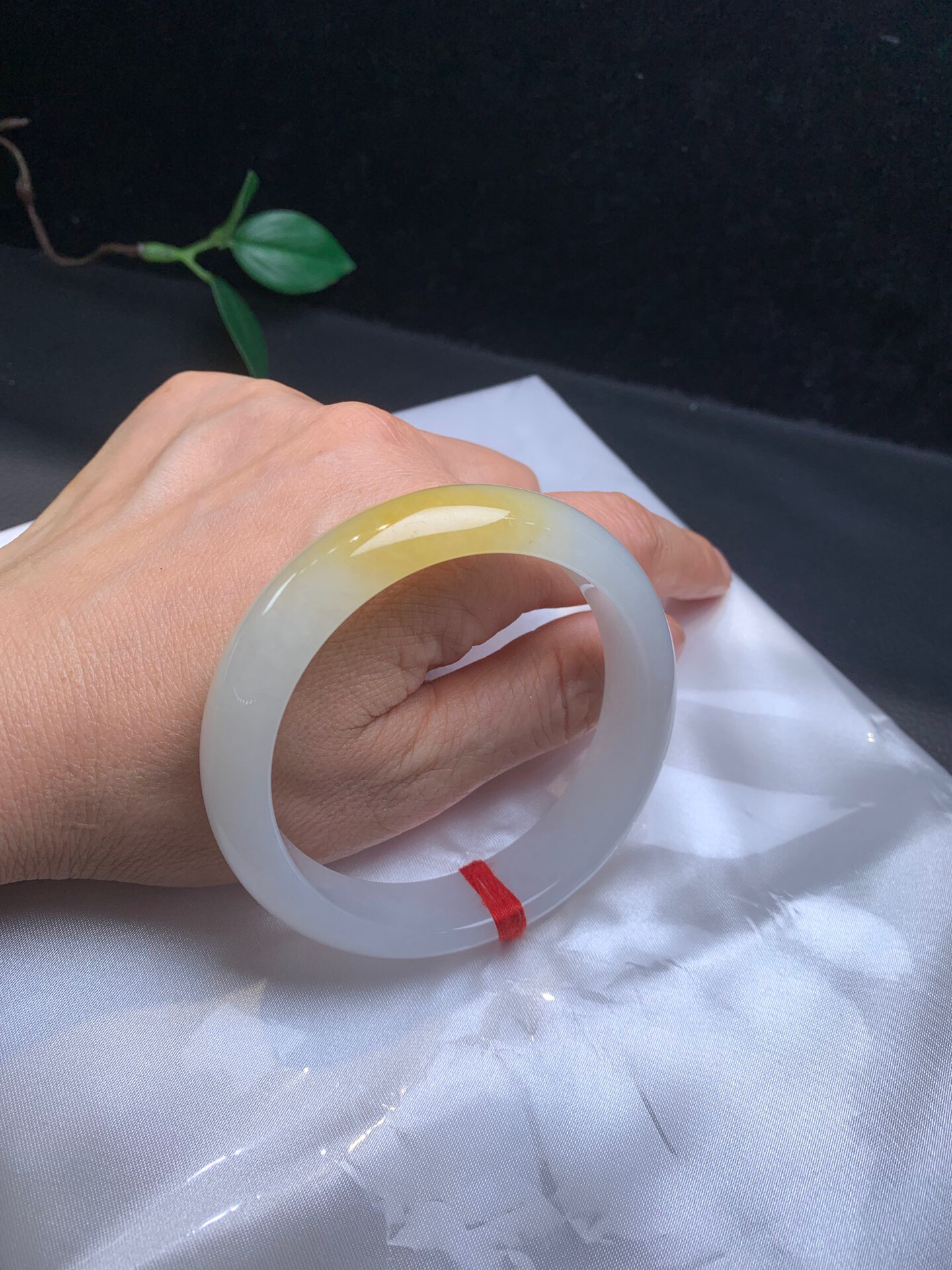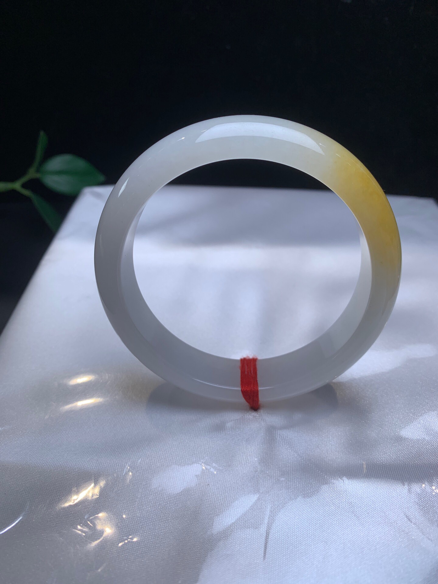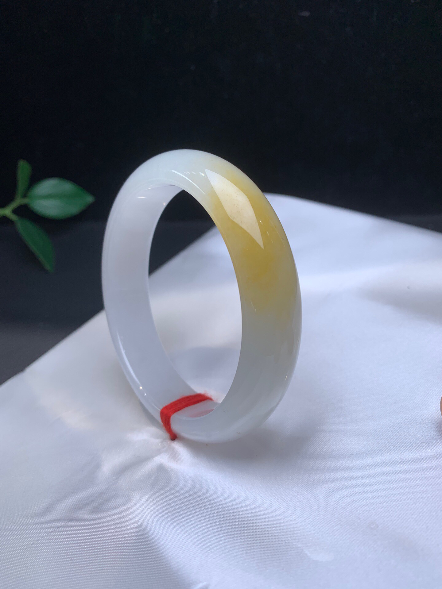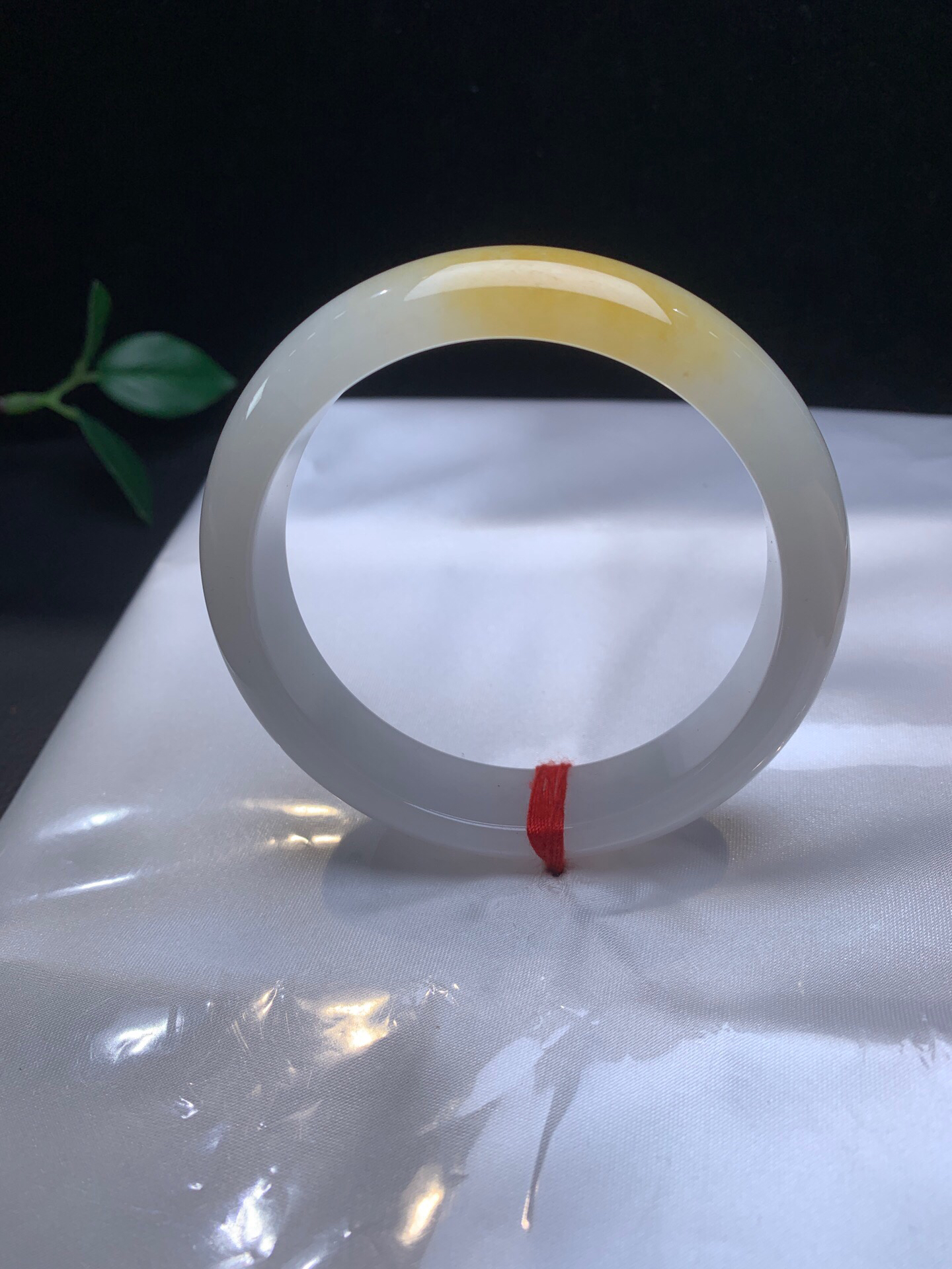 620142,58.5冰黄正圈手镯,冰透清新有特色、版型好、一截清新黄翡,整体干净冰透