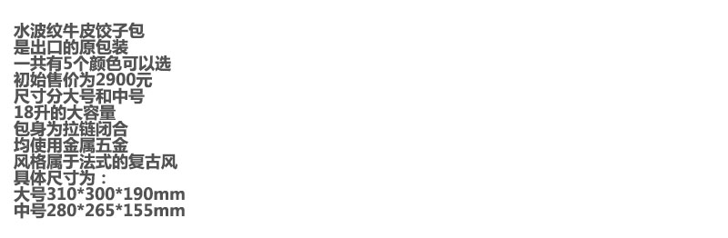 水波纹牛皮饺子包,18升大容量。金属五金可手提通勤女包C120760