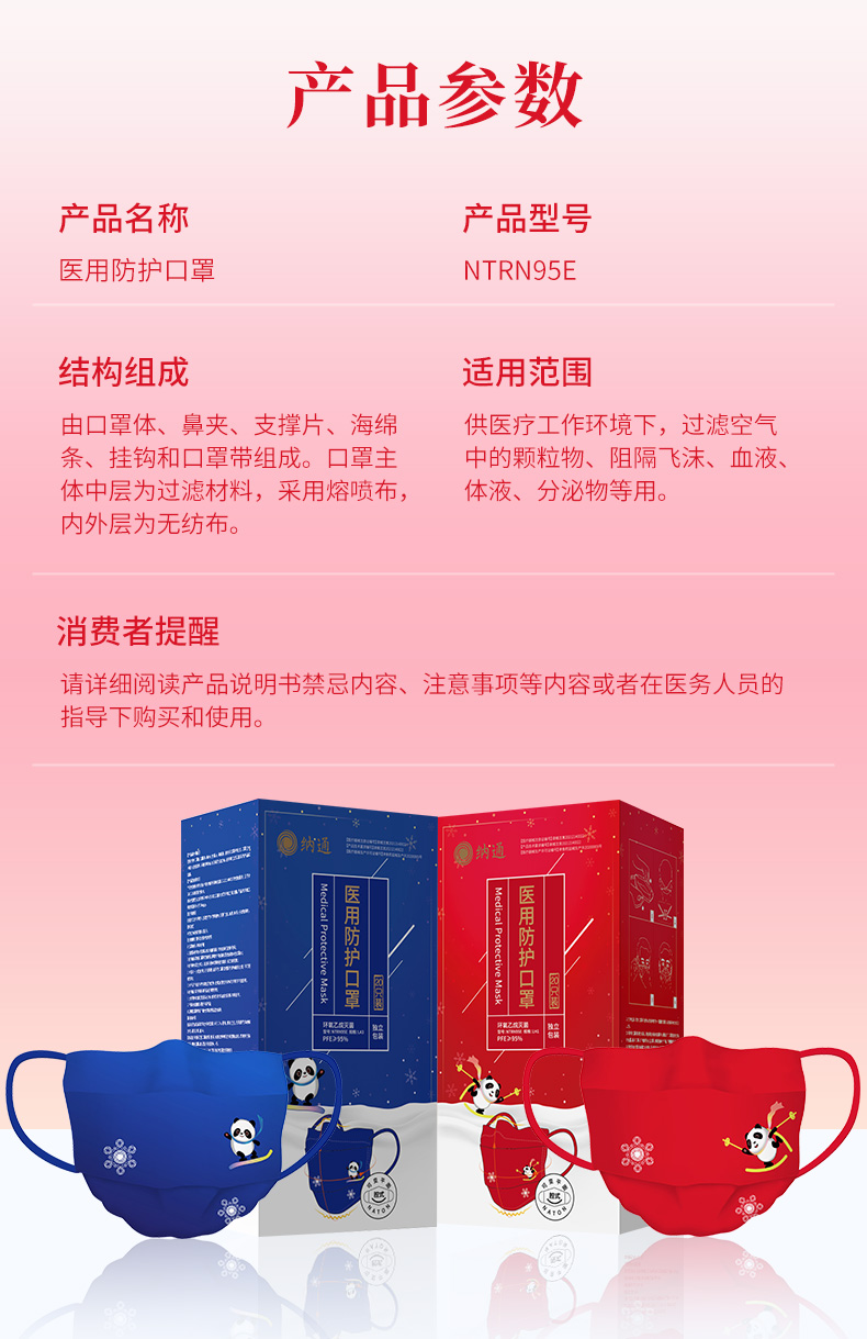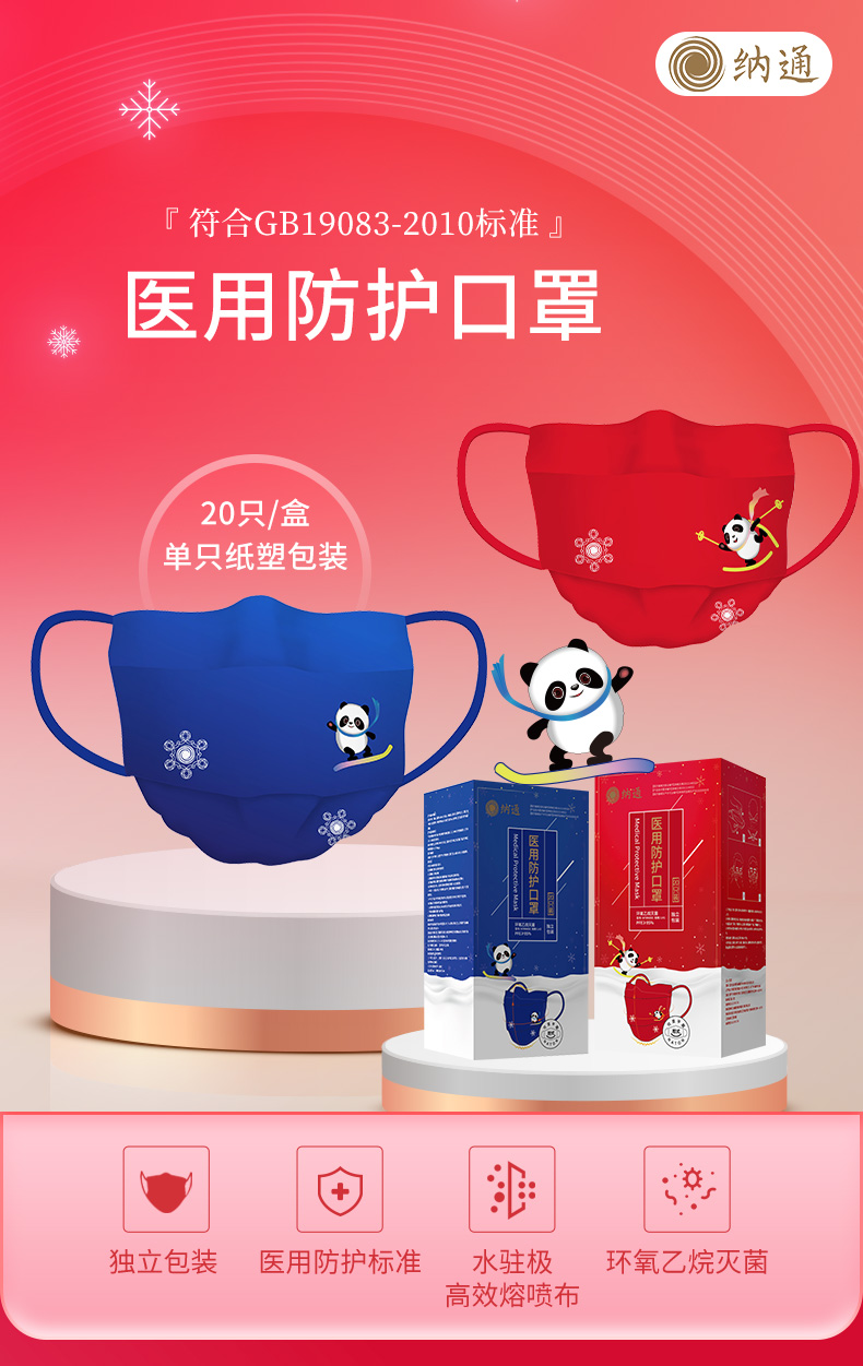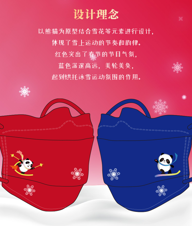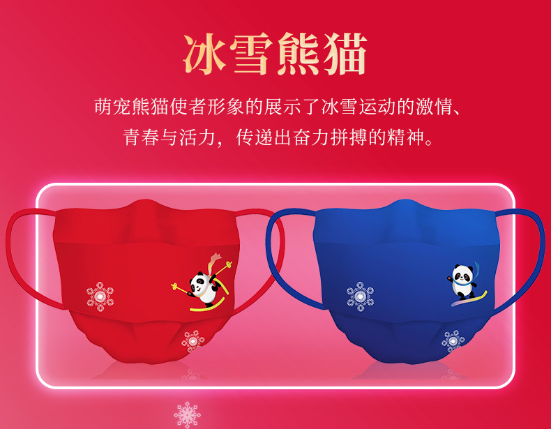 【冰雪熊猫】纳通个性印花口罩 冬季冰雪运动会 三层防护 独立片装