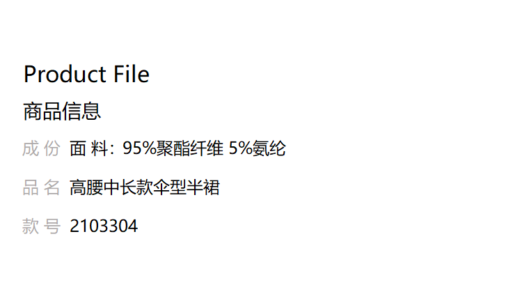 定制—优雅百搭风高腰中长款舒适百搭白色伞型气质半身裙2103304