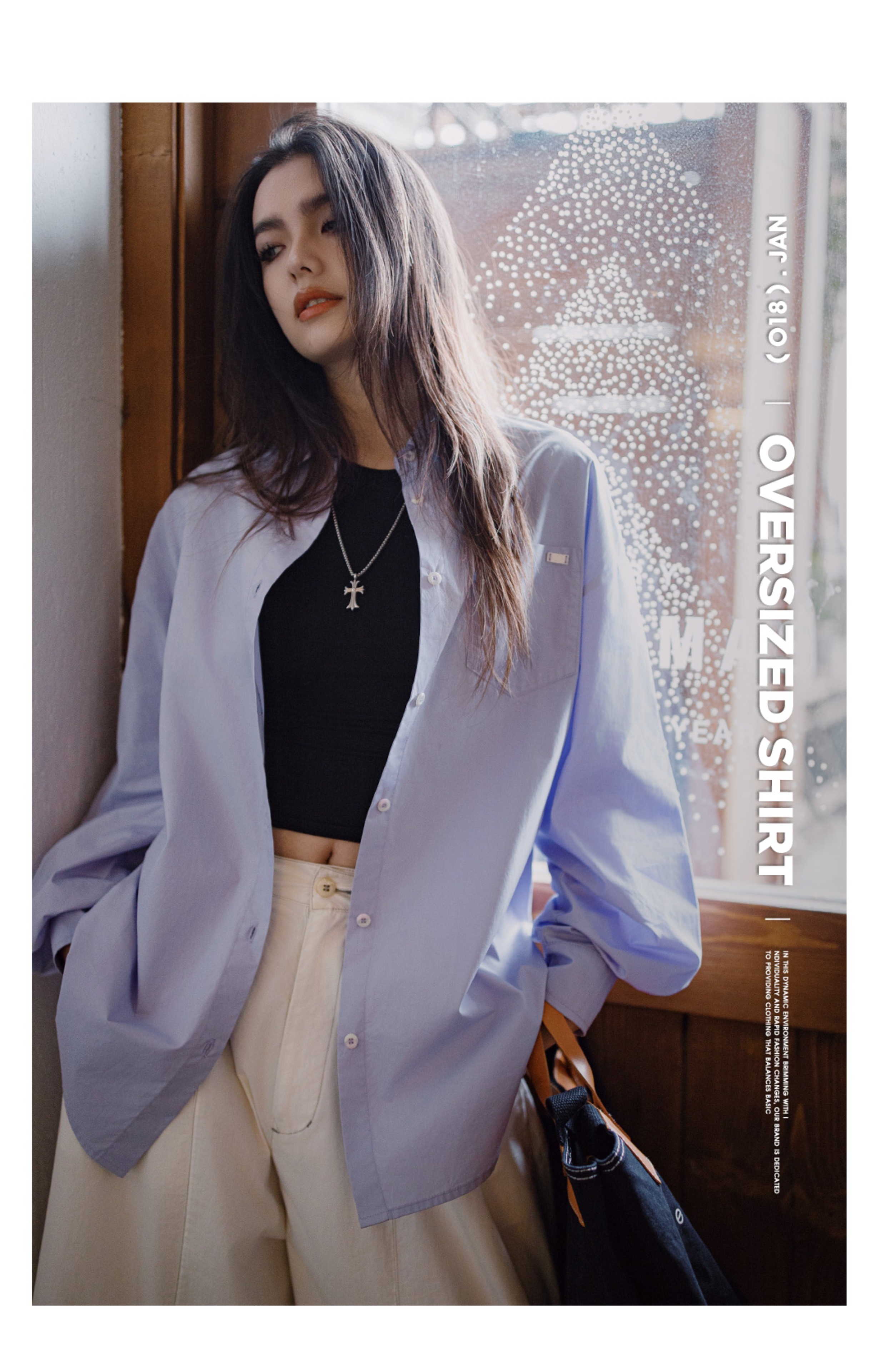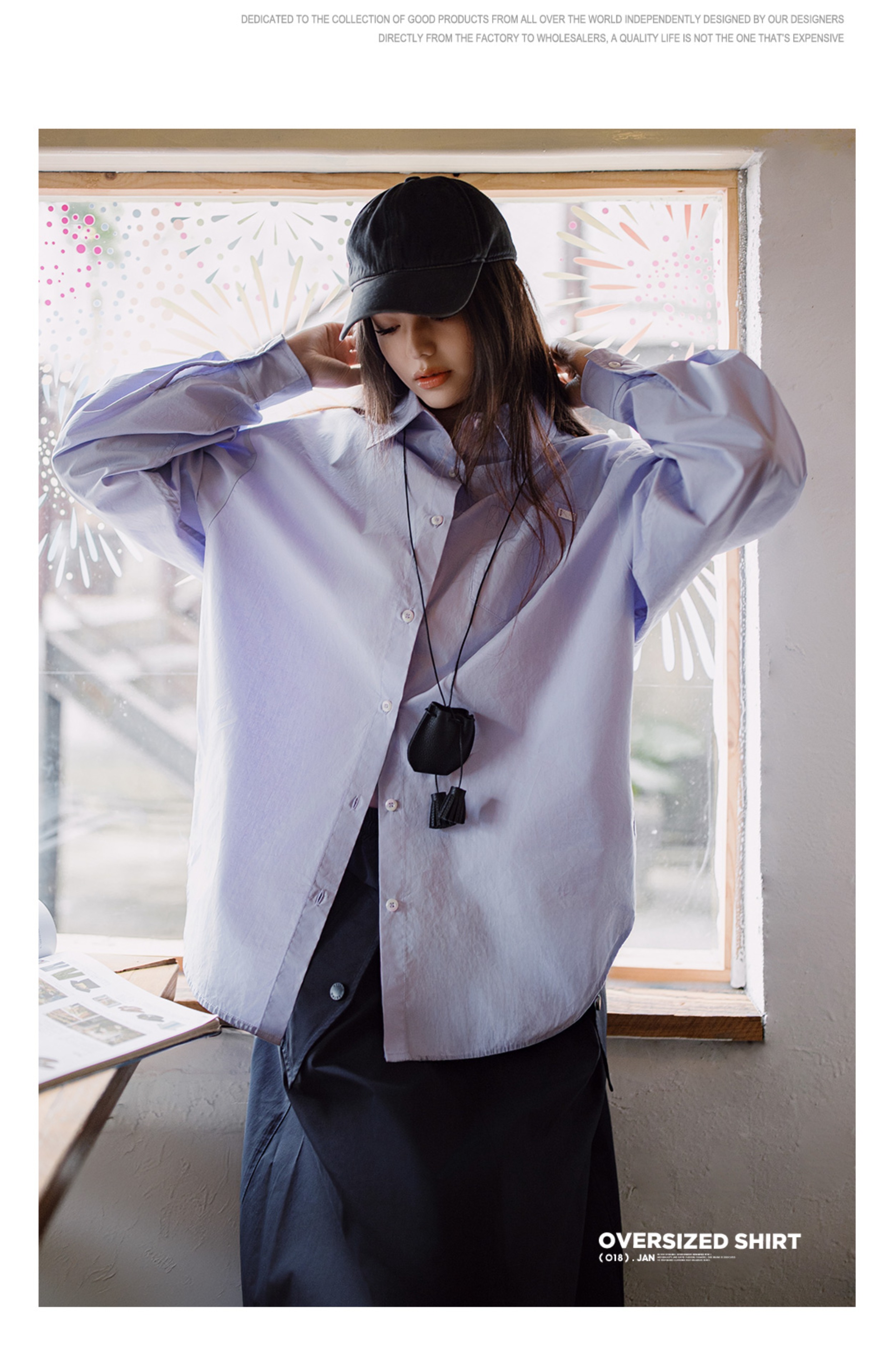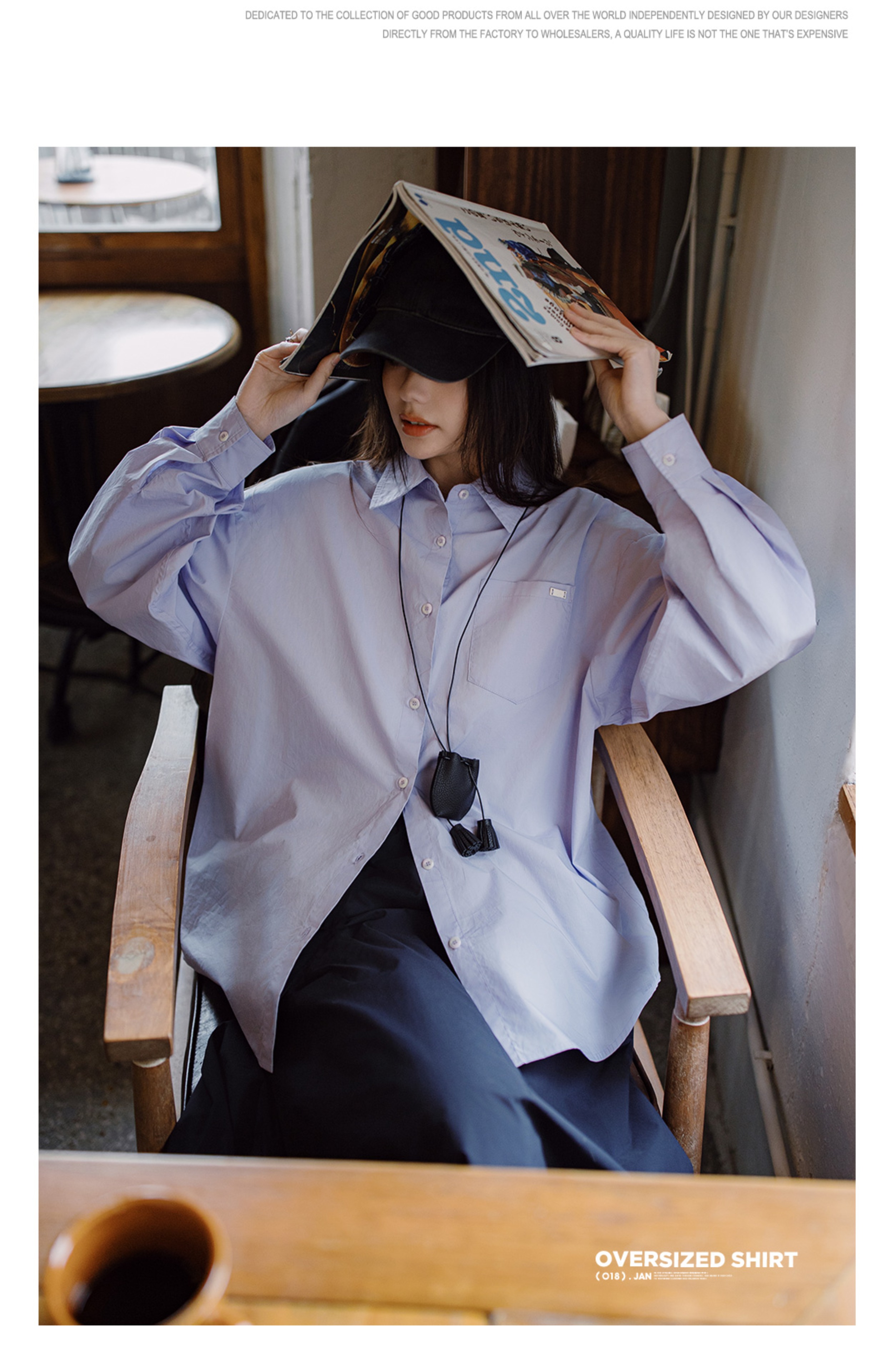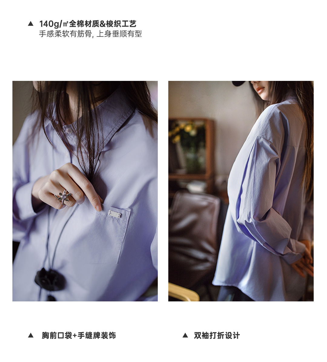 马登浅春系慵懒风oversize衬衫褶皱袖口度假风外套多巴胺上衣春女