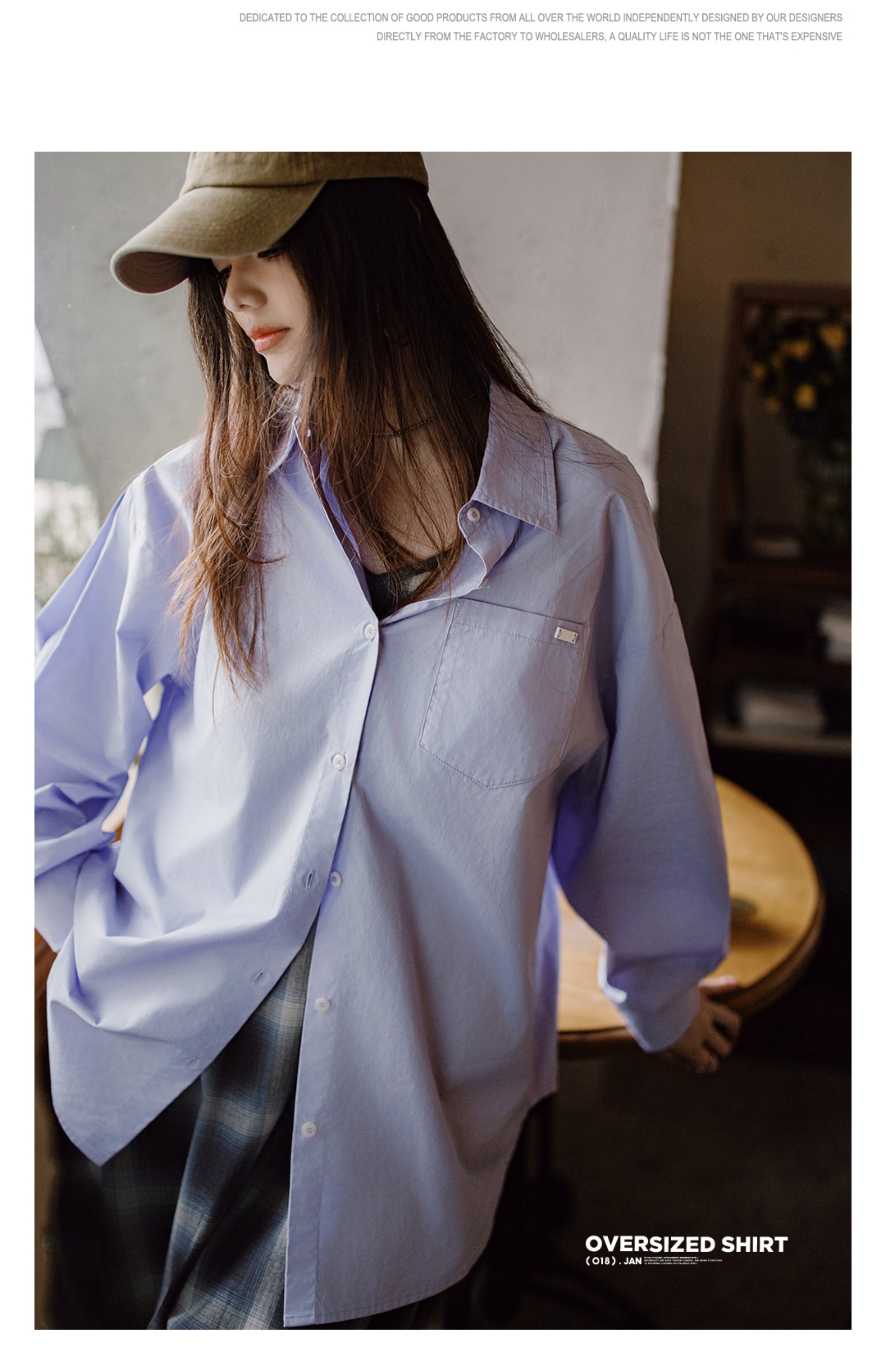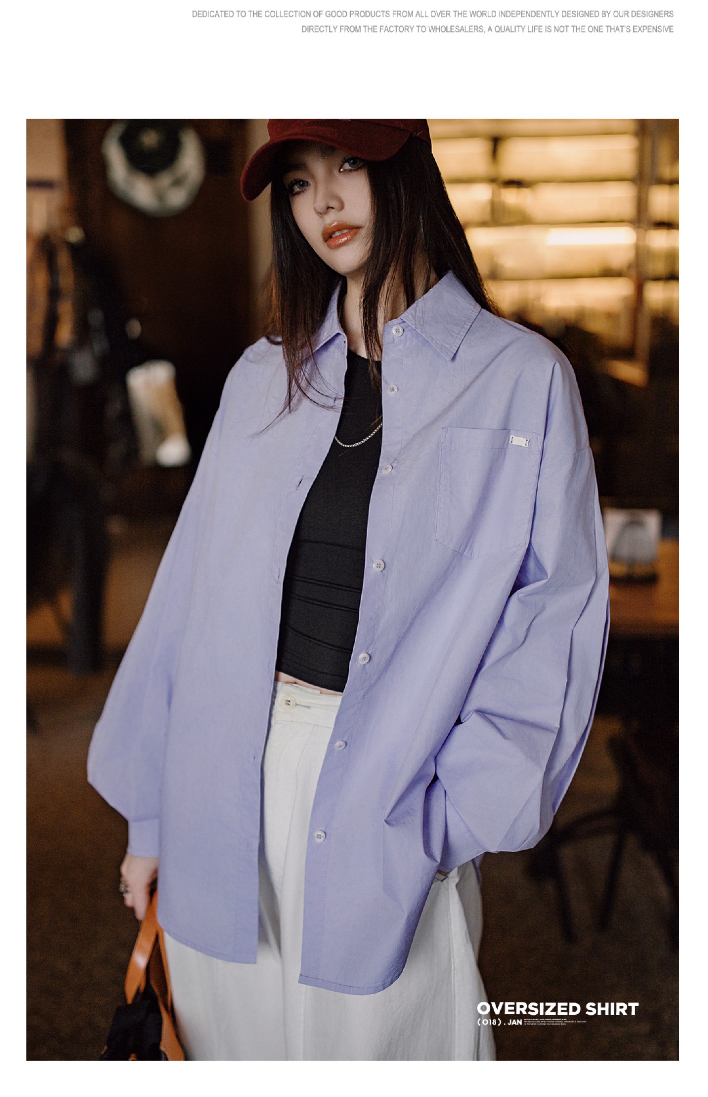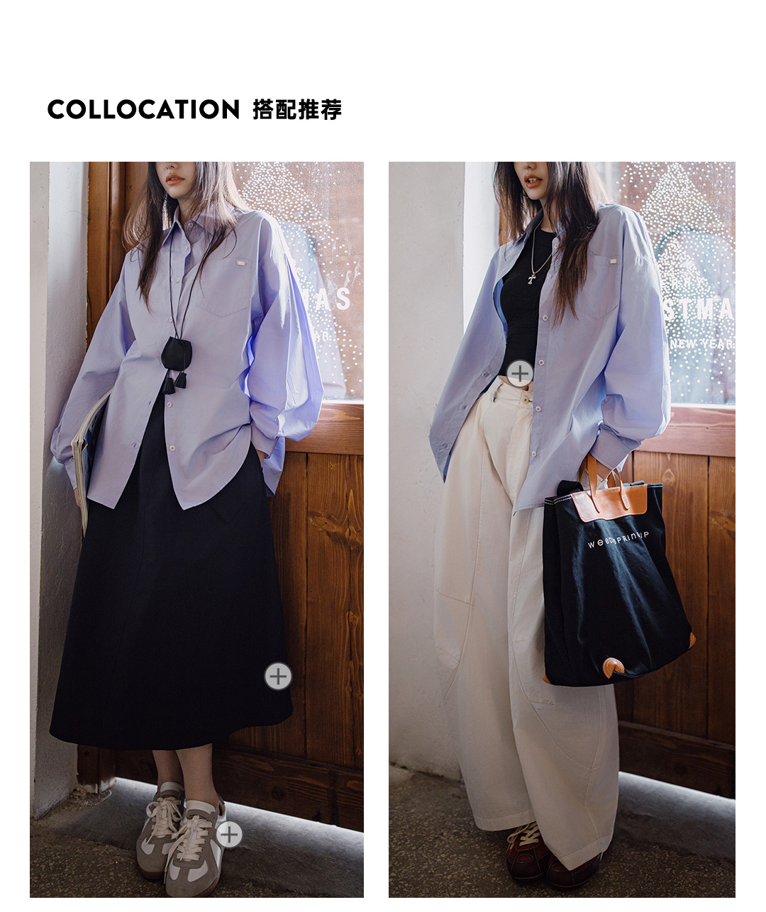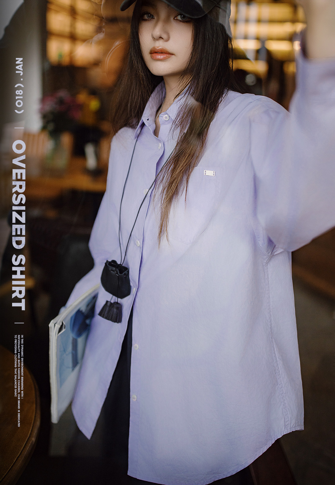 马登浅春系慵懒风oversize衬衫褶皱袖口度假风外套多巴胺上衣春女
