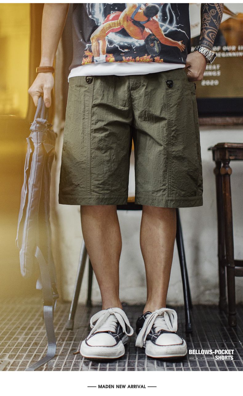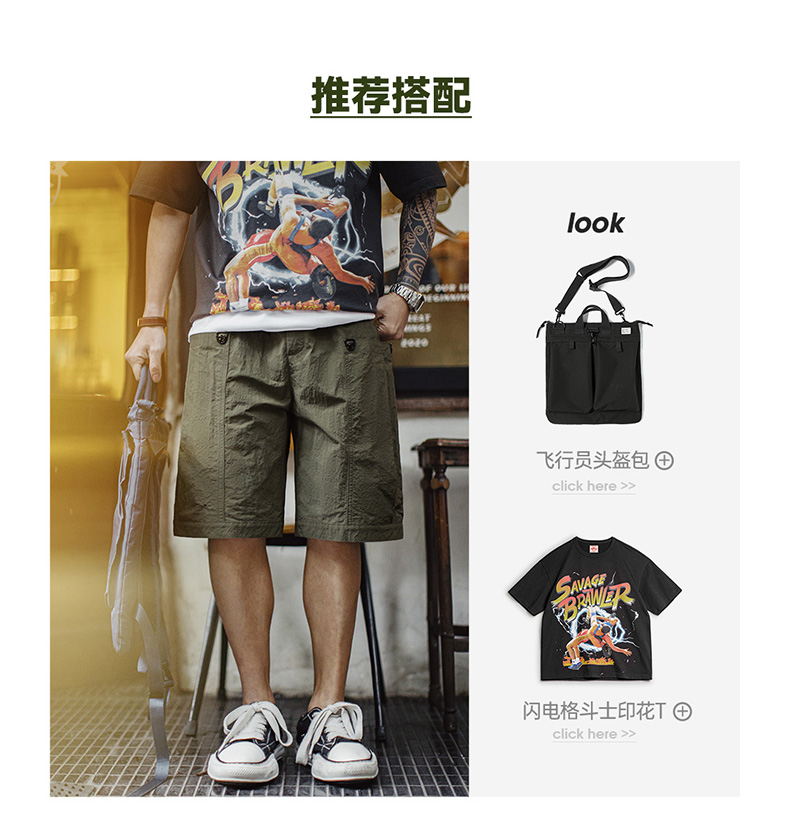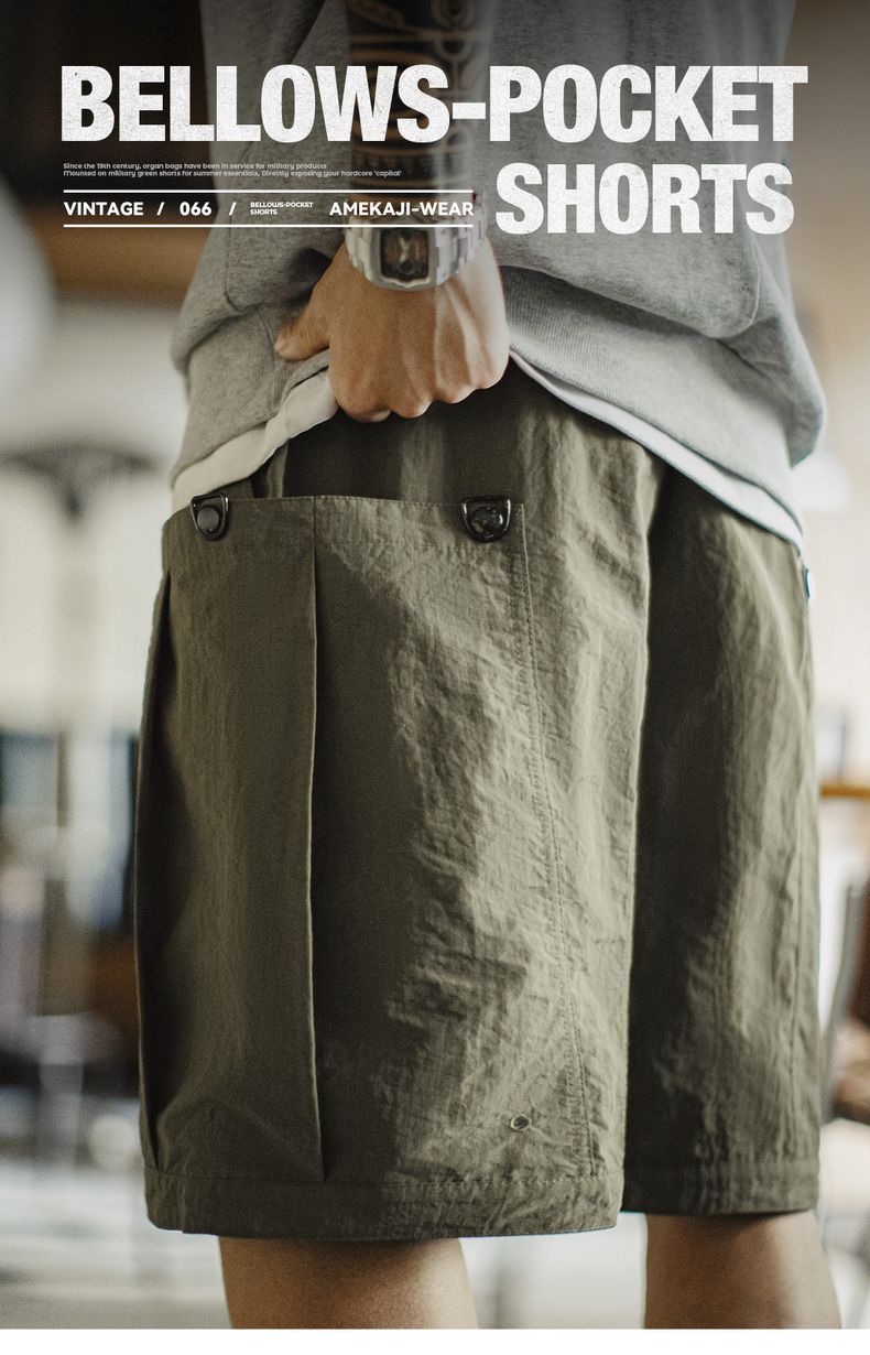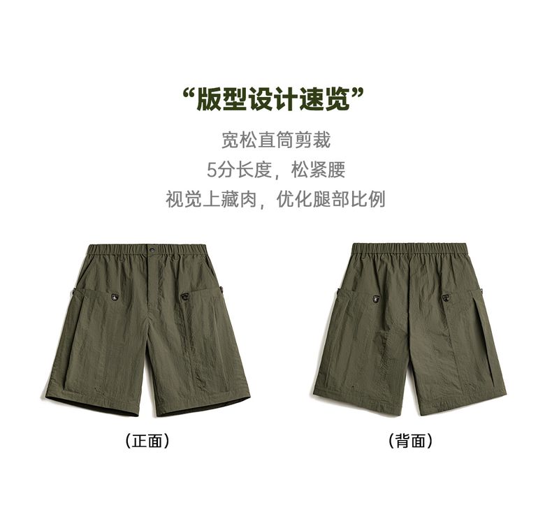 工装优选美式复古风琴大口袋军绿色短裤直筒梭织薄款五分裤男夏季