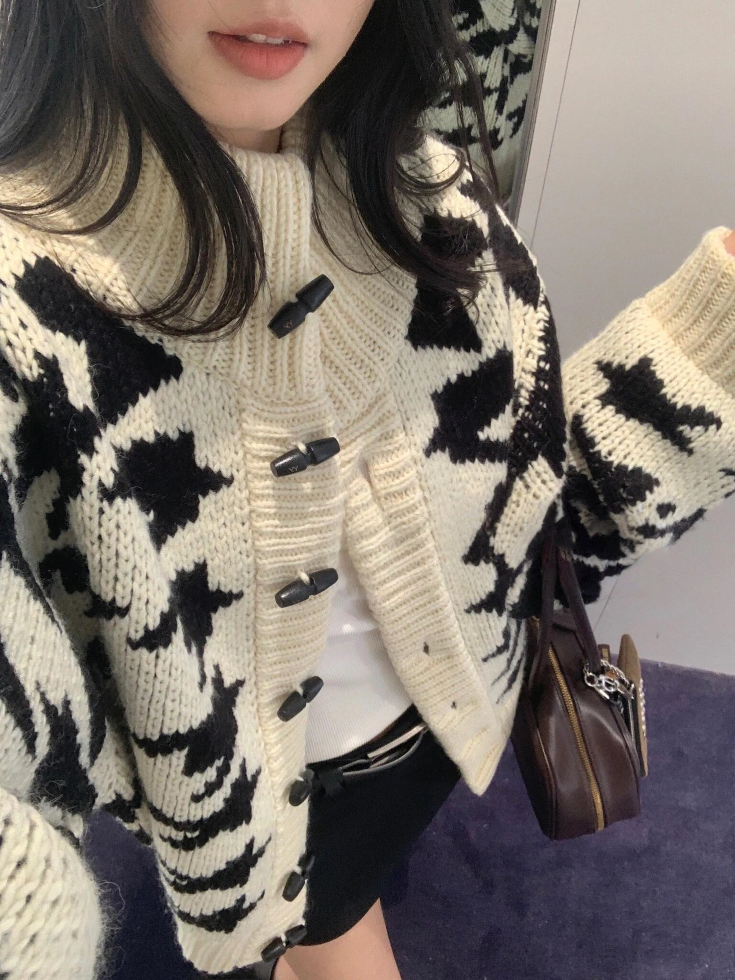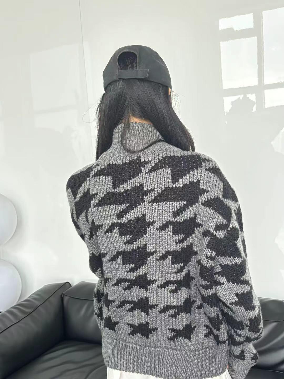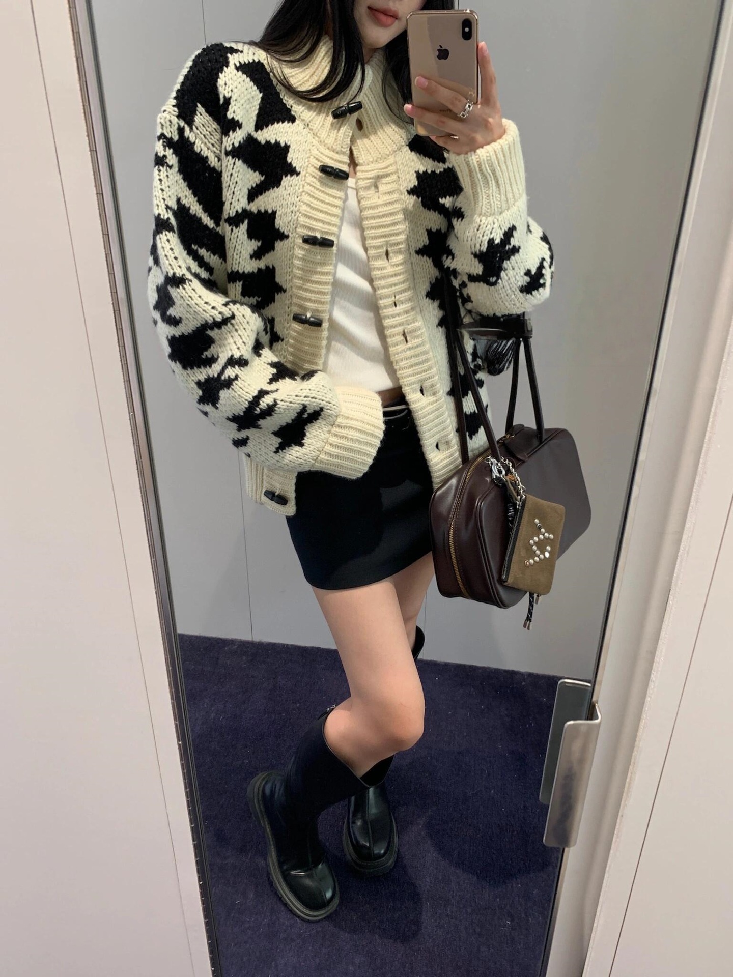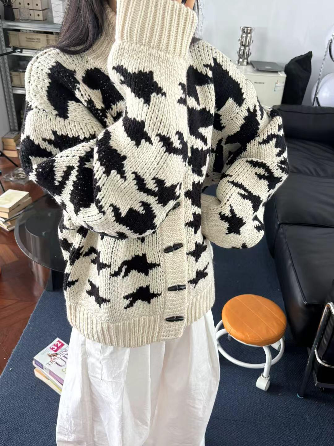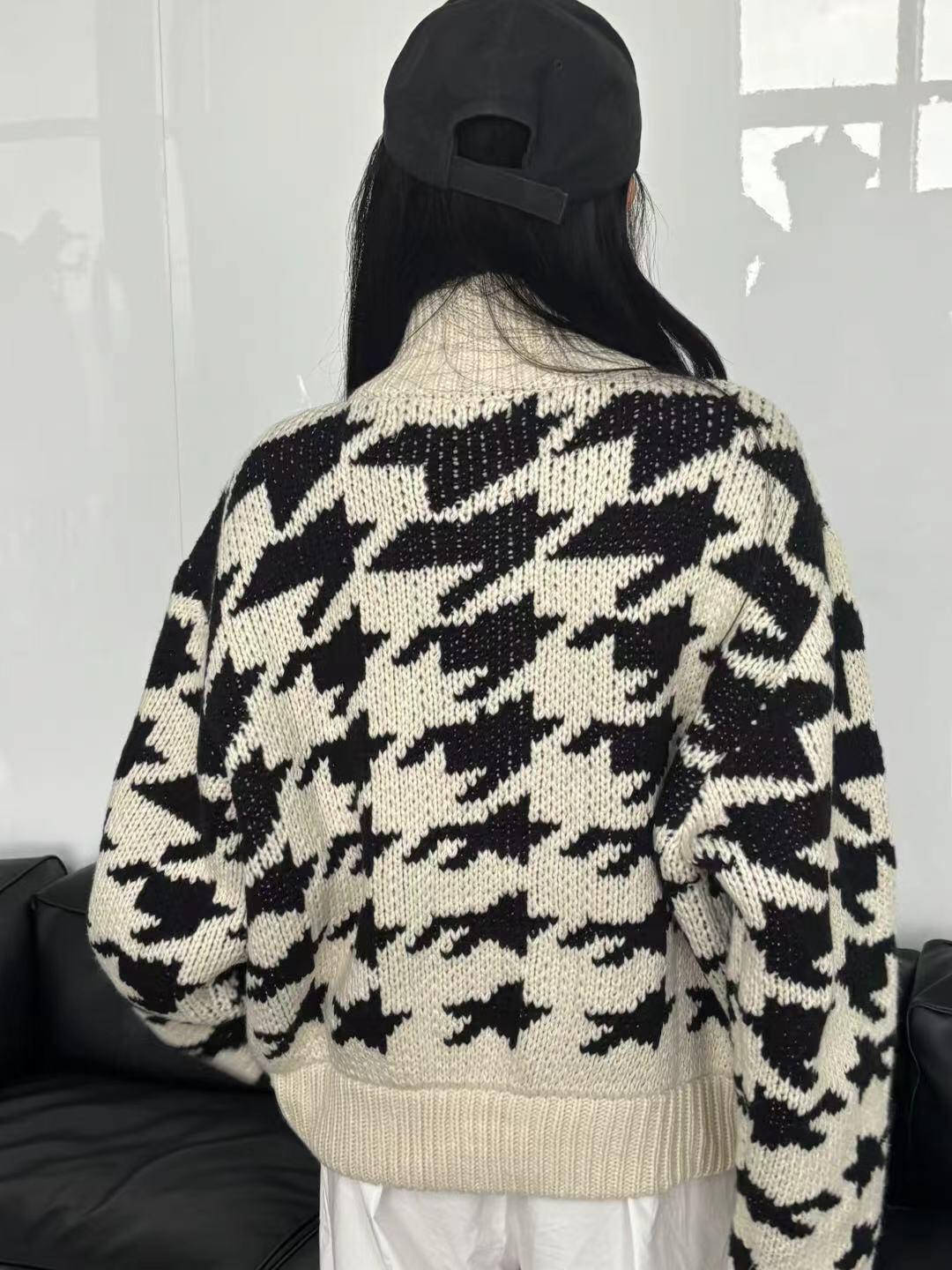 【时髦这件事要上高度】韩国小众潮牌毛衣!2026新款open yy千鸟格针织开衫牛角扣圆领毛衣加厚羊毛外套!