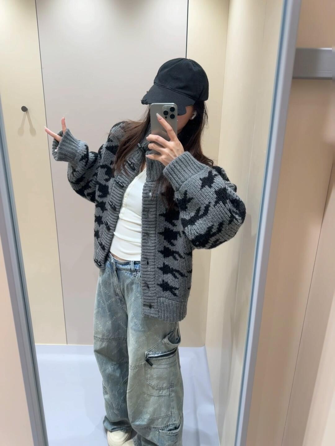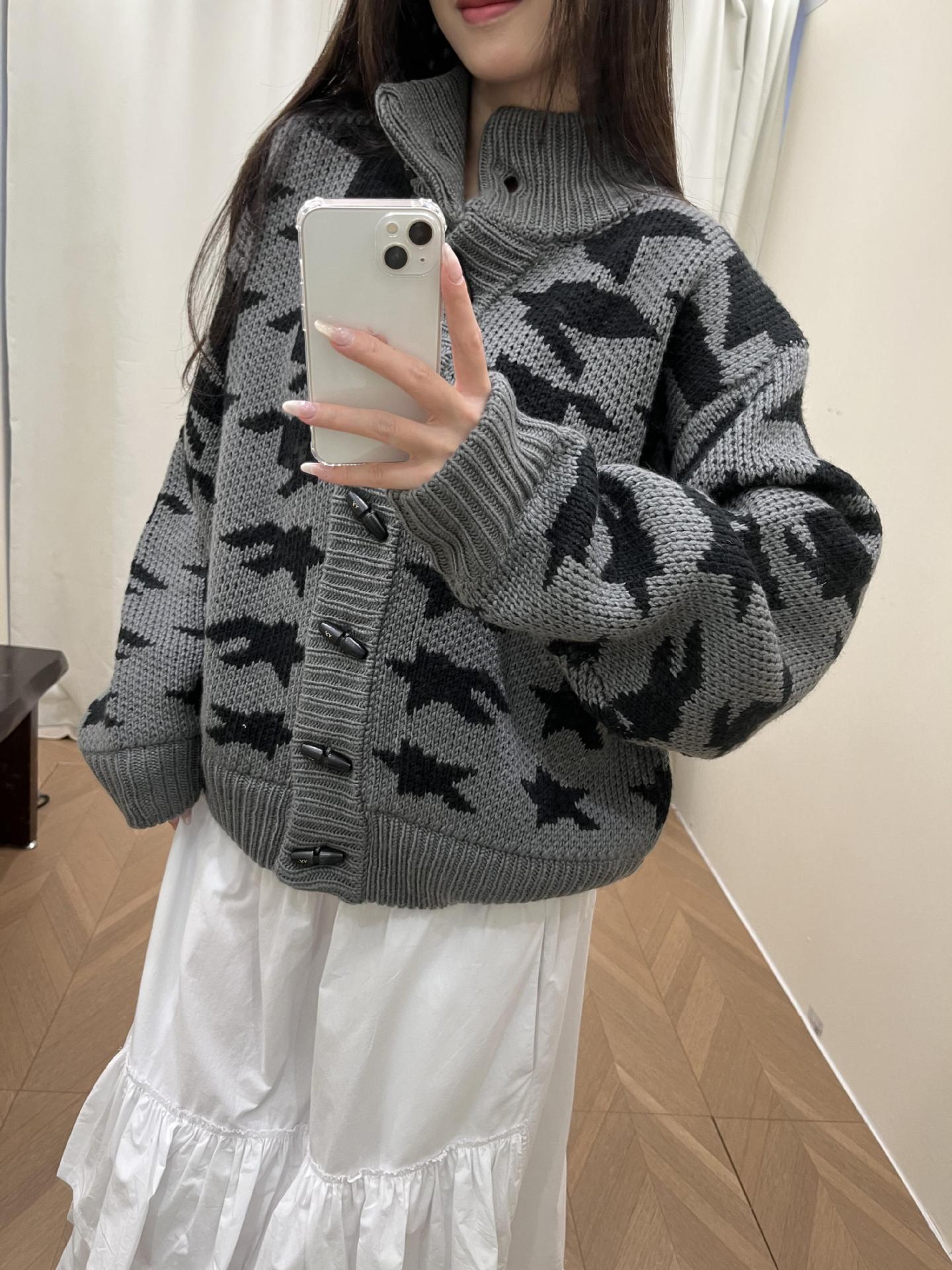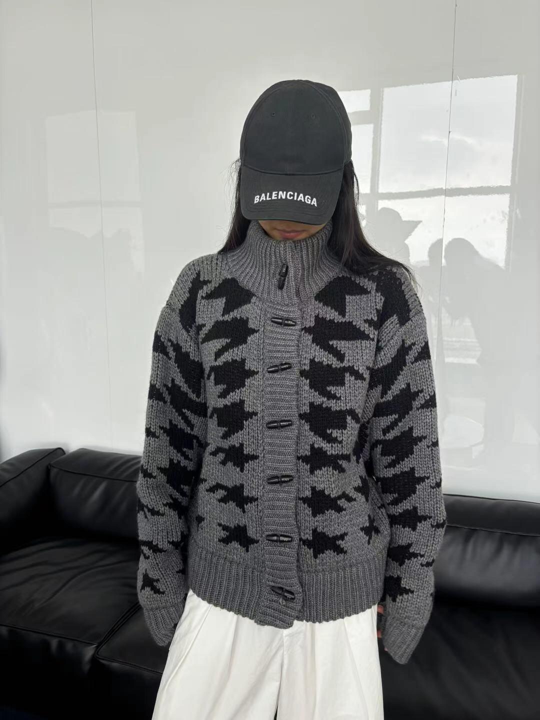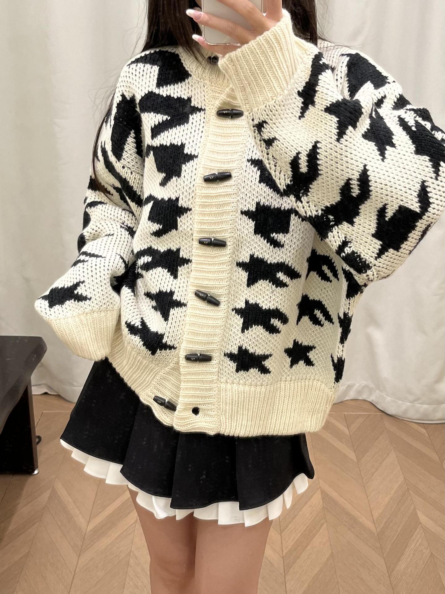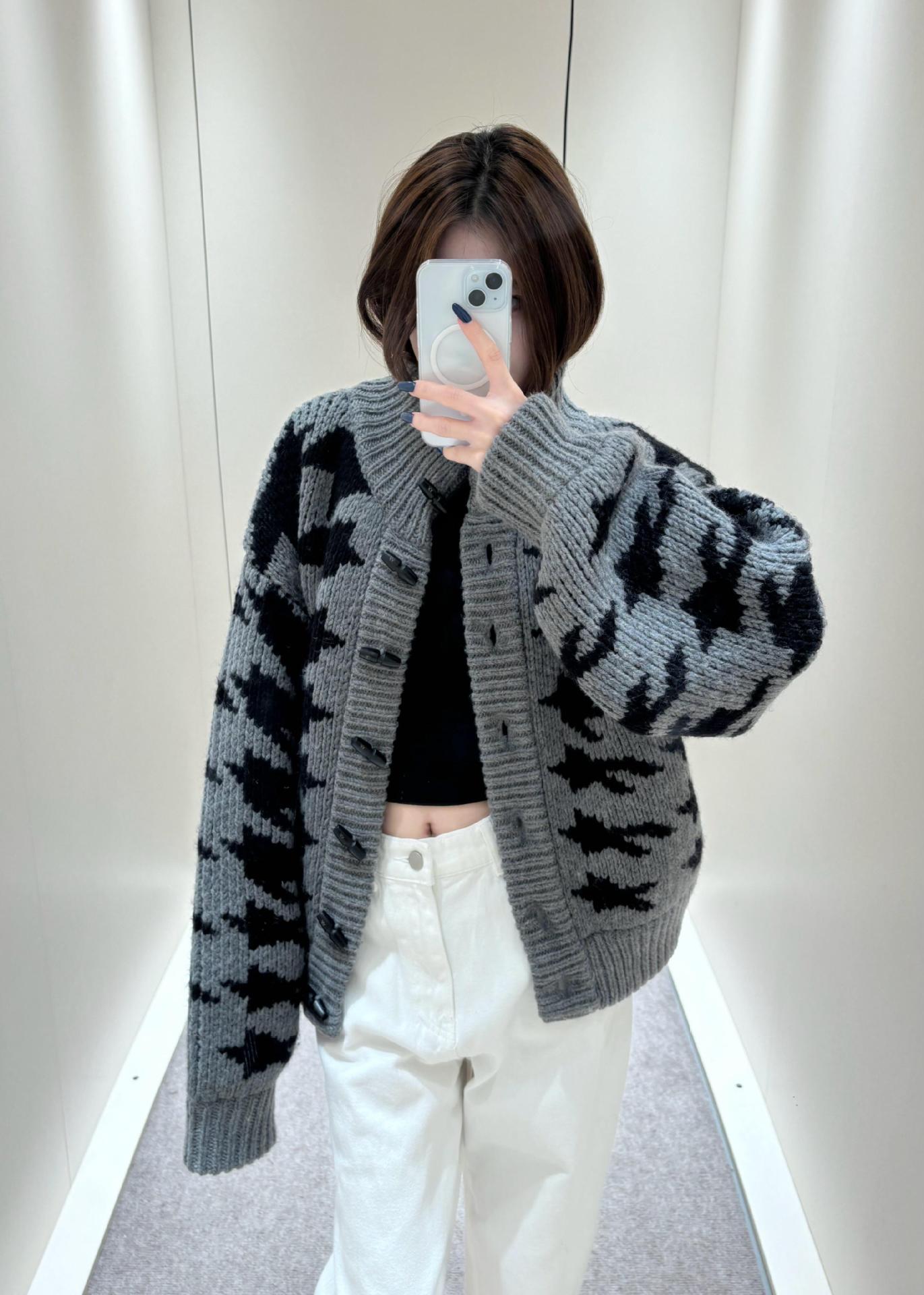 【时髦这件事要上高度】韩国小众潮牌毛衣!2026新款open yy千鸟格针织开衫牛角扣圆领毛衣加厚羊毛外套!
