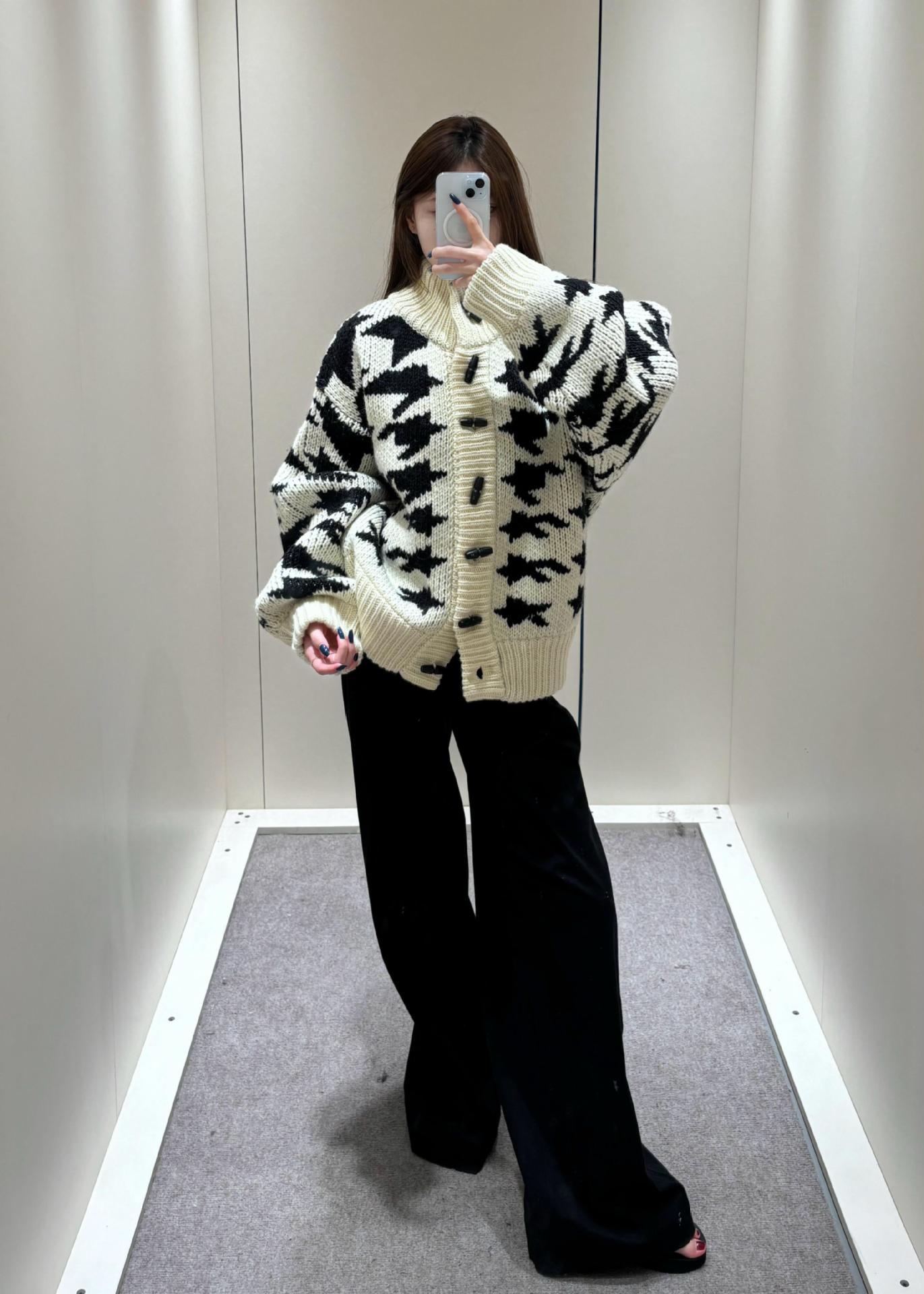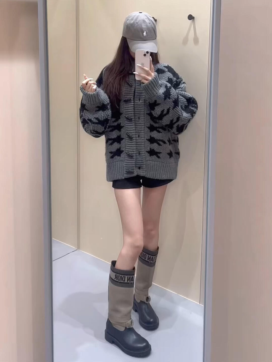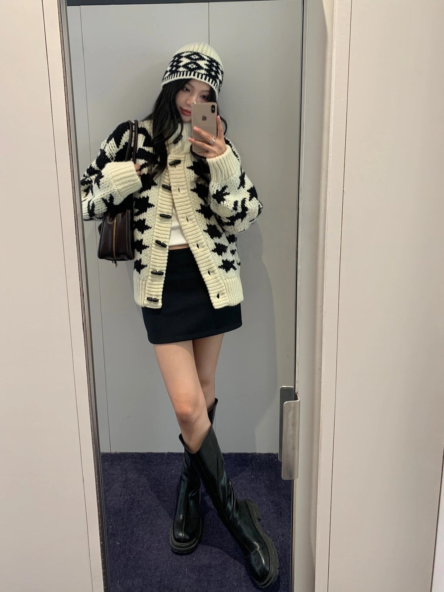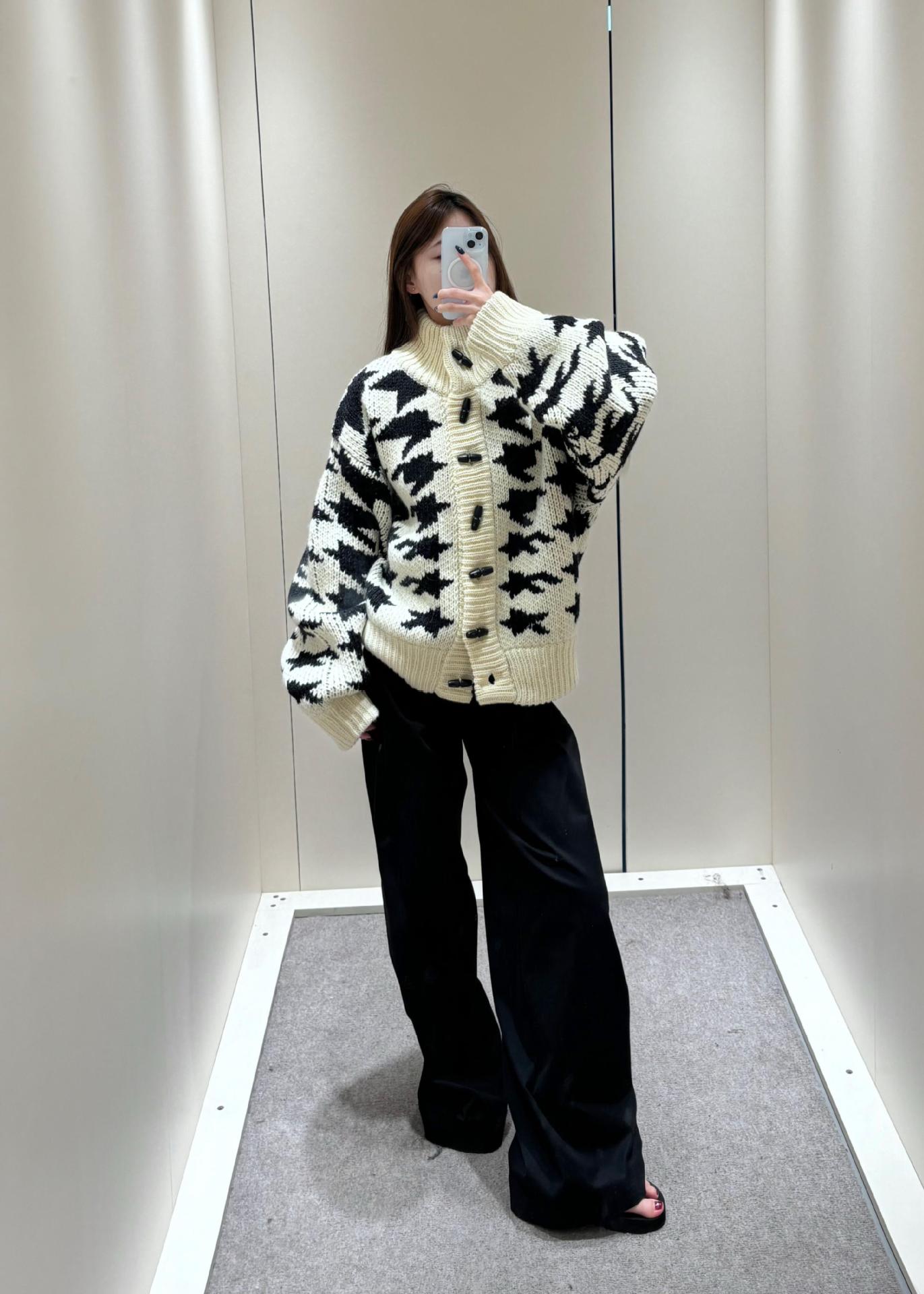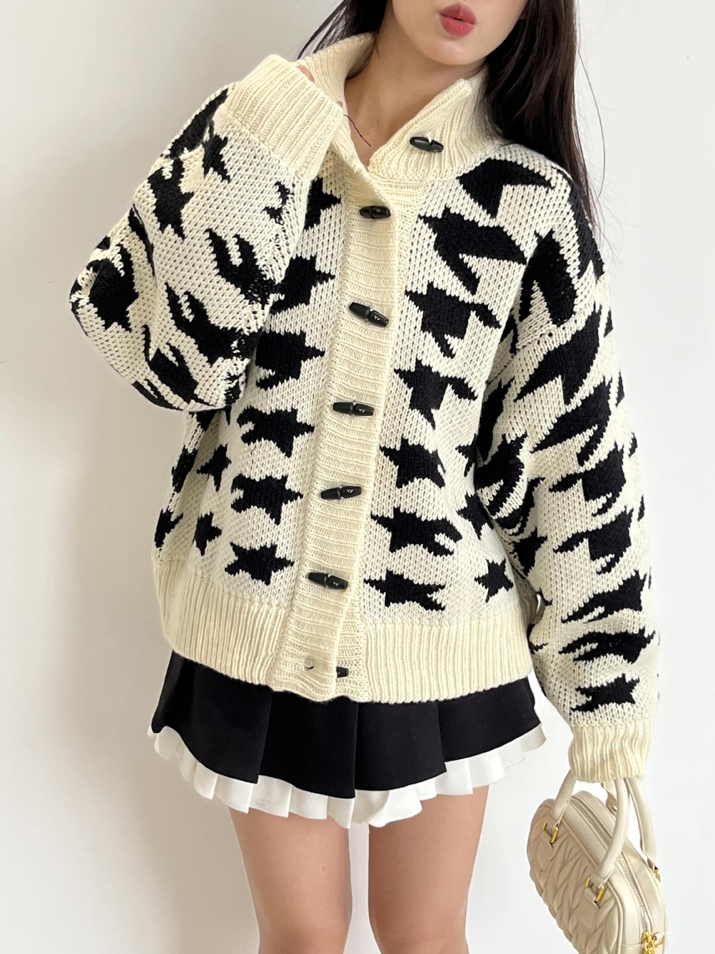 【时髦这件事要上高度】韩国小众潮牌毛衣!2026新款open yy千鸟格针织开衫牛角扣圆领毛衣加厚羊毛外套!