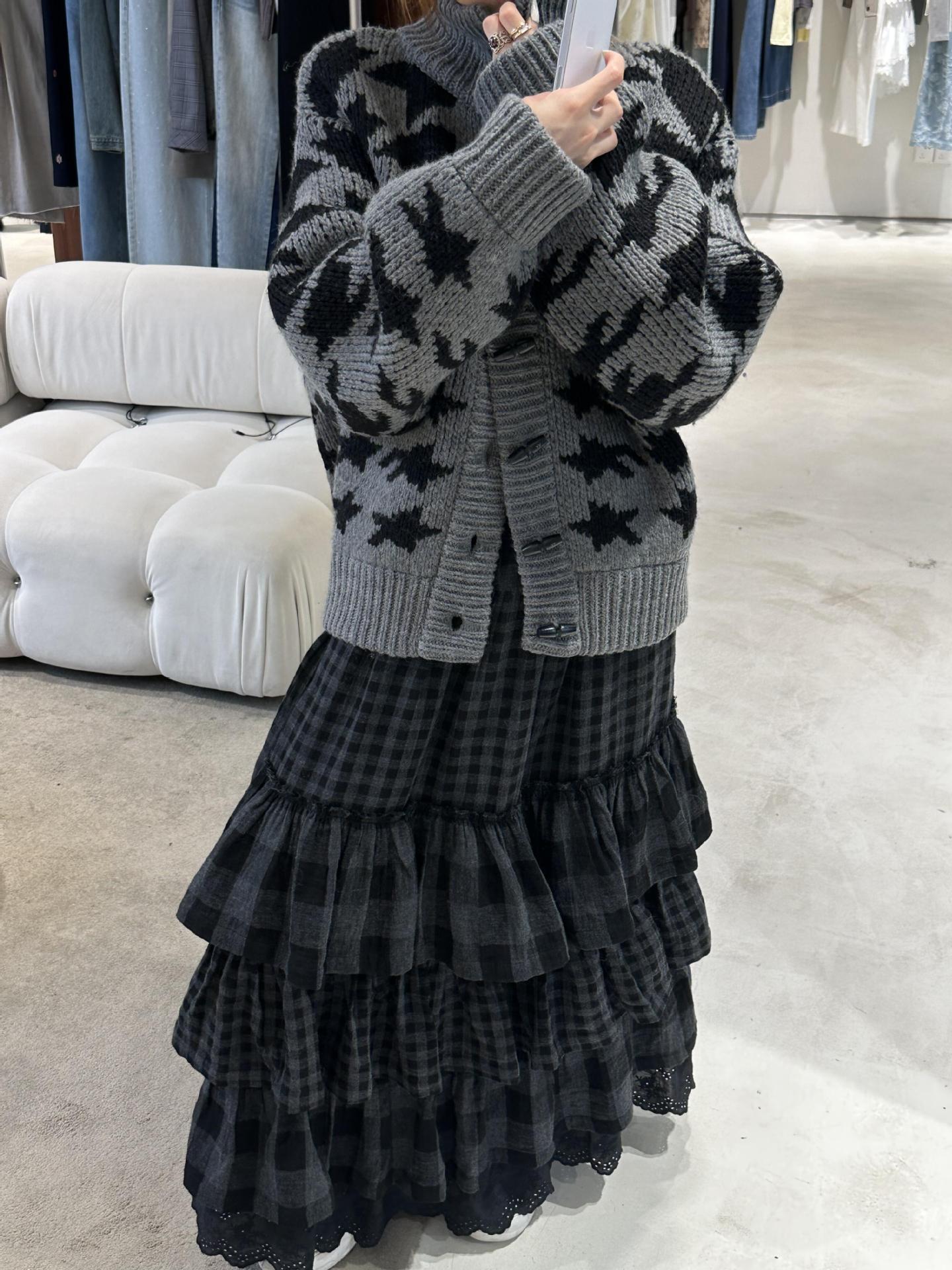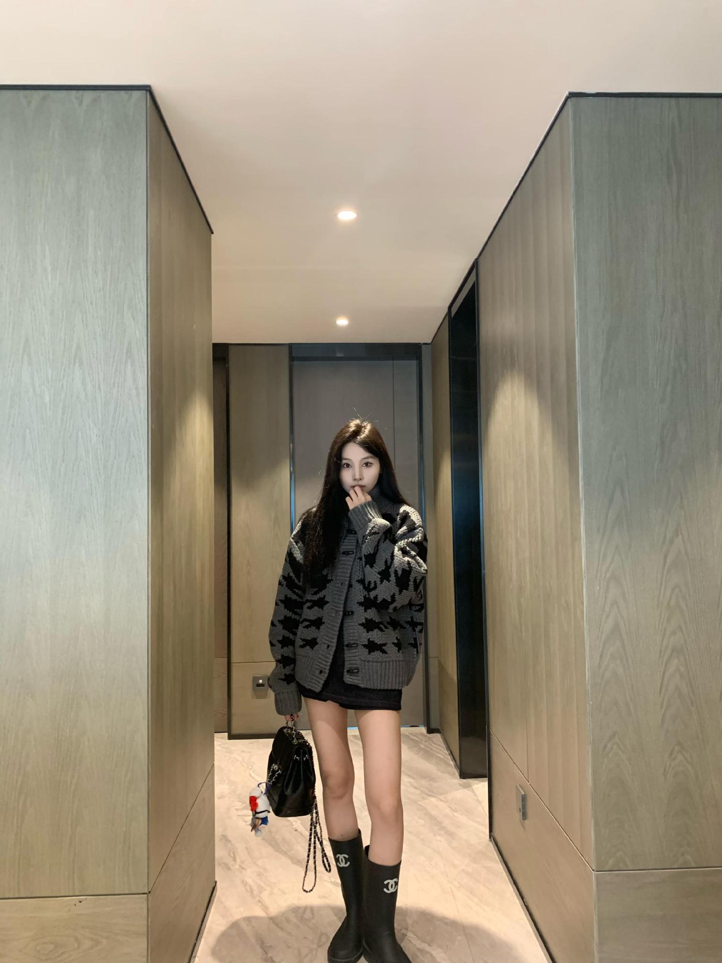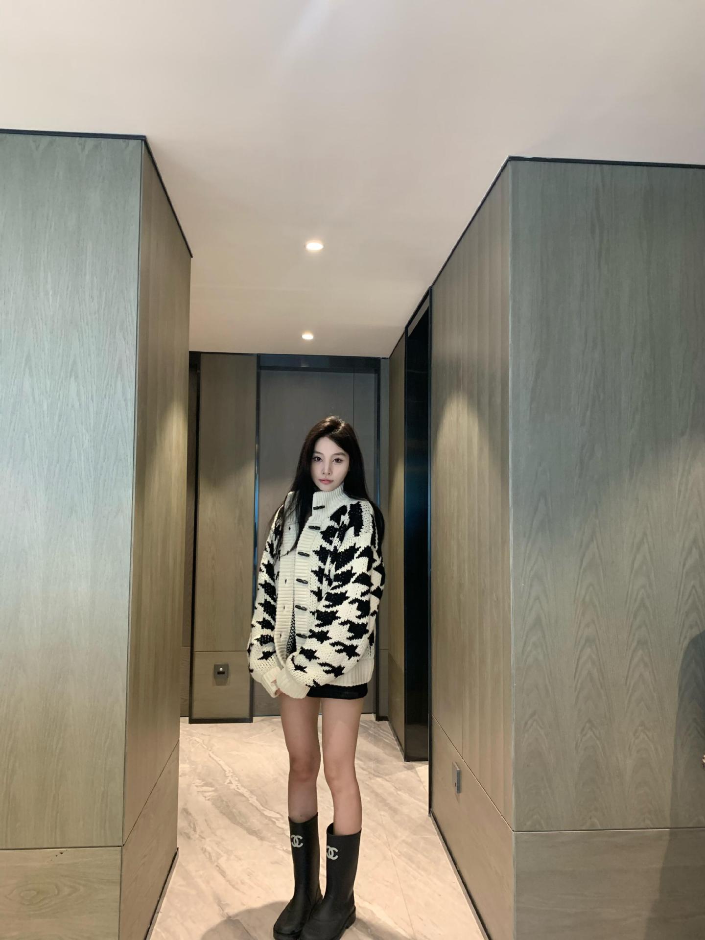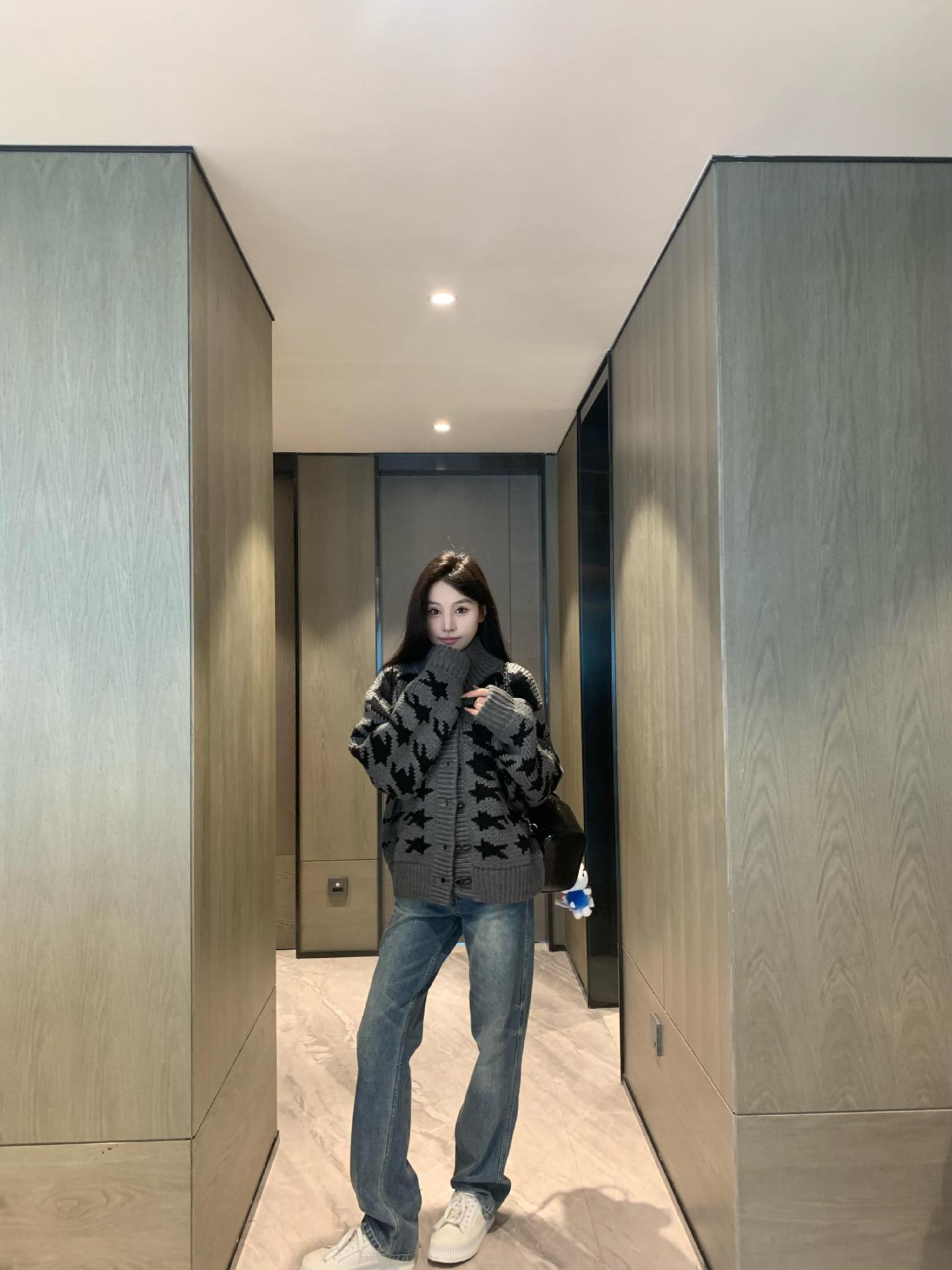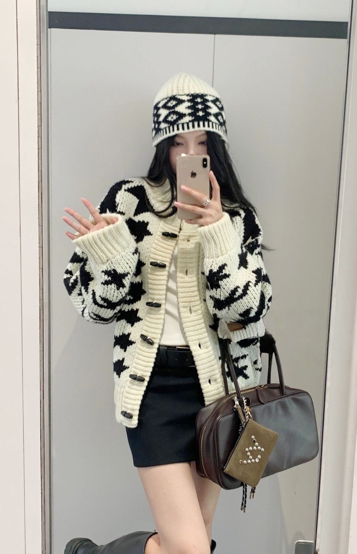 【时髦这件事要上高度】韩国小众潮牌毛衣!2026新款open yy千鸟格针织开衫牛角扣圆领毛衣加厚羊毛外套!