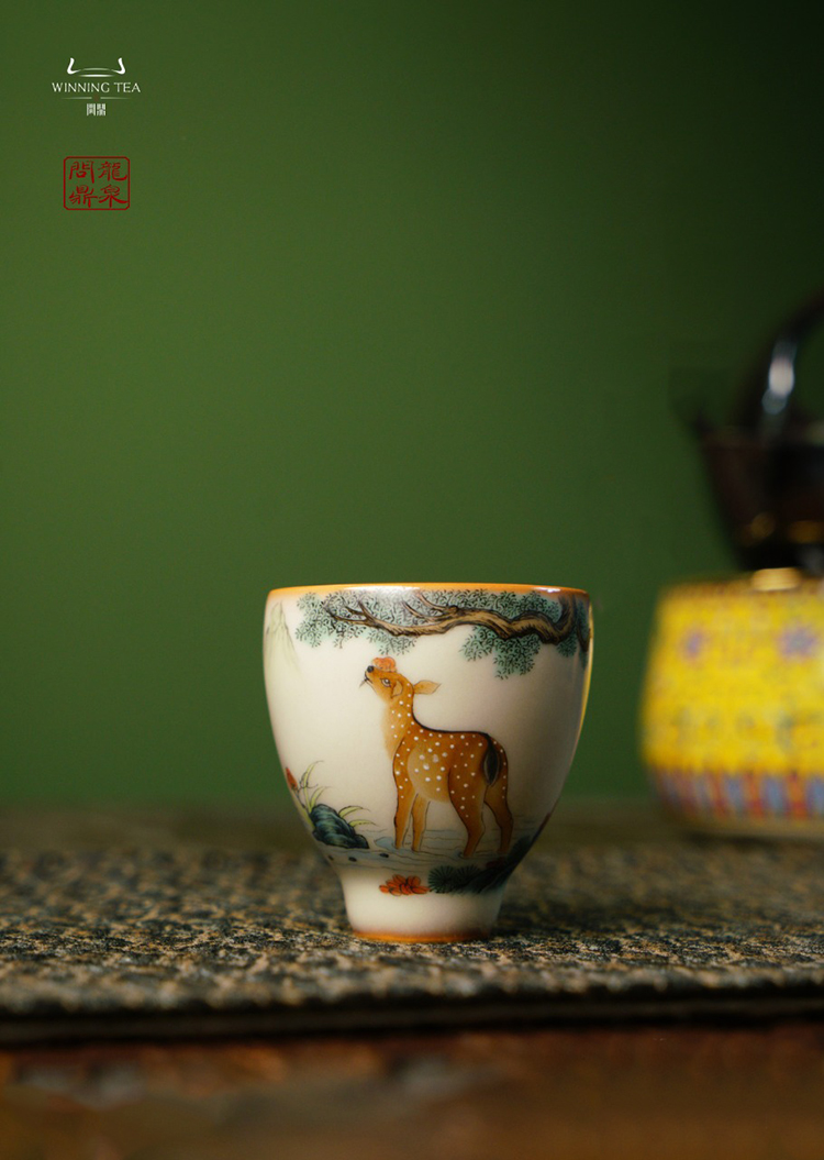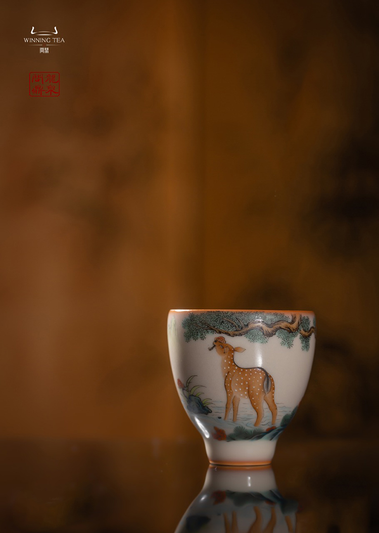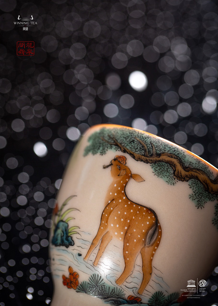 龙泉问鼎彩绘哥窑寒云杯(梅花鹿)