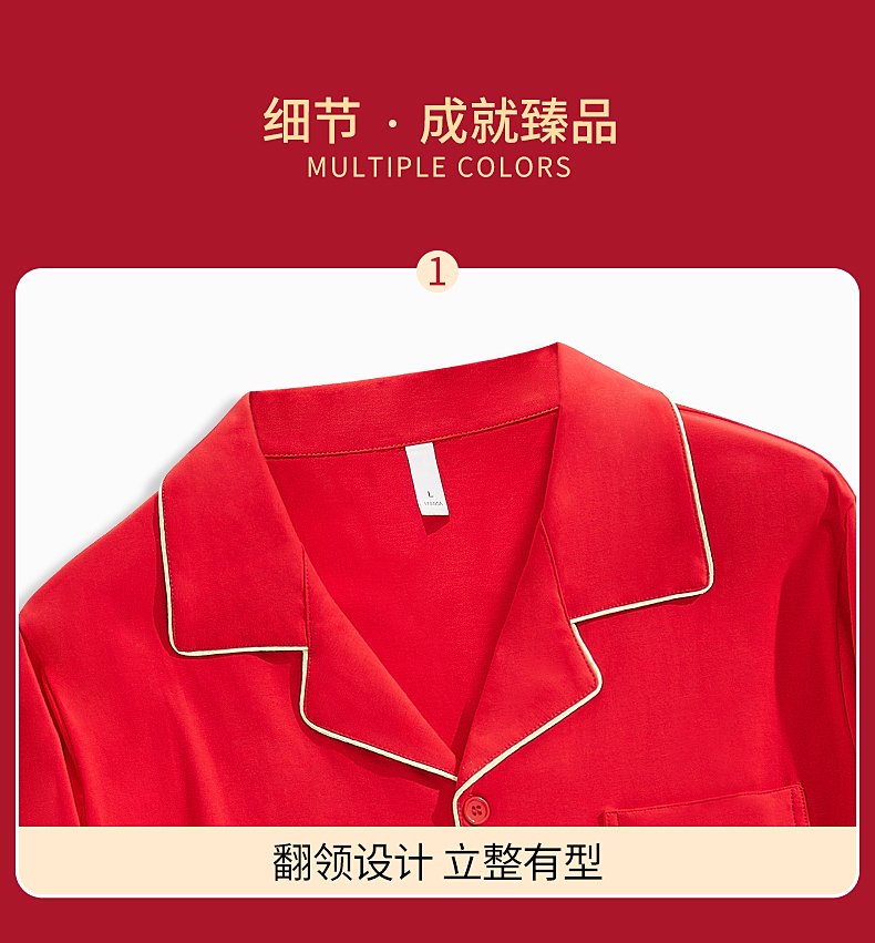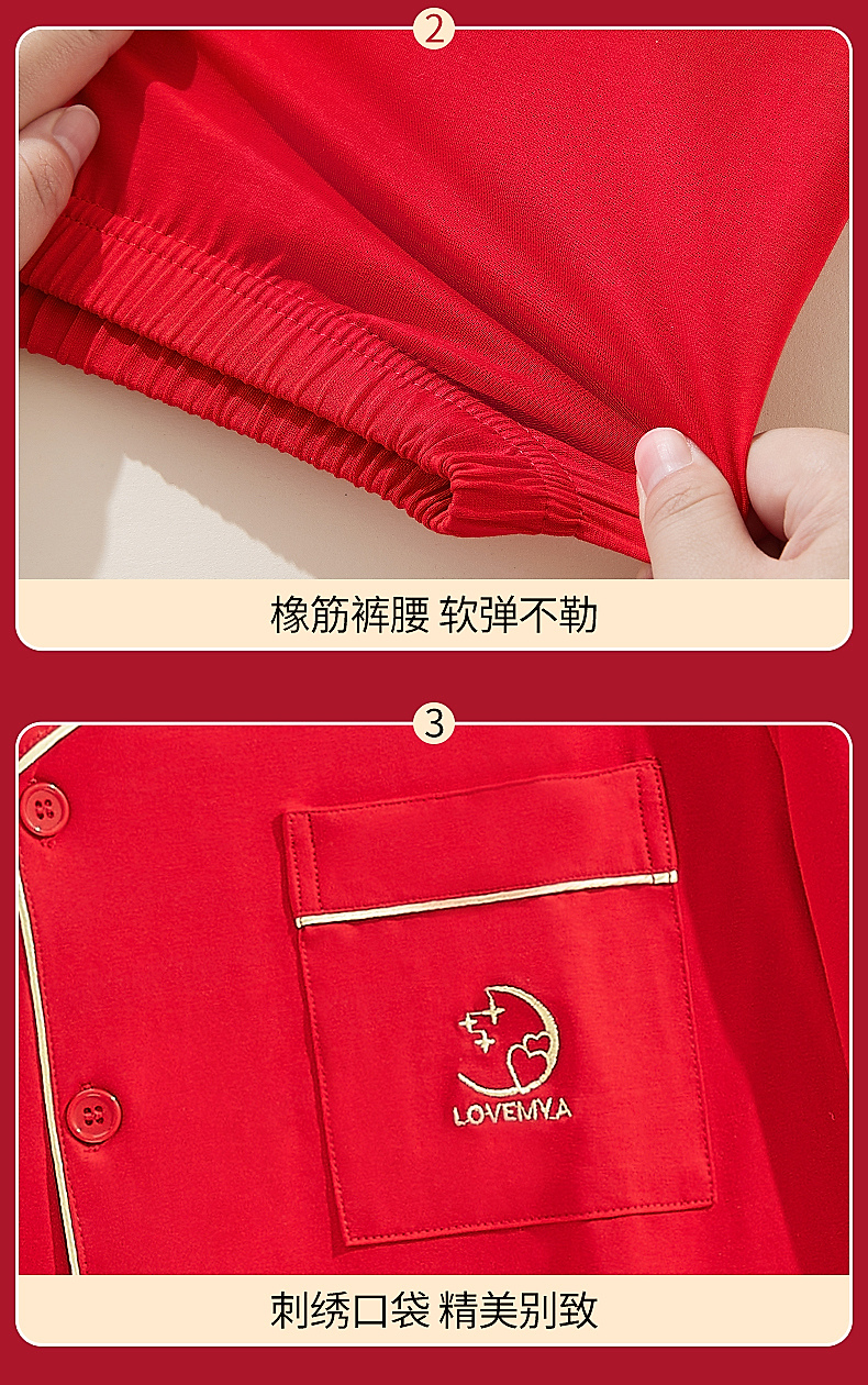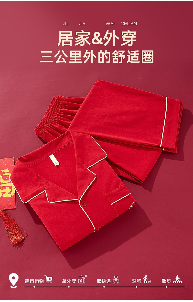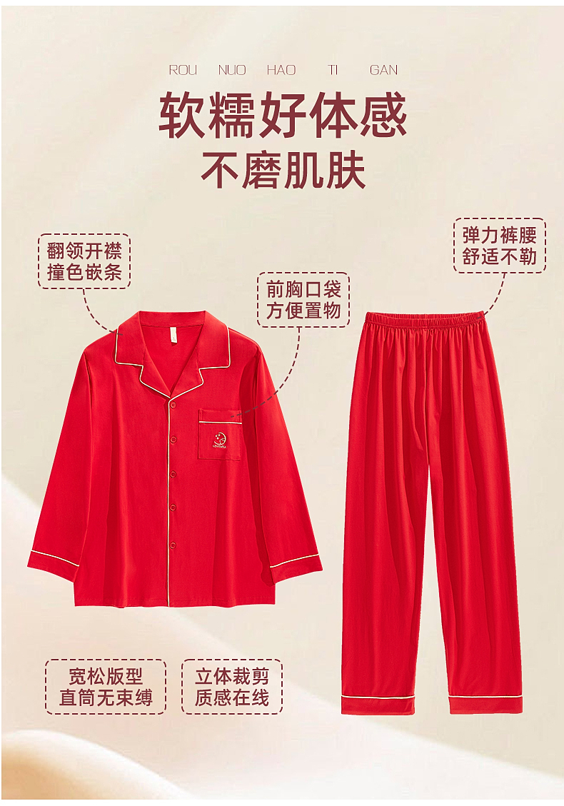 雅黛俪男士家居服套装结婚喜庆大红色本命年长袖长裤居家