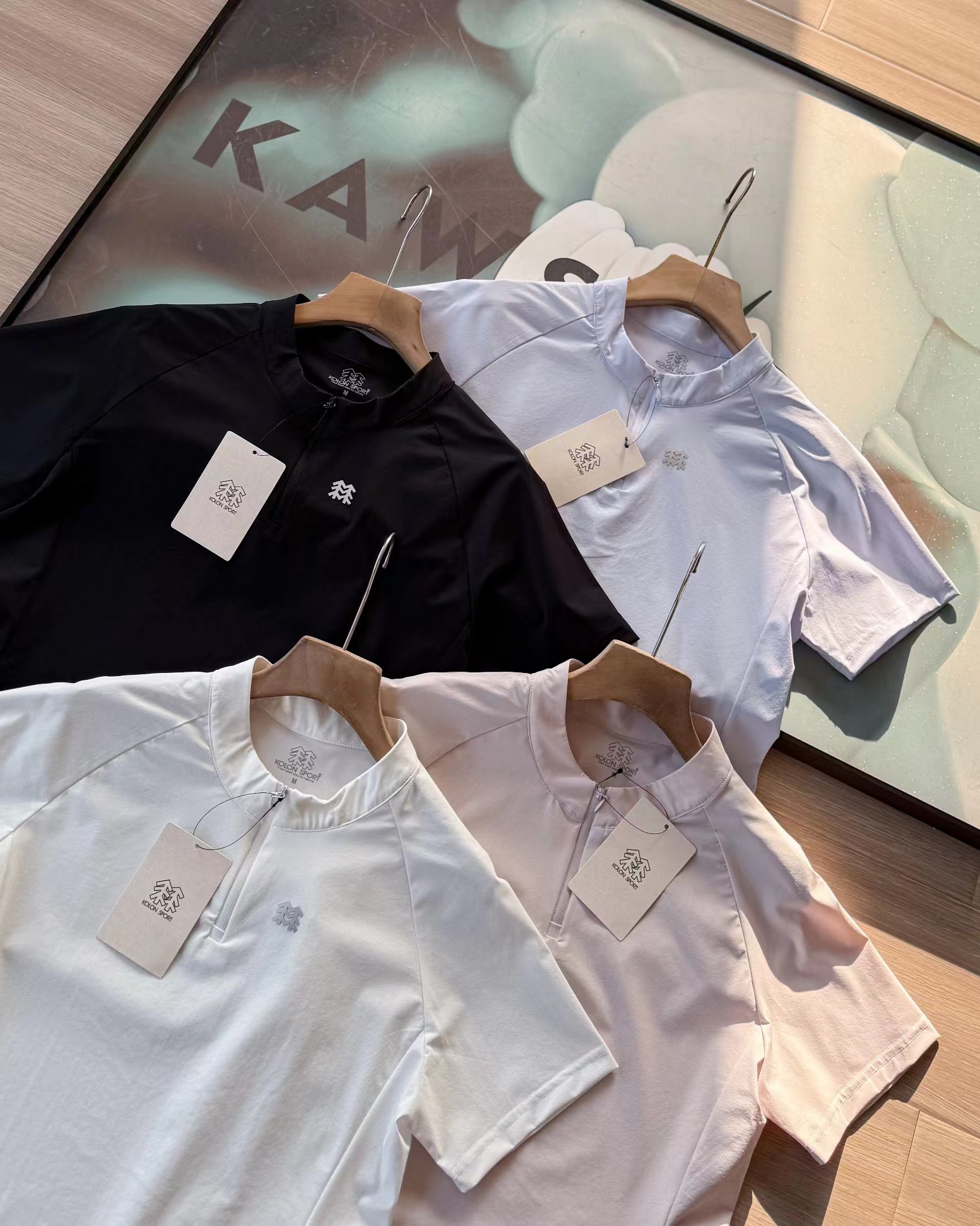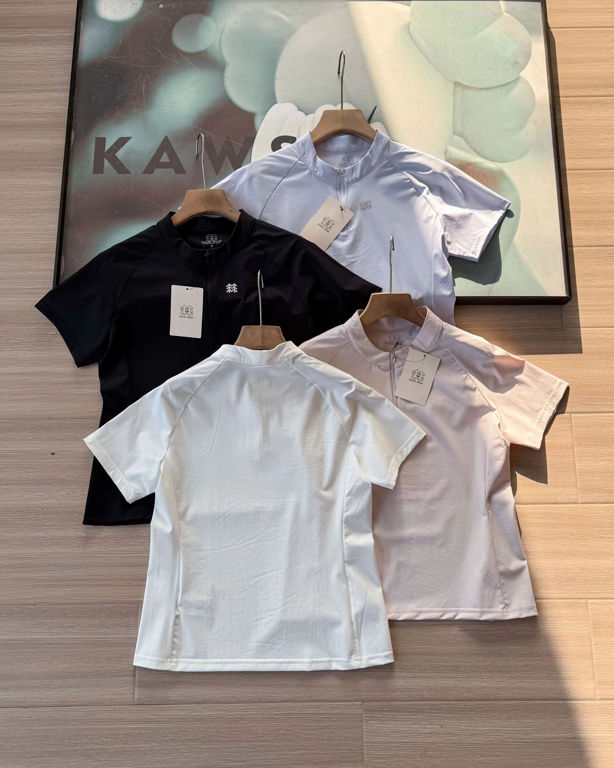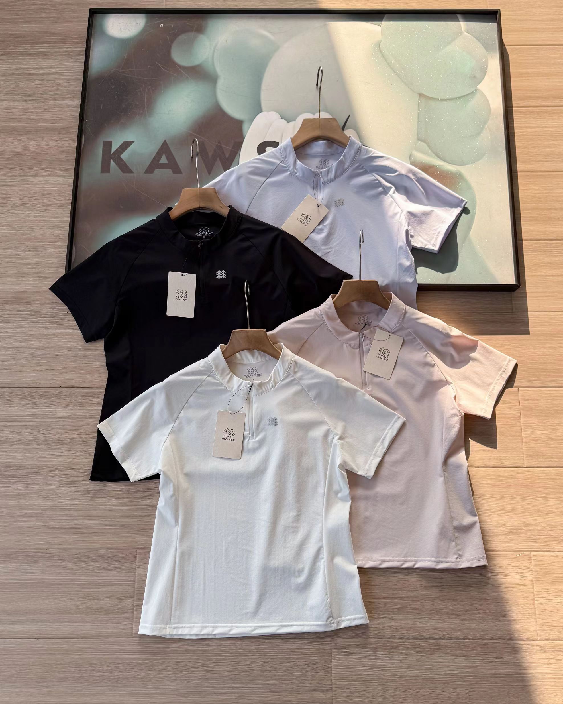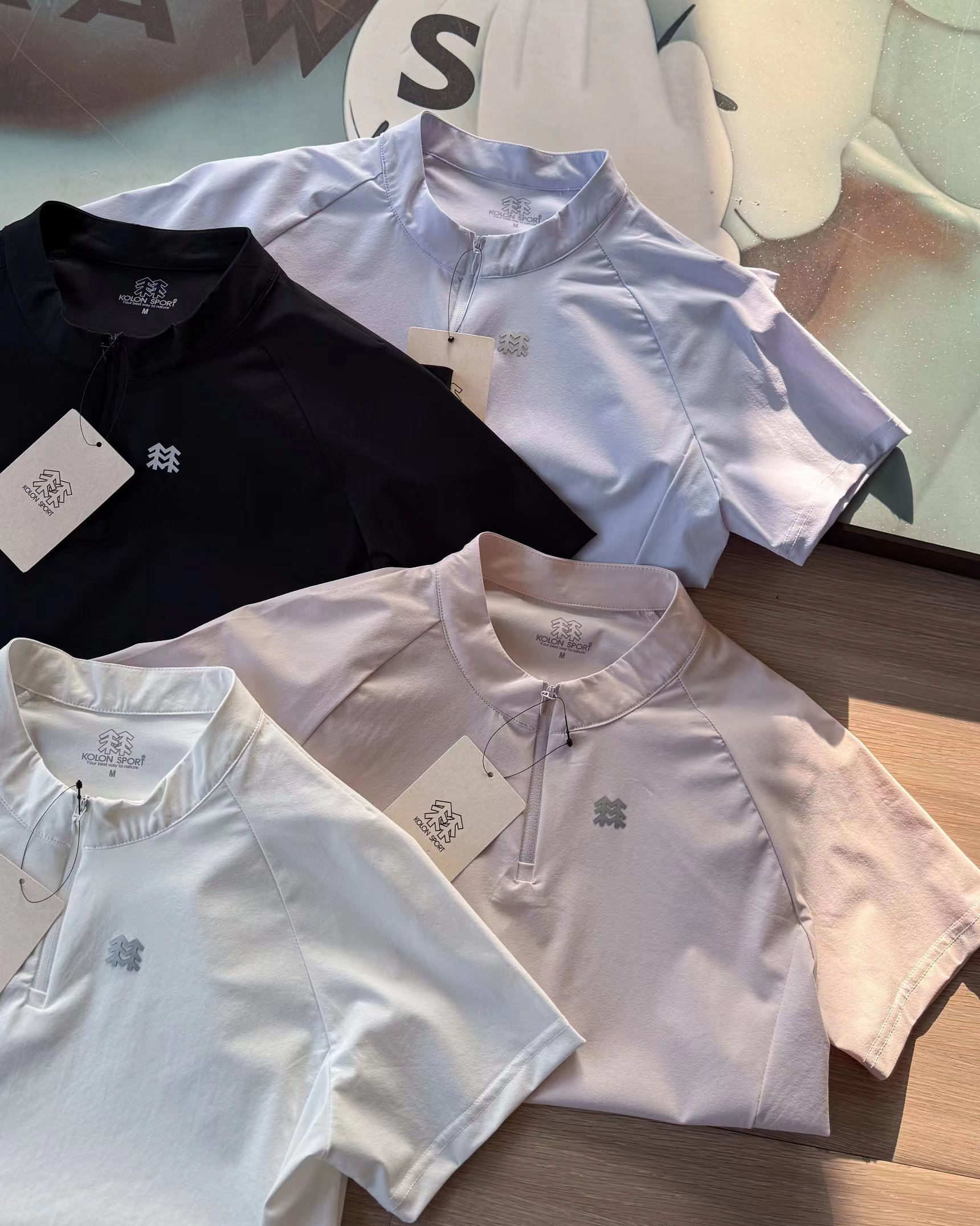 F031458四色女士同款半拉链短袖T恤上衣休闲运动款式半拉链短袖吸湿速干T恤