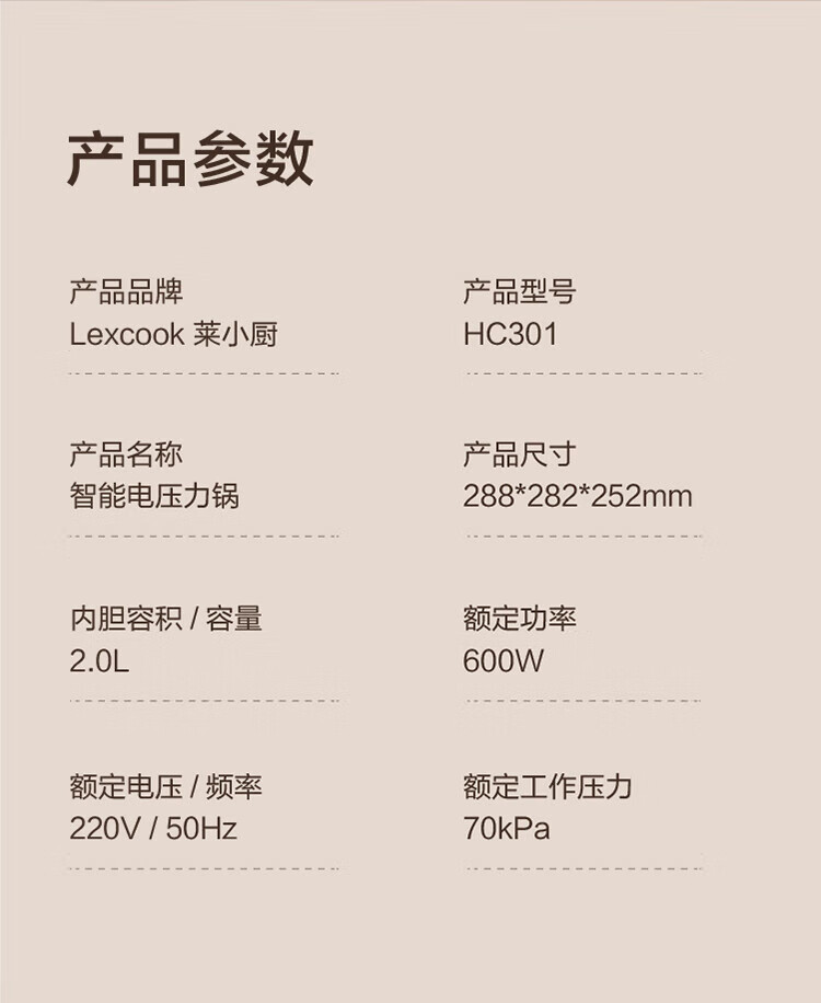 三食黄小厨智能触屏电压力锅 HC301