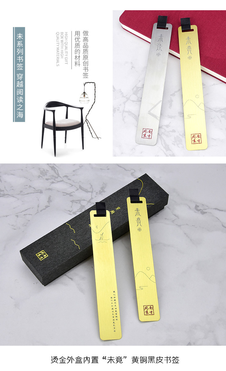 “穿越阅读之海”黄铜黑皮书签