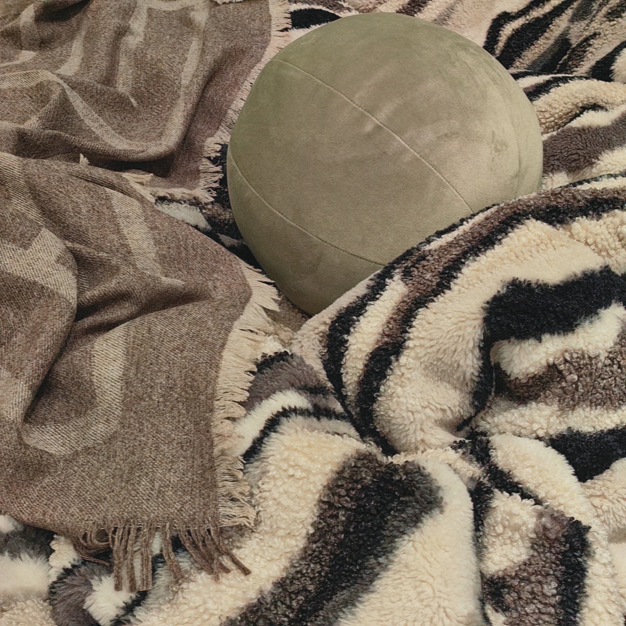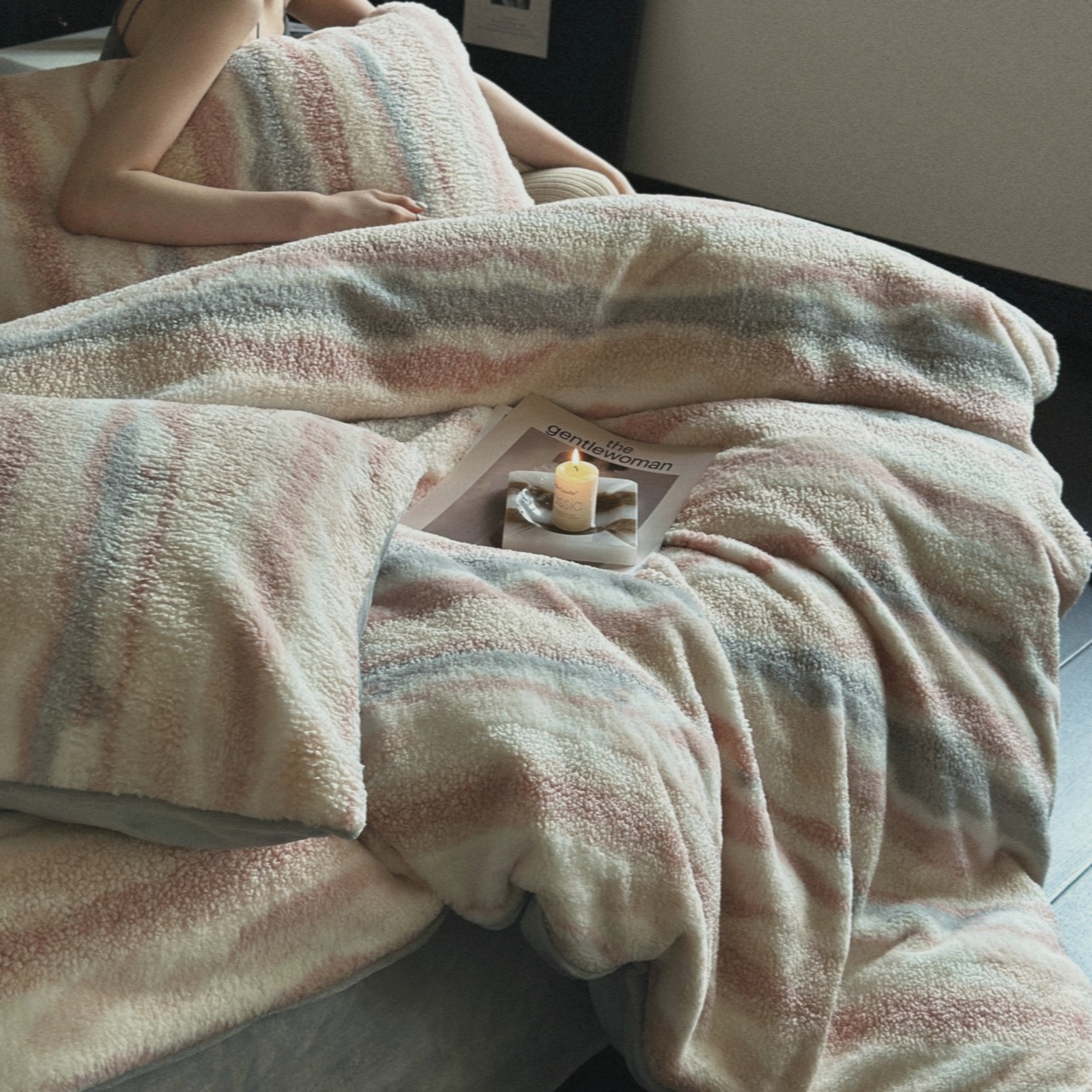 床品A面采用的是380g的兔毛羊毛卷,科学配比,轻软舒适,触感亲肤,手感滑糯、色泽也很柔和,蓬松性更是好,带来了厚实的暖和安全感,保暖性棒棒的,羊毛小卷卷也是炒鸡可爱,很有层次感!
