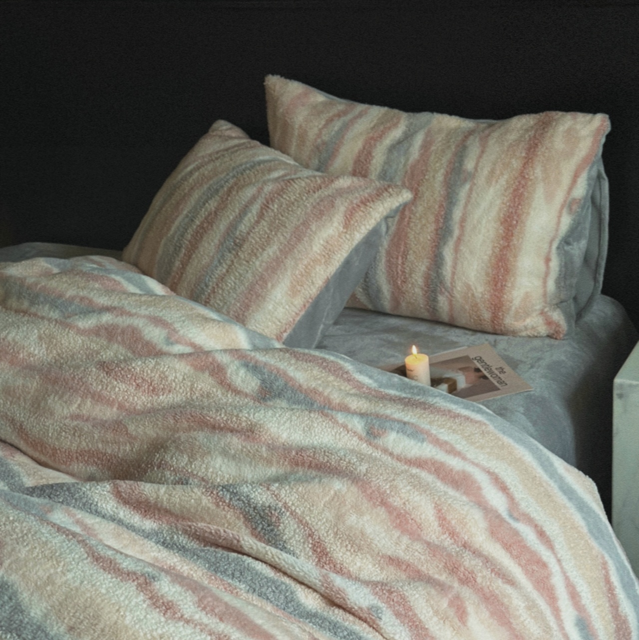 颜色蛮多的,有粉绿粉红,还有层次灰,我自留的是水墨黑,深邃神秘,但又像斑马一样跳跃,有浓郁的原始森林氛围,而且非常厚实,加大款的话差不多有4.9公斤左右,躺在里面有种被稳稳包裹的感觉,很利于入睡,不用加被子也是暖暖和和!而且考虑到大家的需求,除了床单款也有做床笠款,铺起床来更简单方便!价格也是相当不错,很推荐啦!