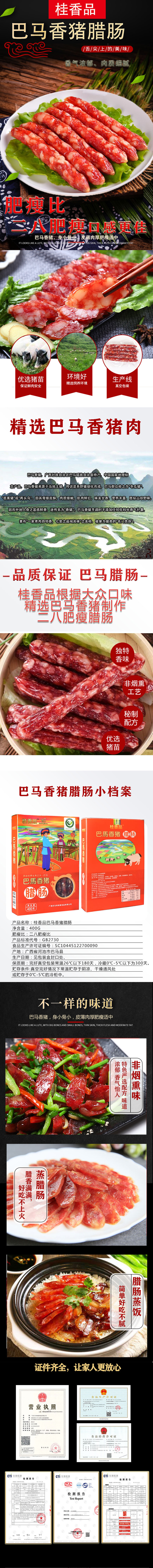 桂香品巴马香猪腊肠(精品装)400g/盒