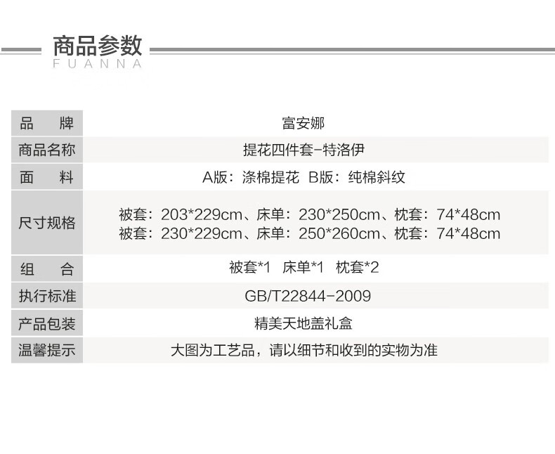 面料材质:A版:涤棉提花 B版:纯棉斜纹