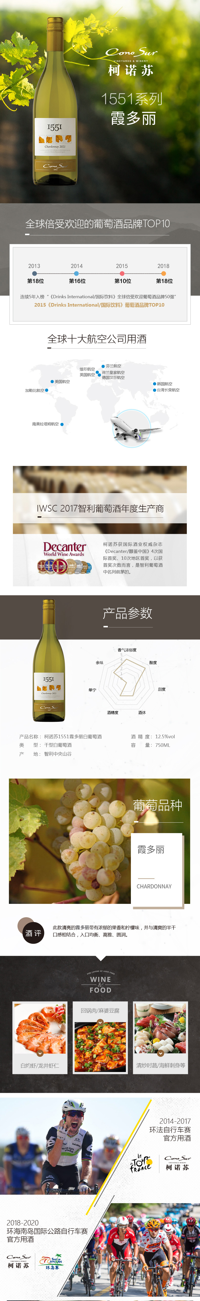 柯诺苏1551霞多丽白葡萄酒 750ml*2瓶