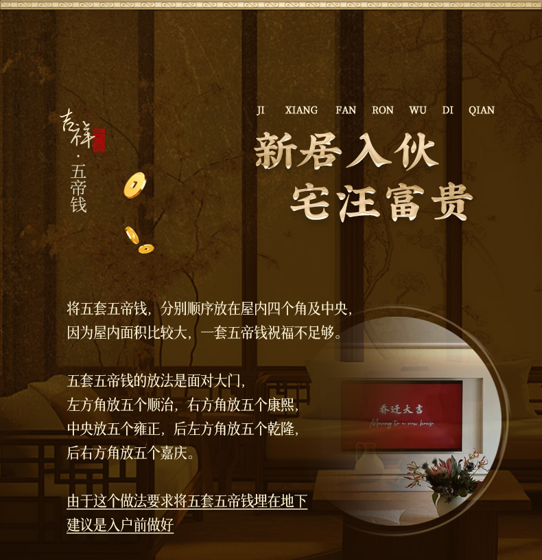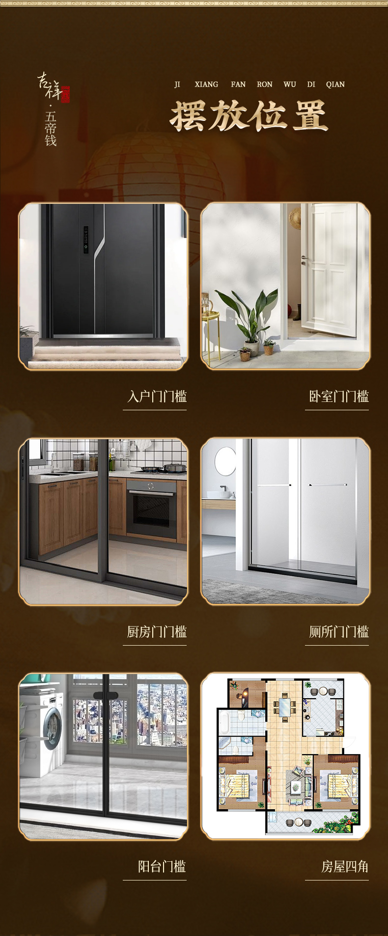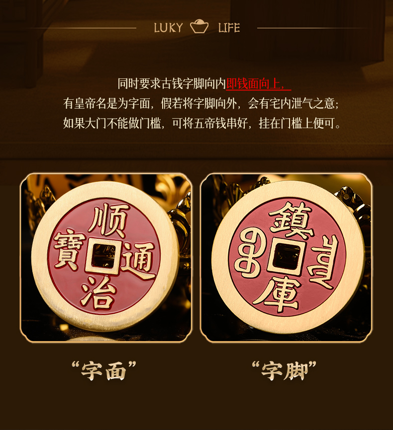 吉祥繁荣五帝钱摆件 入户门压门槛