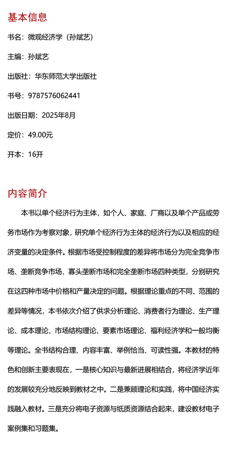 微观经济学 孙斌艺 经济与管理专业本科教材