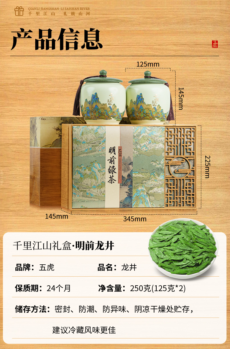 【年货茶礼】茶叶 龙井 绿茶 明前龙井 2025新茶 茶叶礼盒 茶饮 五虎 250g