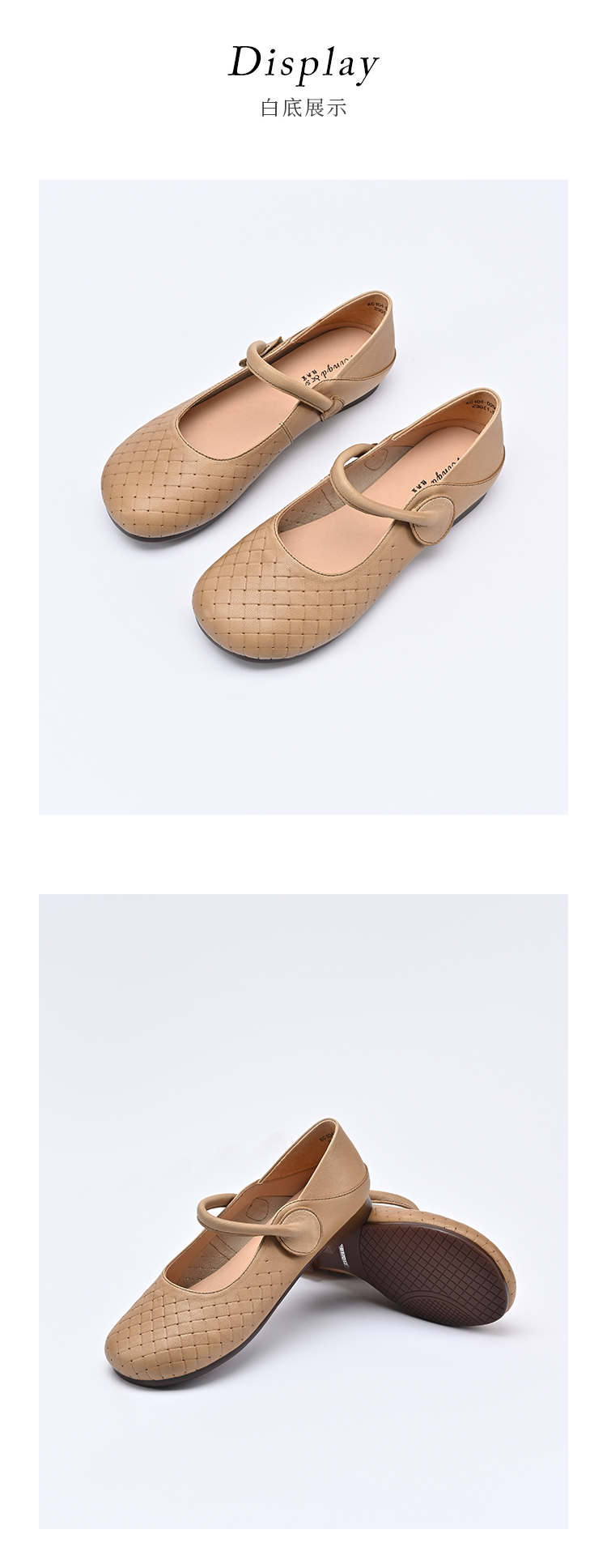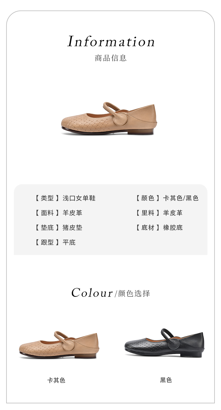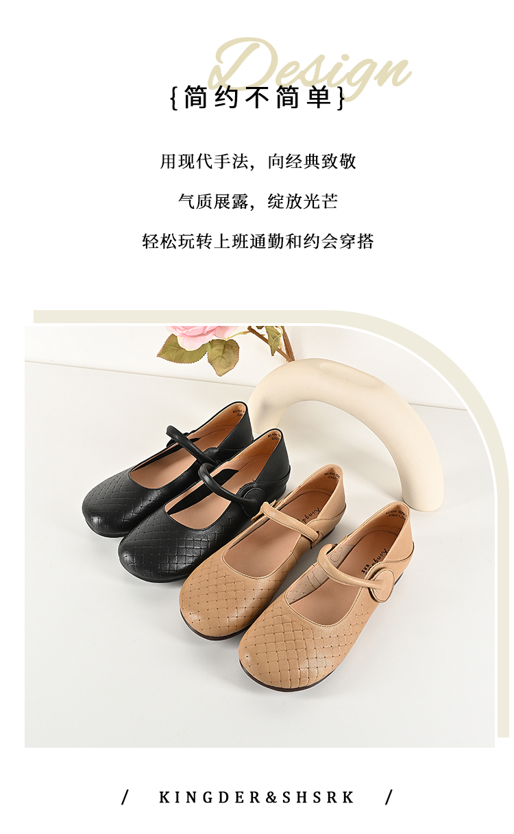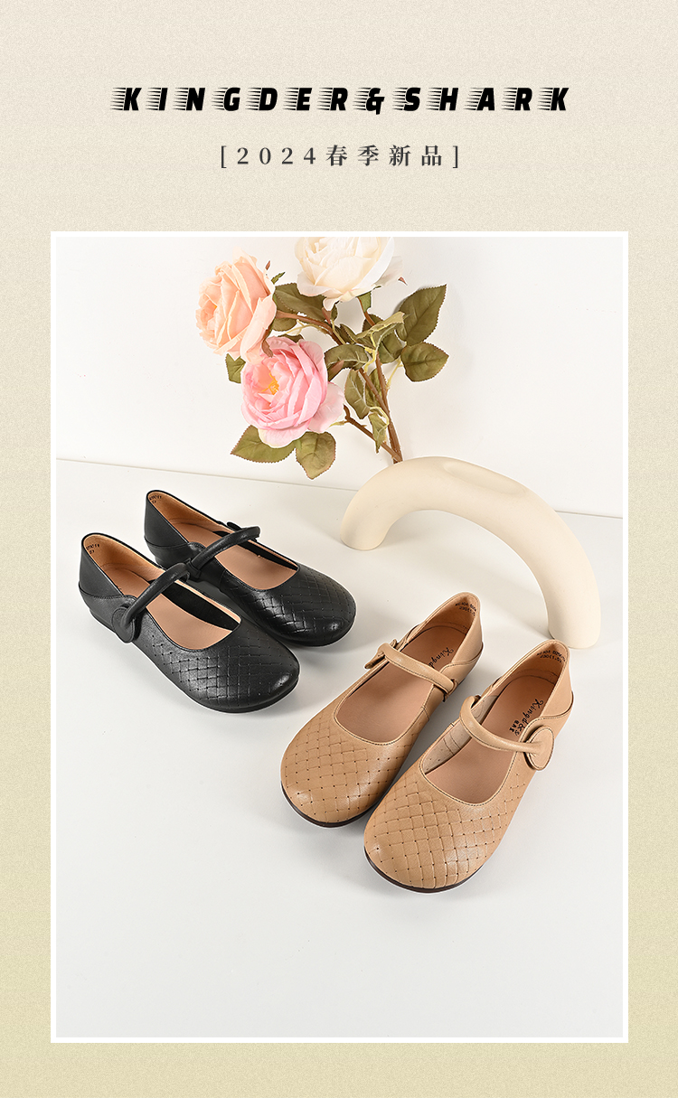 2024经典鲨春季上新女鞋平底复古编织鞋羊皮革时髦单鞋KG104-D17011