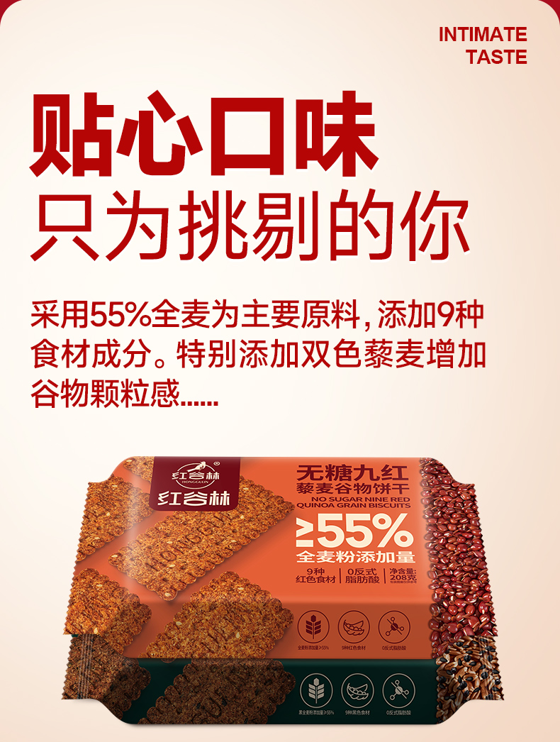 红谷林低GI无糖9红9黑藜麦谷物饼干无糖山药猴头菇酥性黑全麦代餐零食
