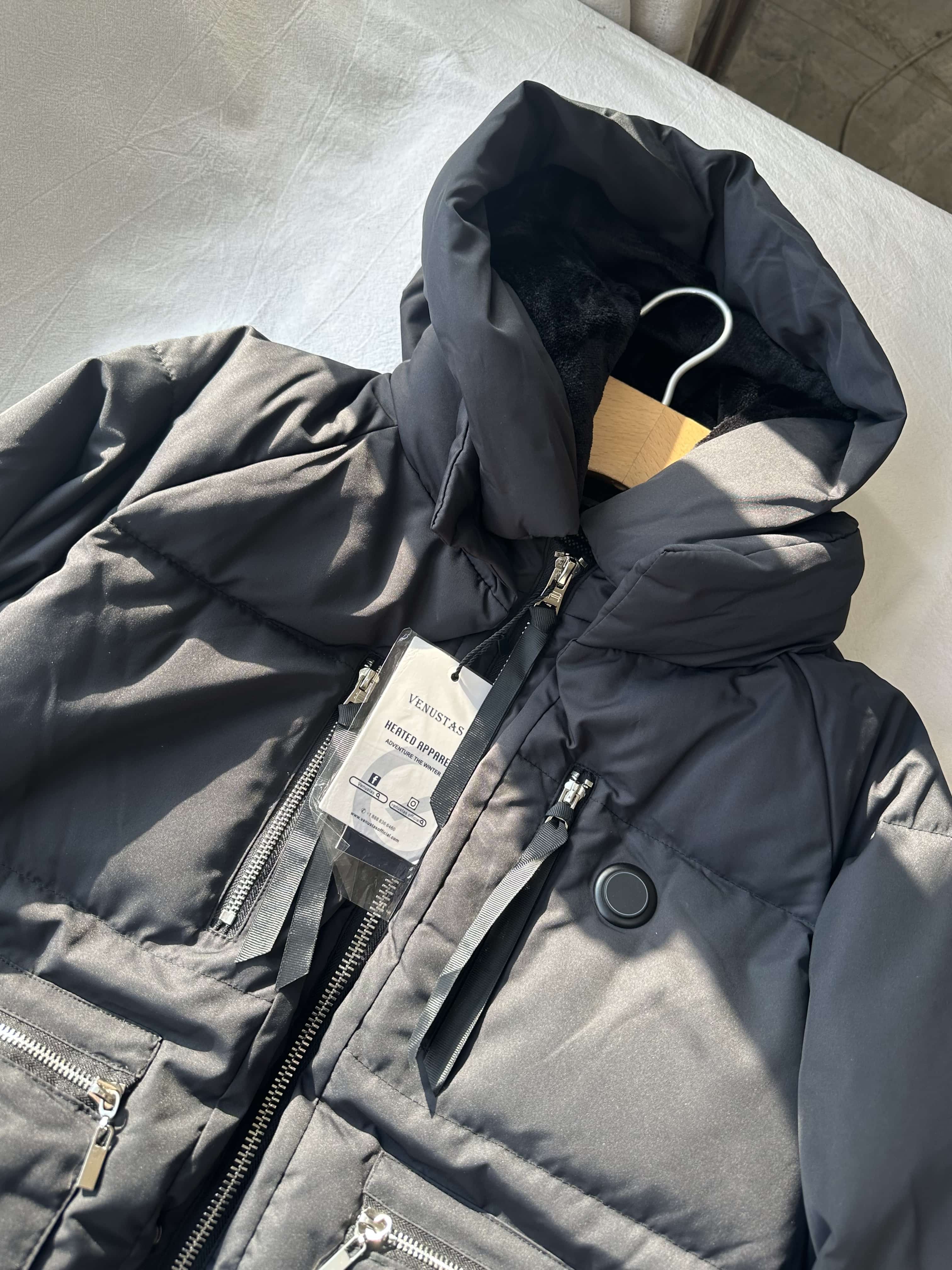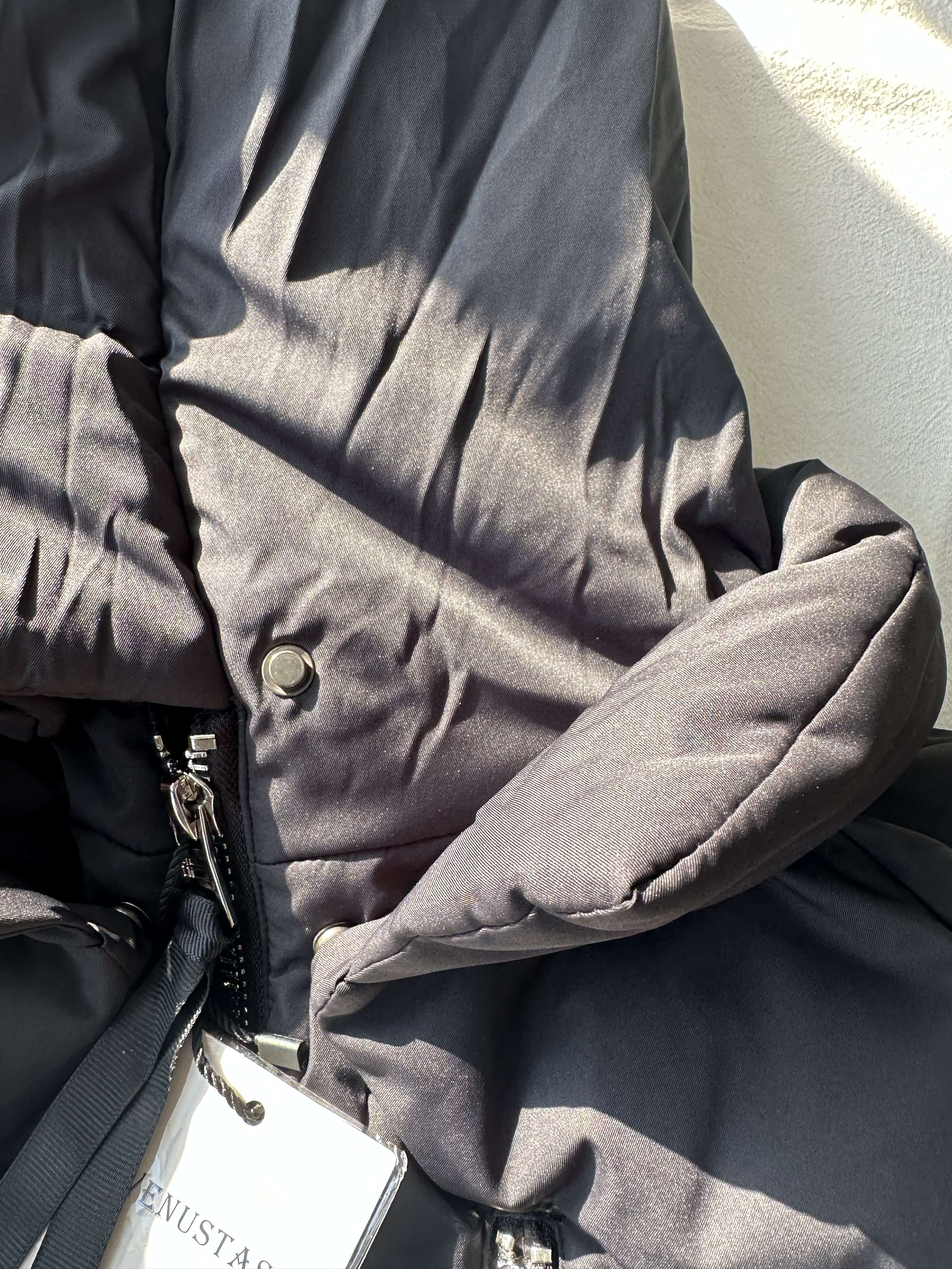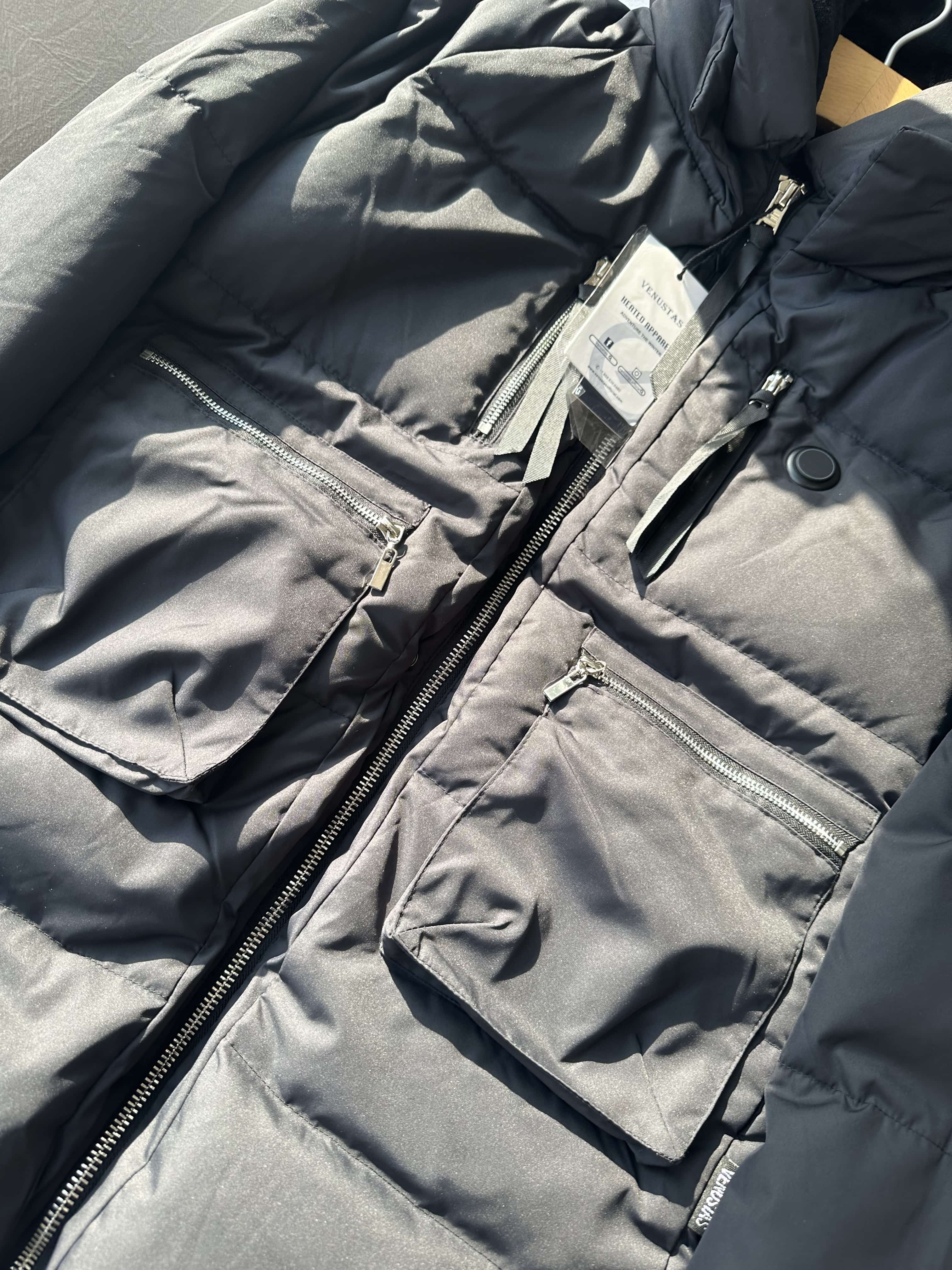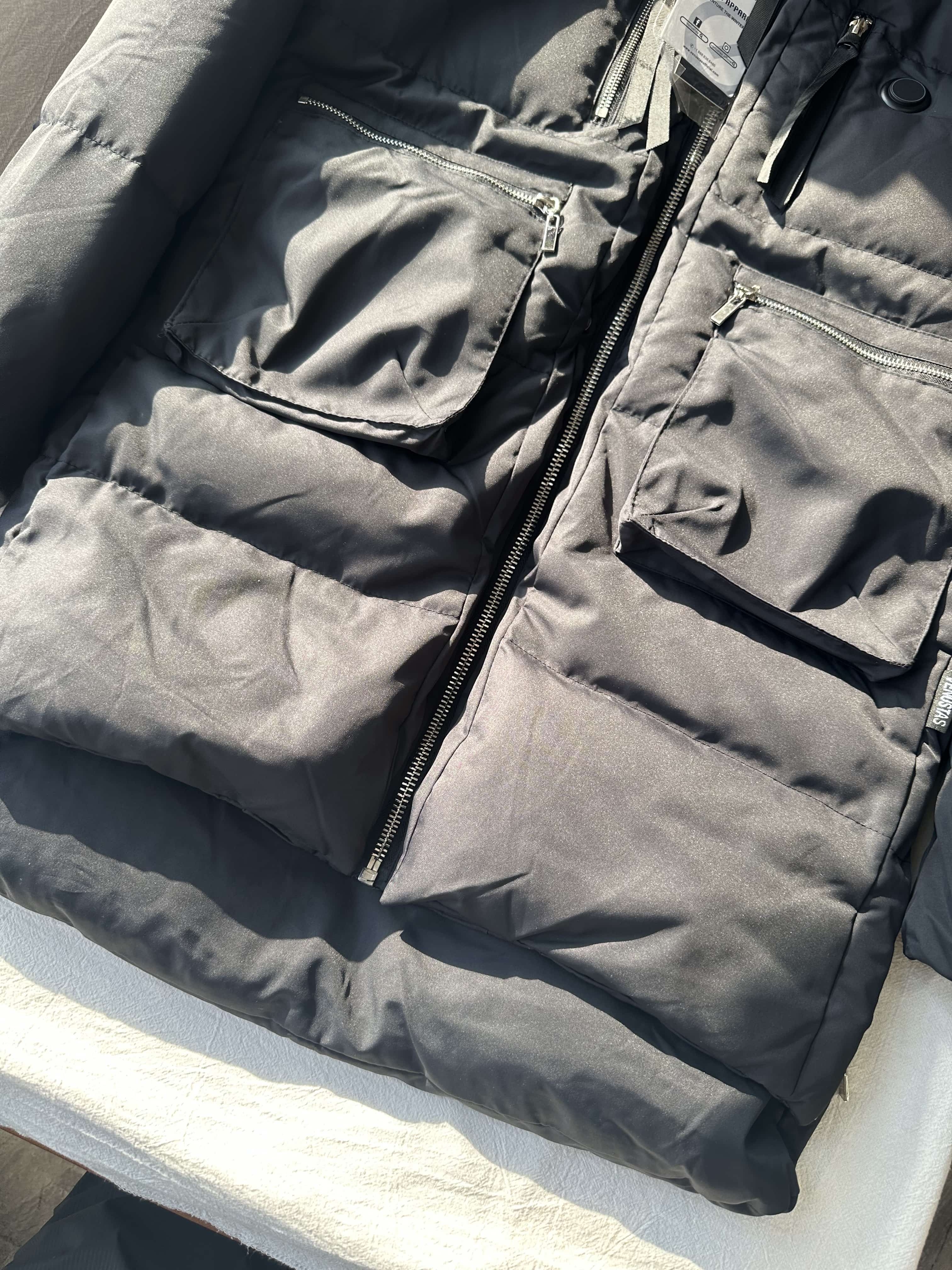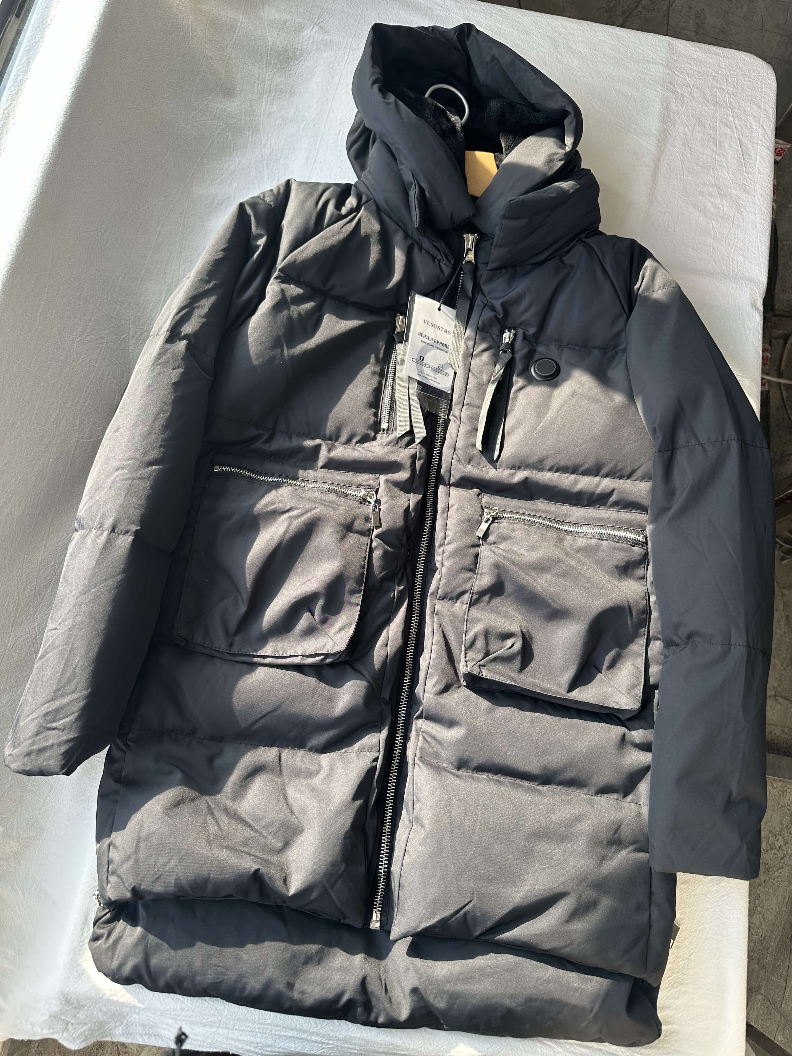 贝壳三 工装风口袋宽松厚实连帽羽绒服女中长款百搭棉服C110808
