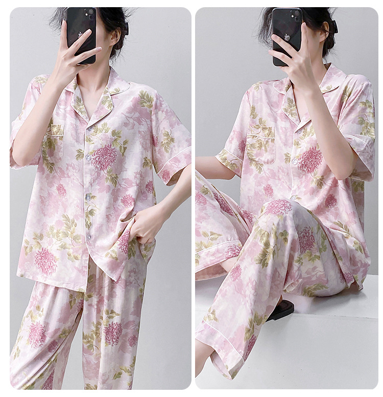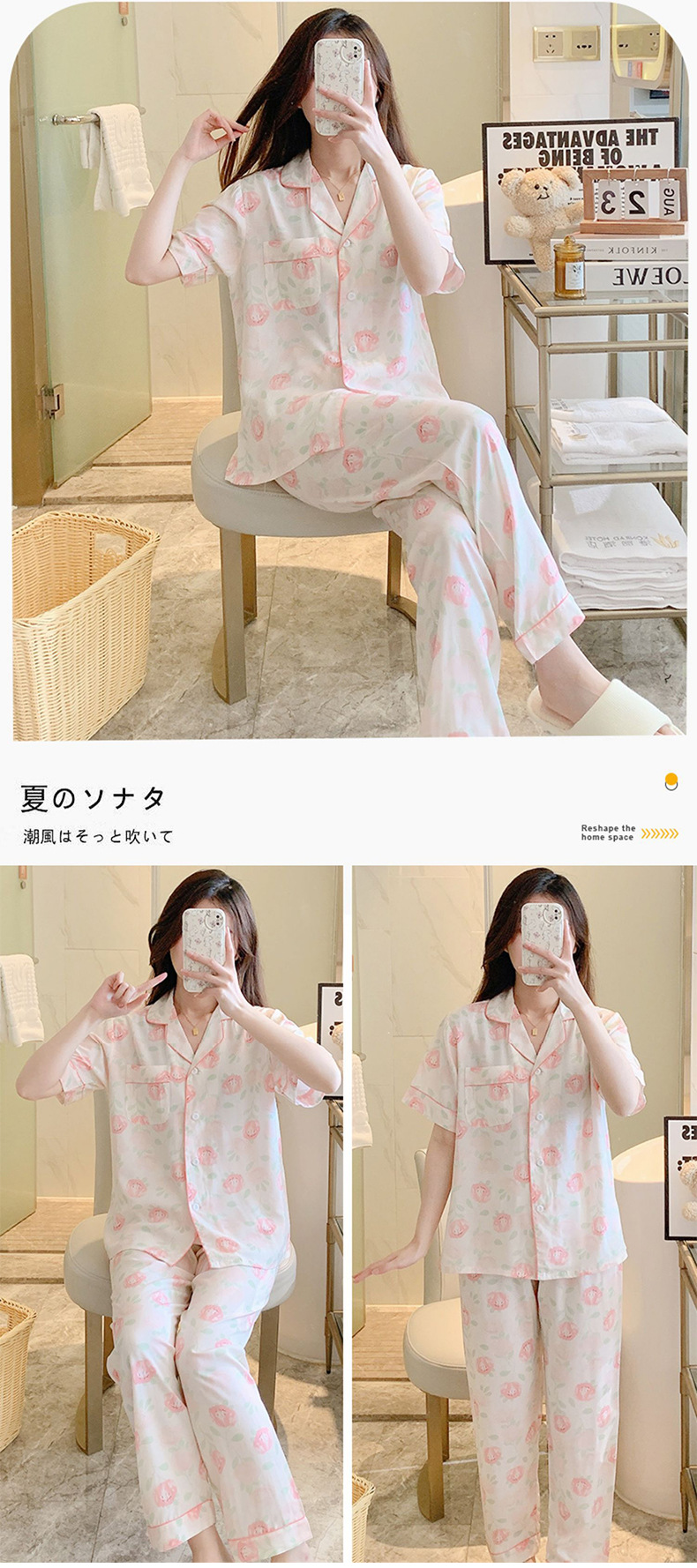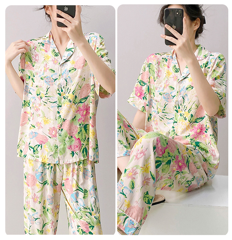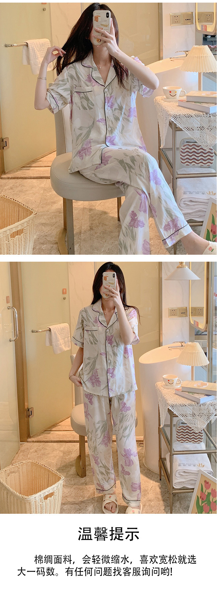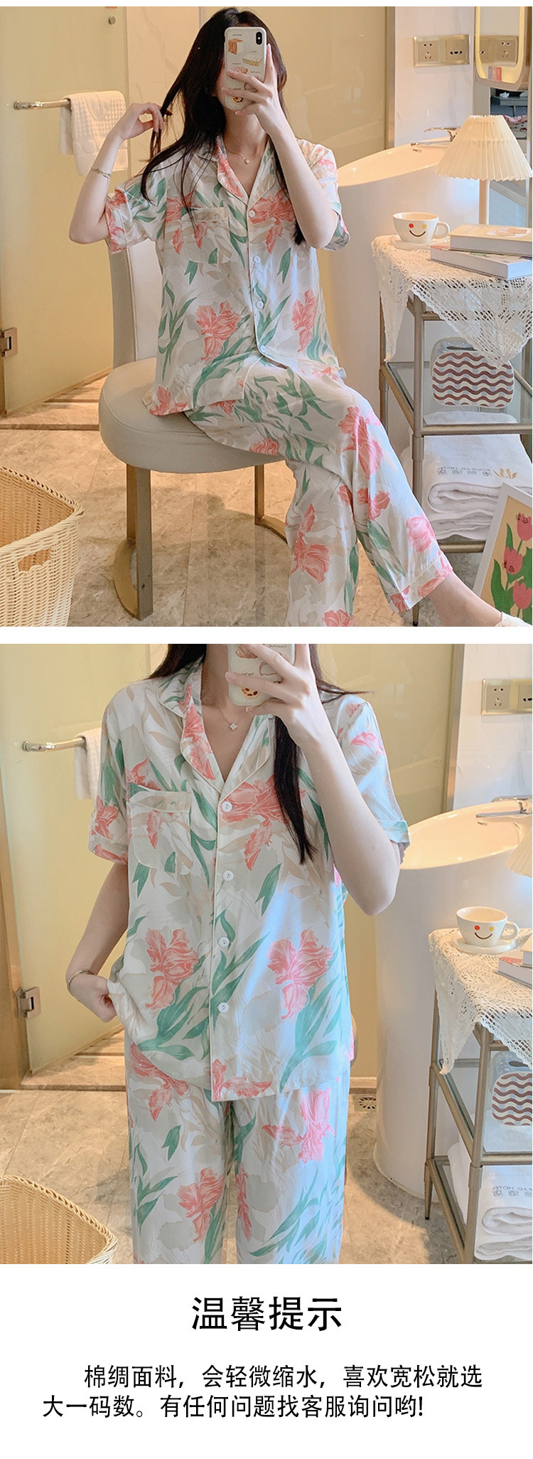 新款夏季棉绸短袖睡衣女薄款家居服日系网红爆款高级感人造棉套装