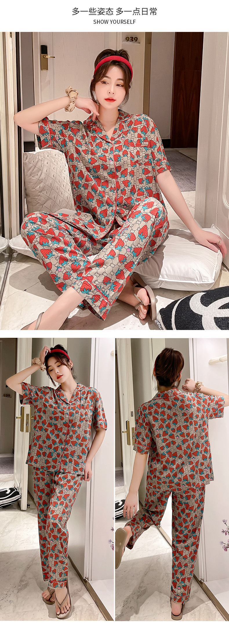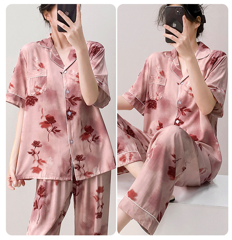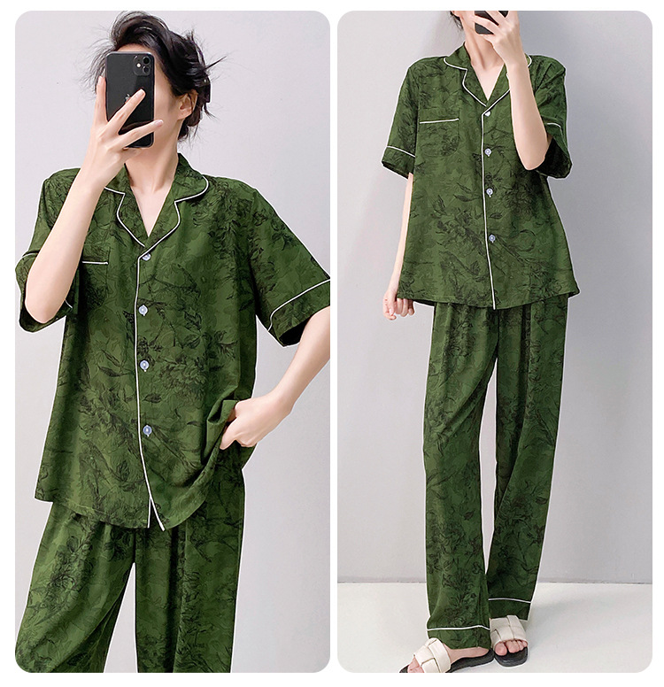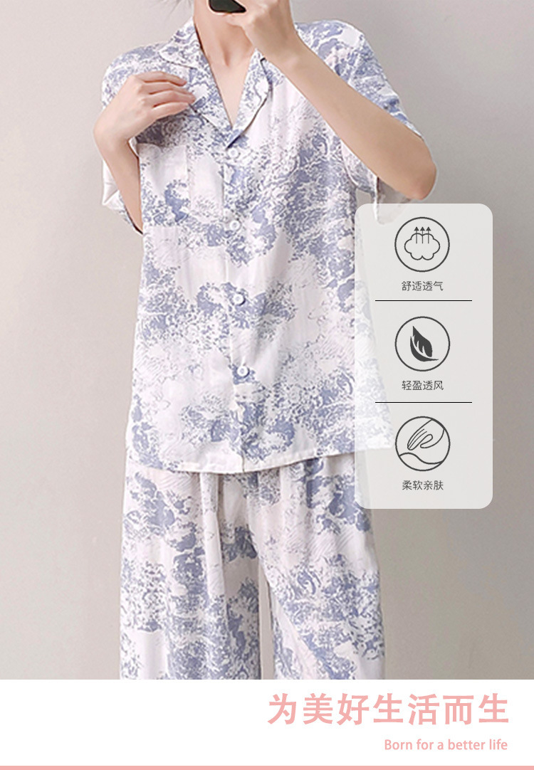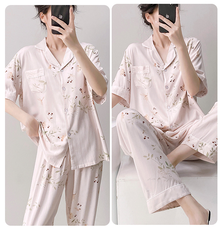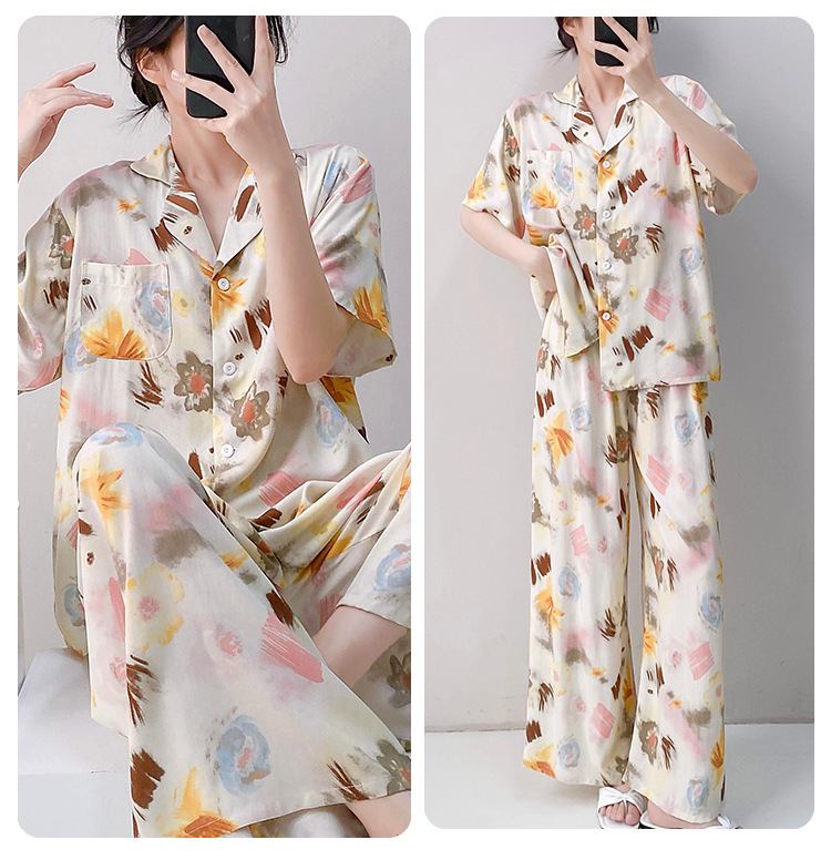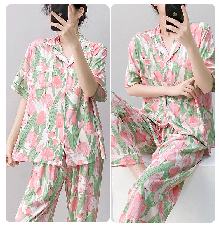 新款夏季棉绸短袖睡衣女薄款家居服日系网红爆款高级感人造棉套装