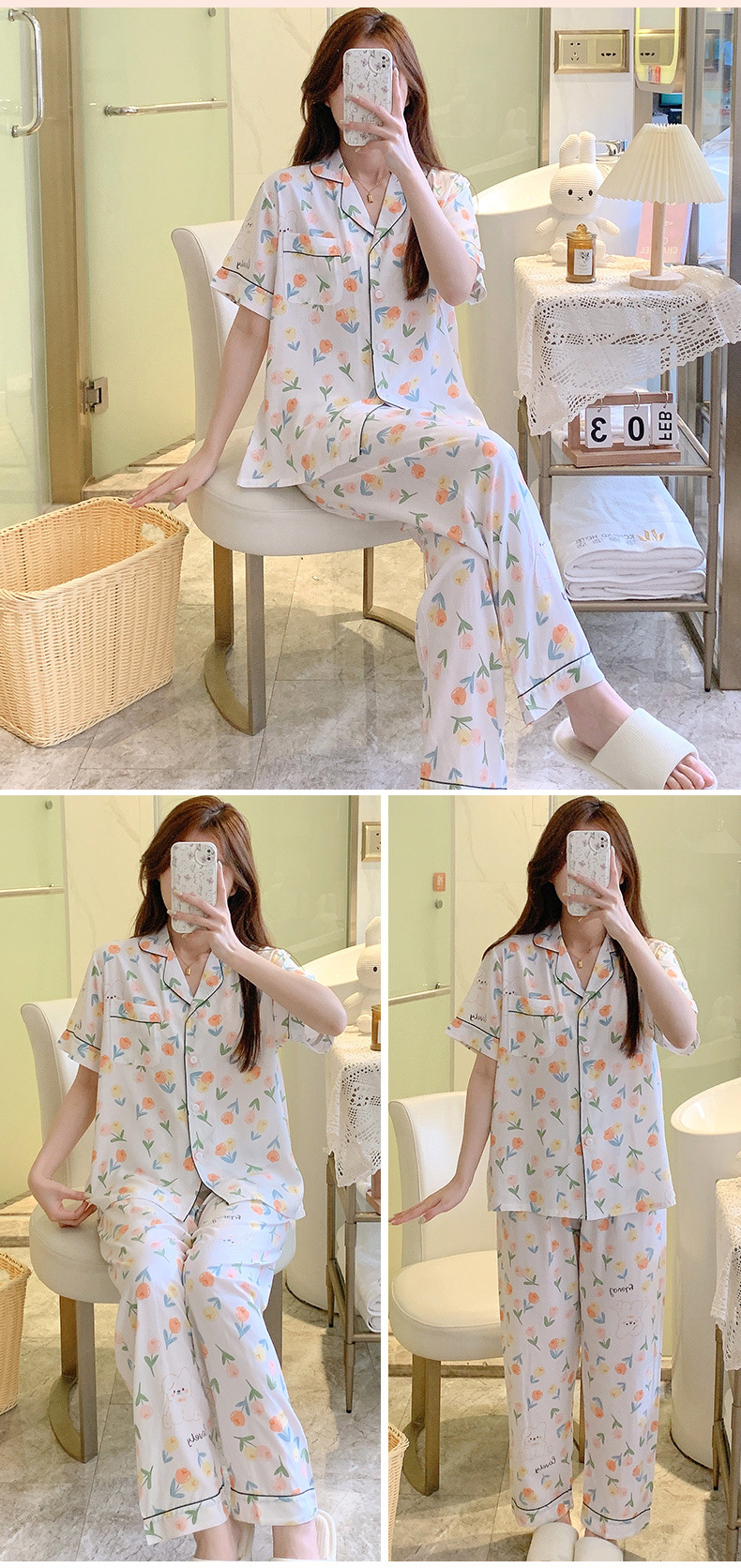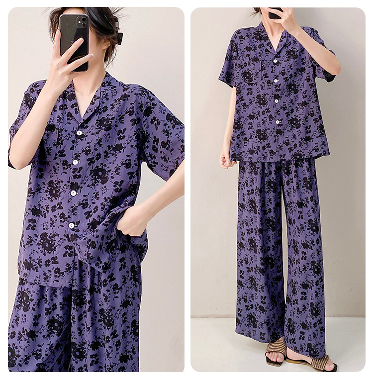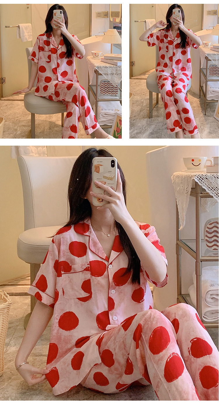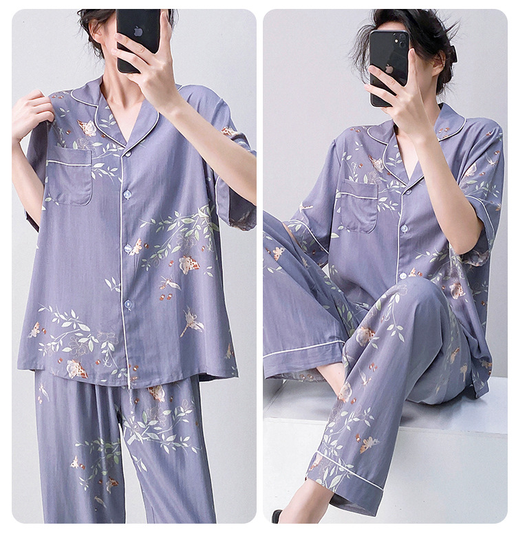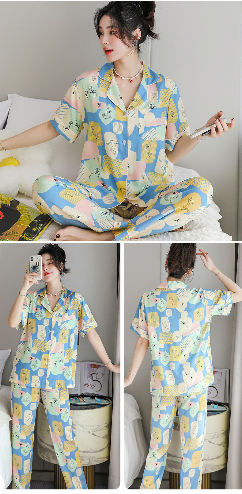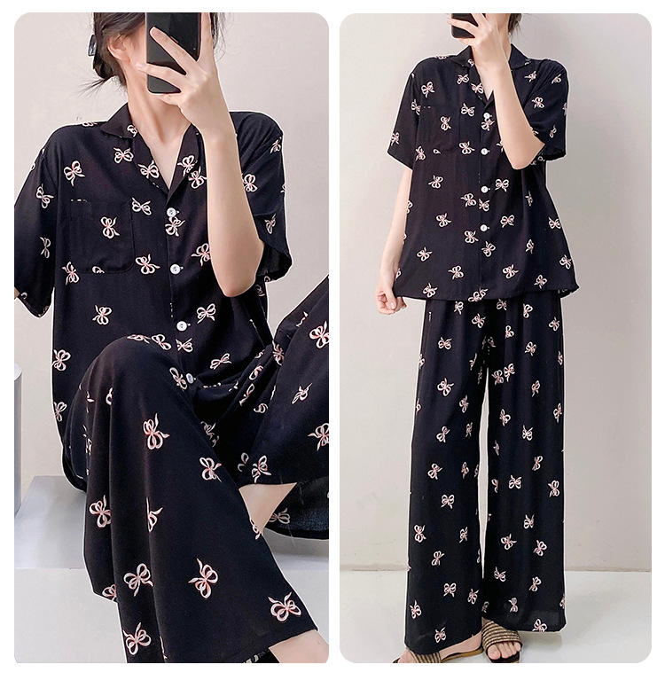 新款夏季棉绸短袖睡衣女薄款家居服日系网红爆款高级感人造棉套装