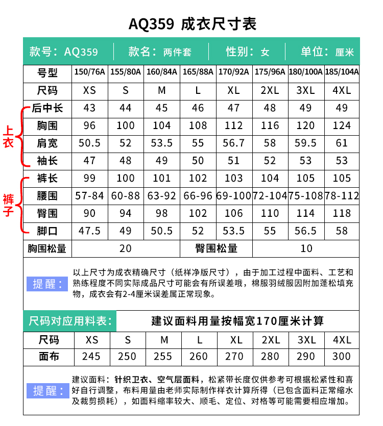 裁缝学苑AQ359两件套装纸样女装秋冬新款高级感连帽上衣+裤子样板