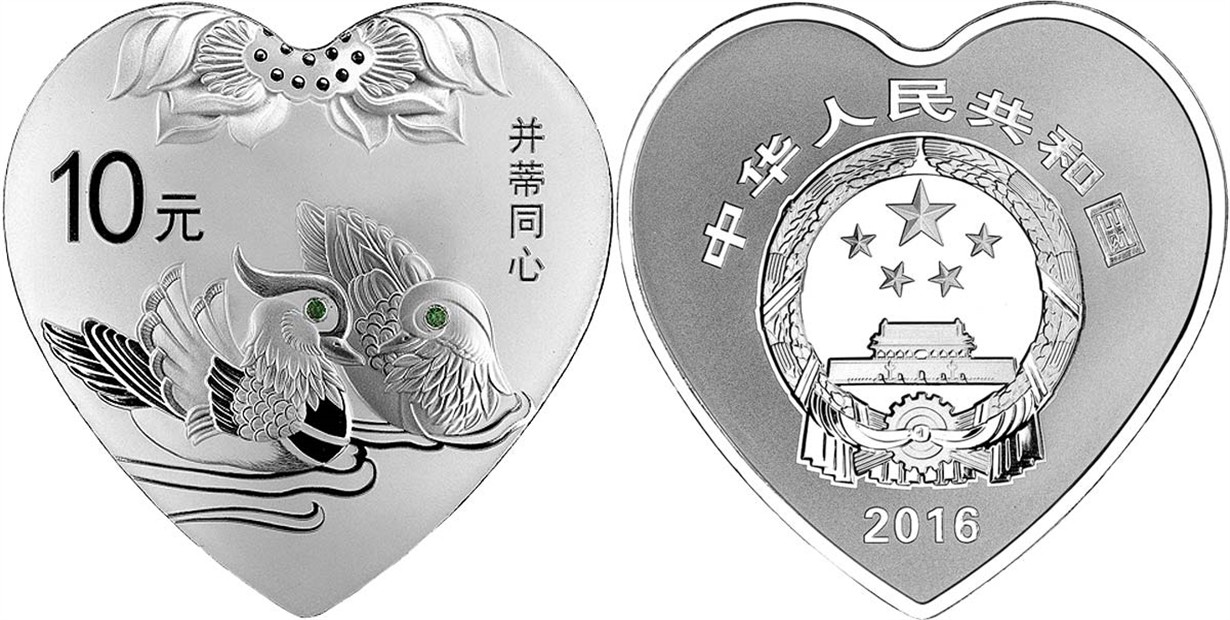 金银币的主图莲花、鸳鸯采用多层次喷砂效果,文字、面额采用反喷砂效果。