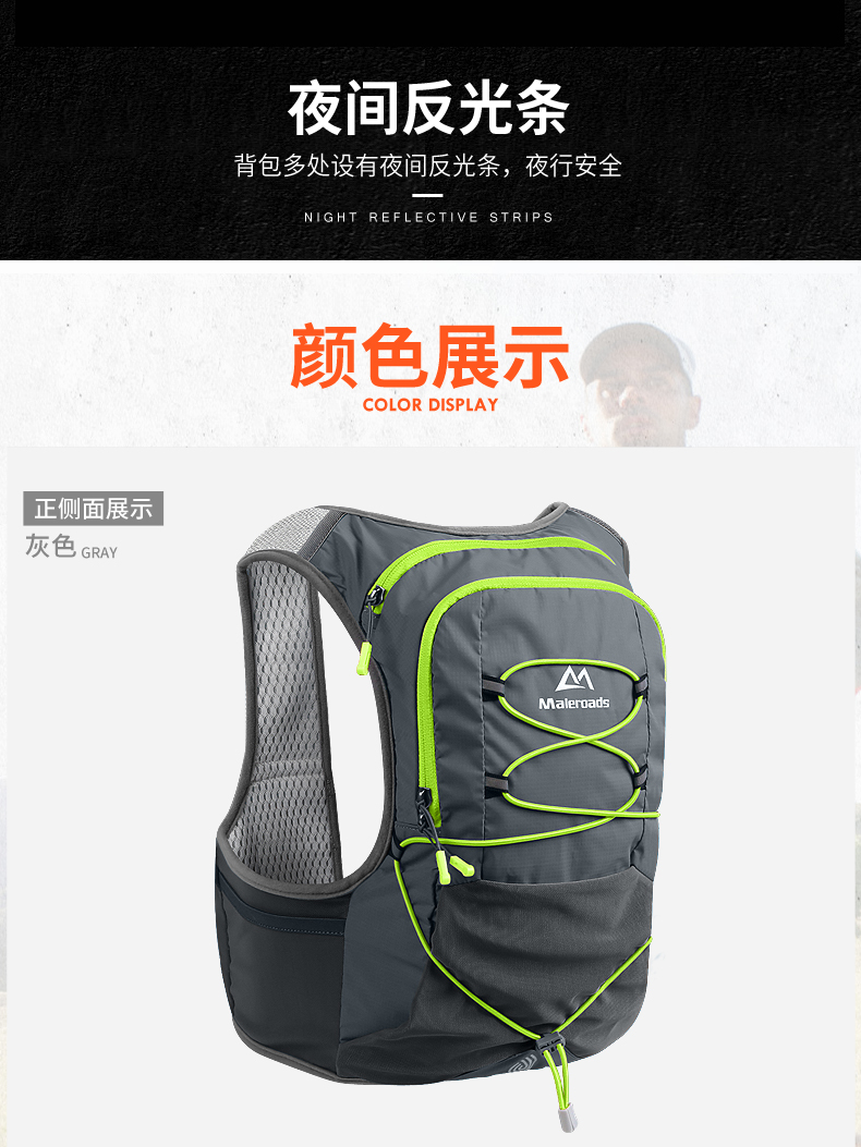 【清仓半价】迈路士越野跑步双肩背包男透气户外徒步运动水袋包女防水骑行包8L
