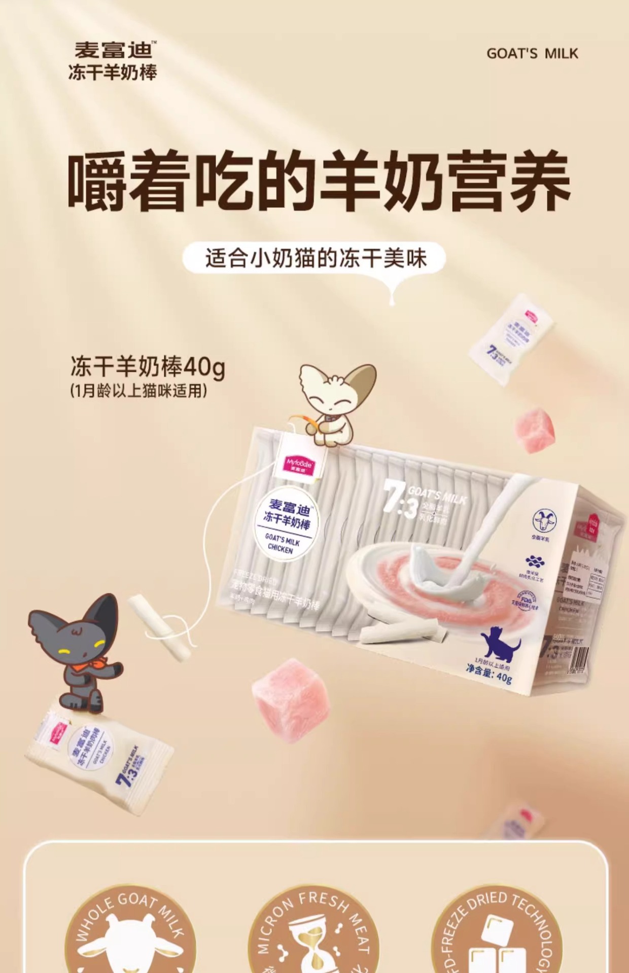麦富迪 【猫用羊奶棒零食】猫咪冻干小奶猫幼猫专用零食猫草磨牙洁齿棒