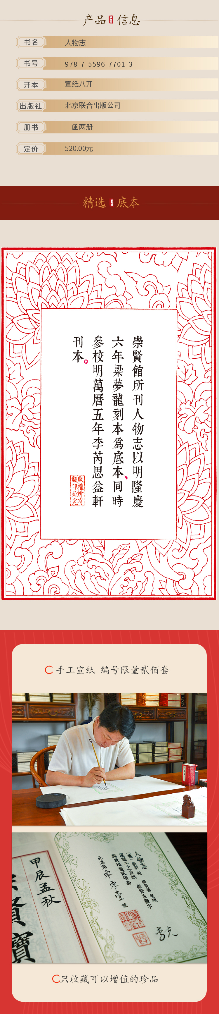 【崇贤宝笈】人物志 手工宣纸线装繁体竖排编号版