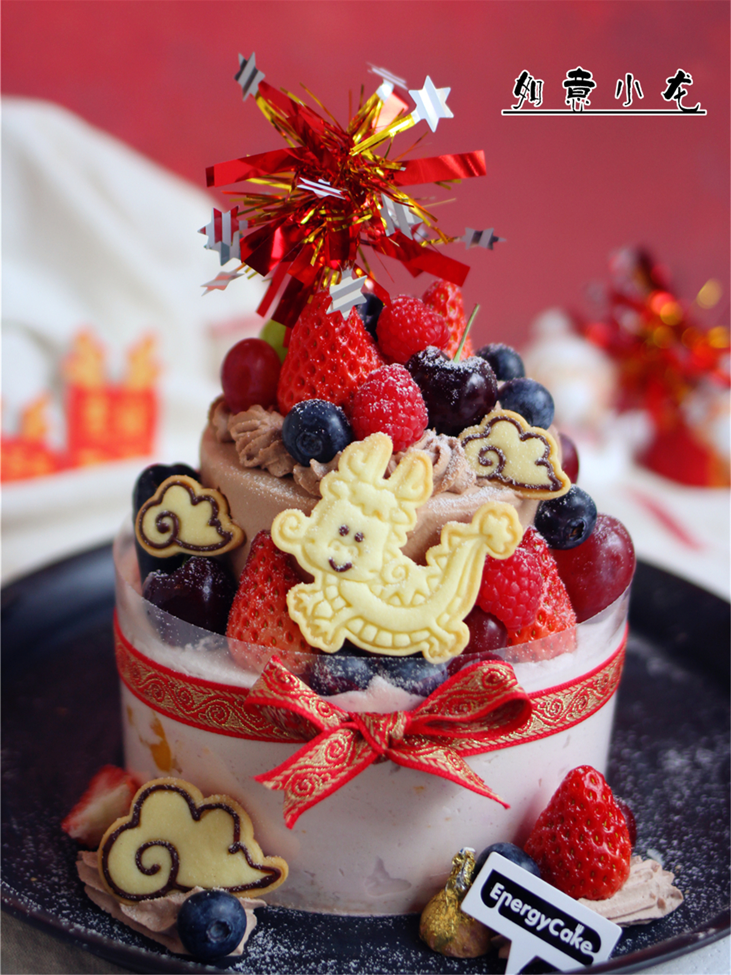 ~喜欢可爱的小蛋糕,选了非常可爱且萌萌的小龙,还有我特别选择的喜庆的丝带~