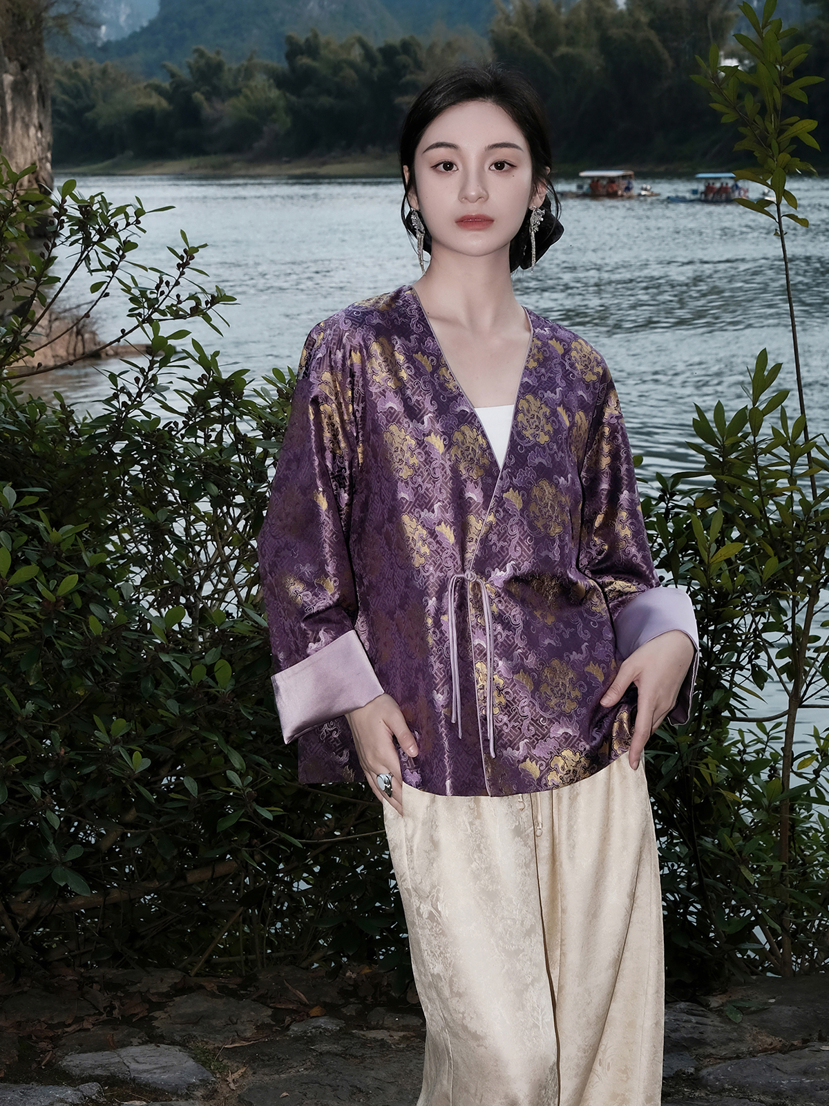 盛唐婧 |真丝宋锦紫气东来外套