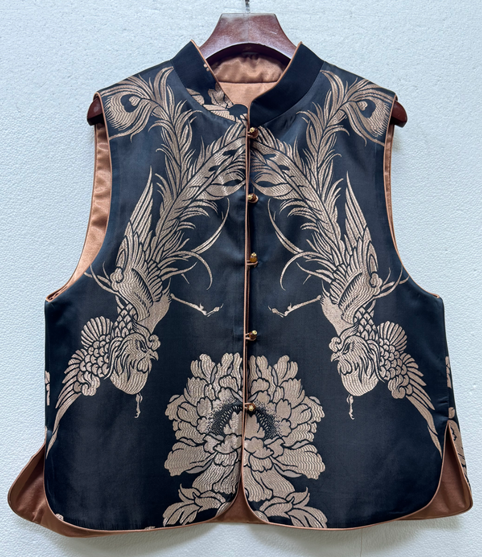 盛唐婧 | 新中式老缎对花夹棉对襟马甲-灰紫